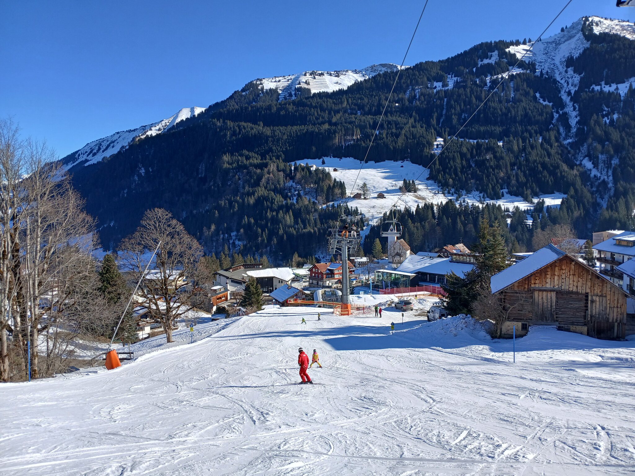 Die Heubergbahn erschließt auch etwas steilere Abfahrten im oberen Teil. Generell liegt das ganze Heuberg-Gebiet schön in die Ortschaften eingebettet. Leider hat man bei dieser Bahn die Fußrasten "vergessen"