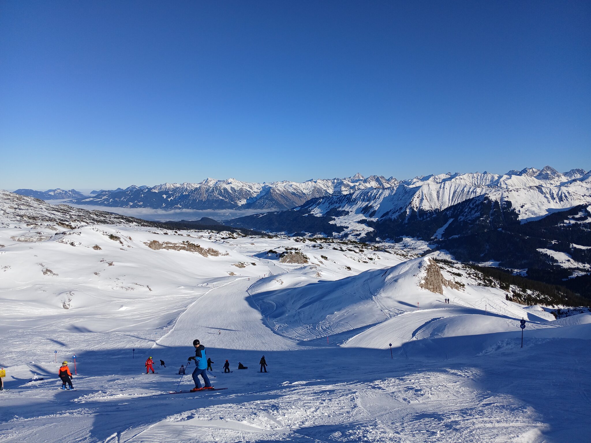 Der Andrang am Fellhorn, bzw. an der Kanzelwand war überraschenderweise recht moderat. Liftwartezeiten waren inexistent und auch auf den Pisten war es für mich auch nur am Starthang an der Bergstation der Fellhorn-EUB zu voll.