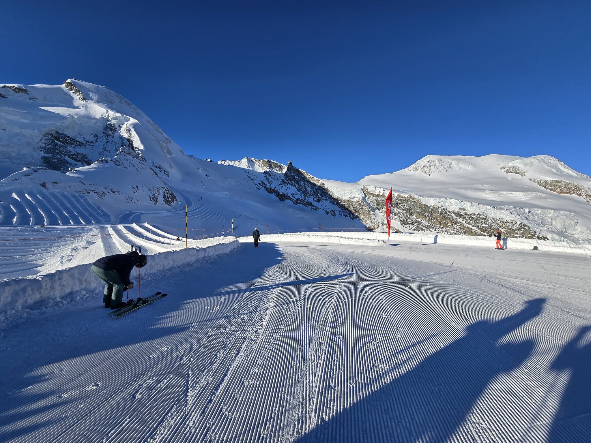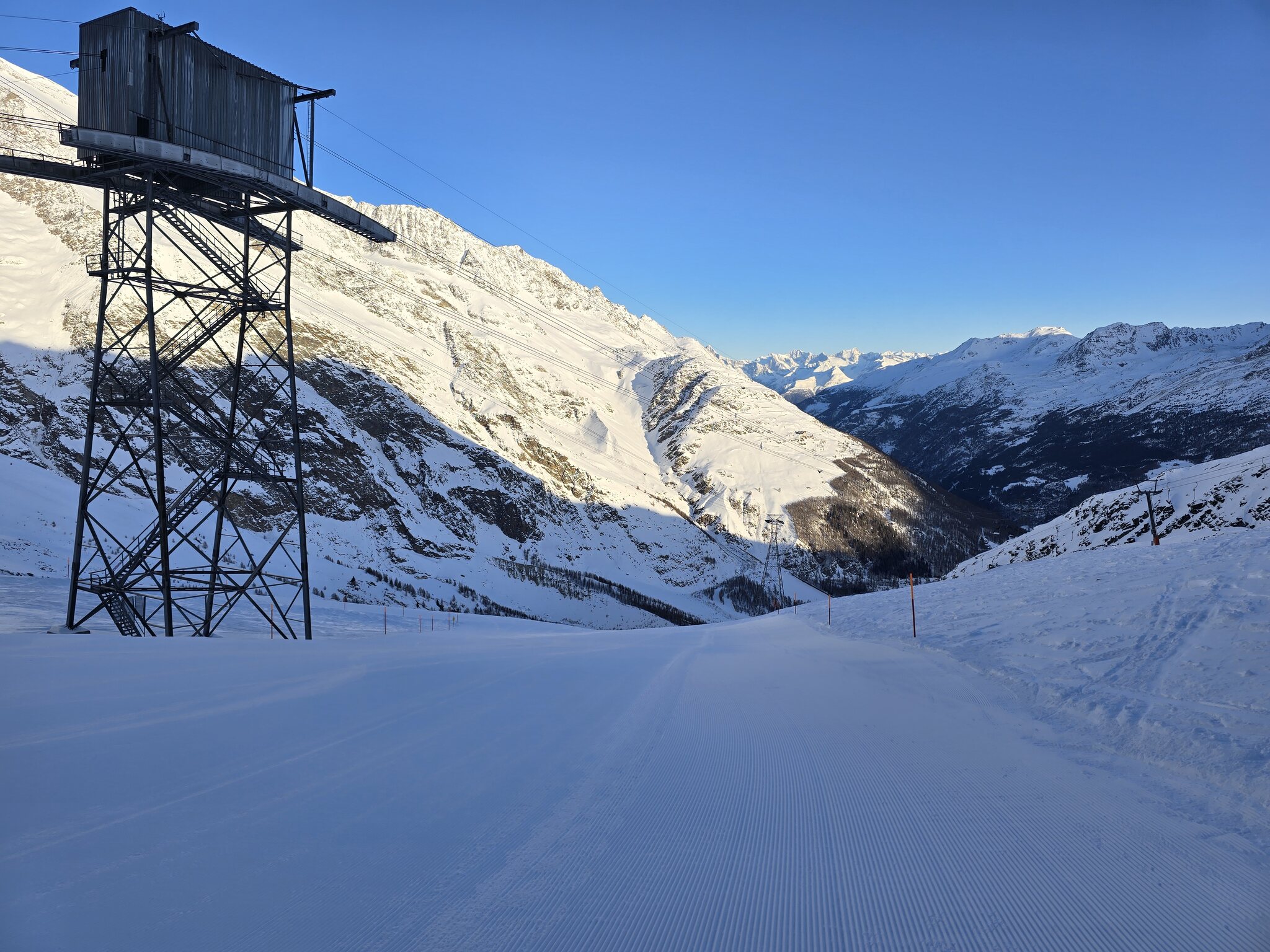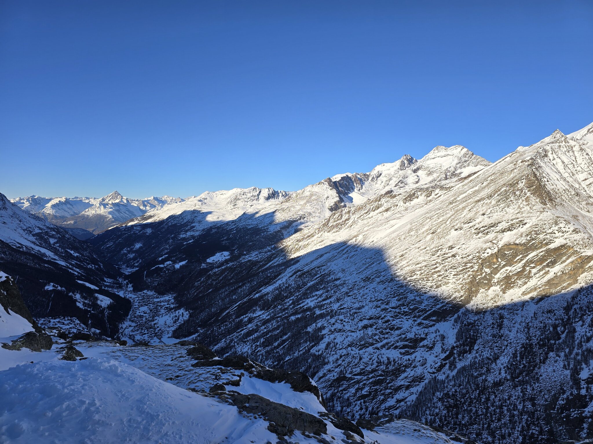 Zu Beginn ein ganz grosses Minus an Postauto. Absolut unverständlich wie man auf die Idee kommt, dass an einem sonnigen November-Sonntag mit Schnee im Flachland ein einzelnes Postauto um 8 Uhr in Visp ausreichen könnte.