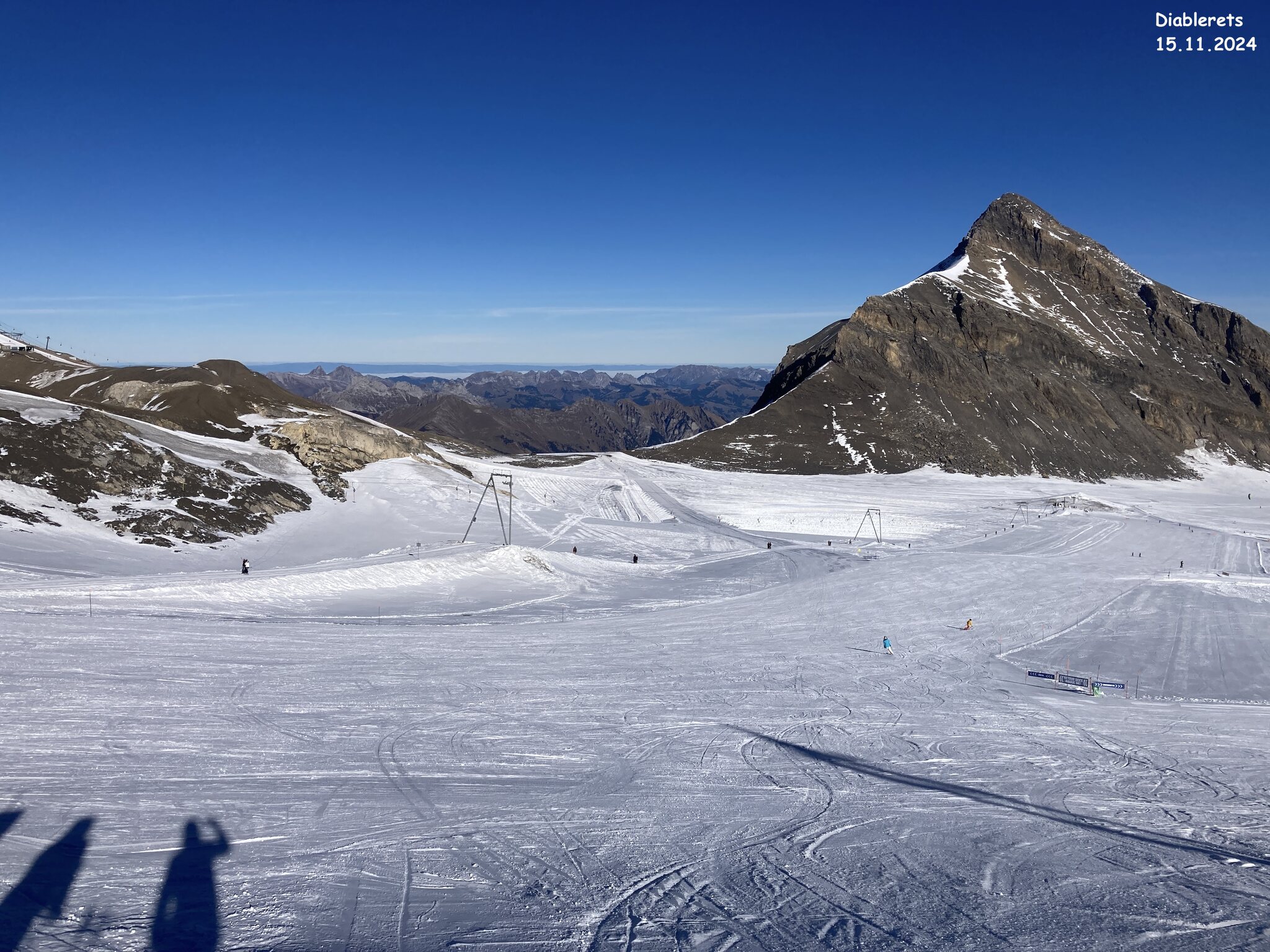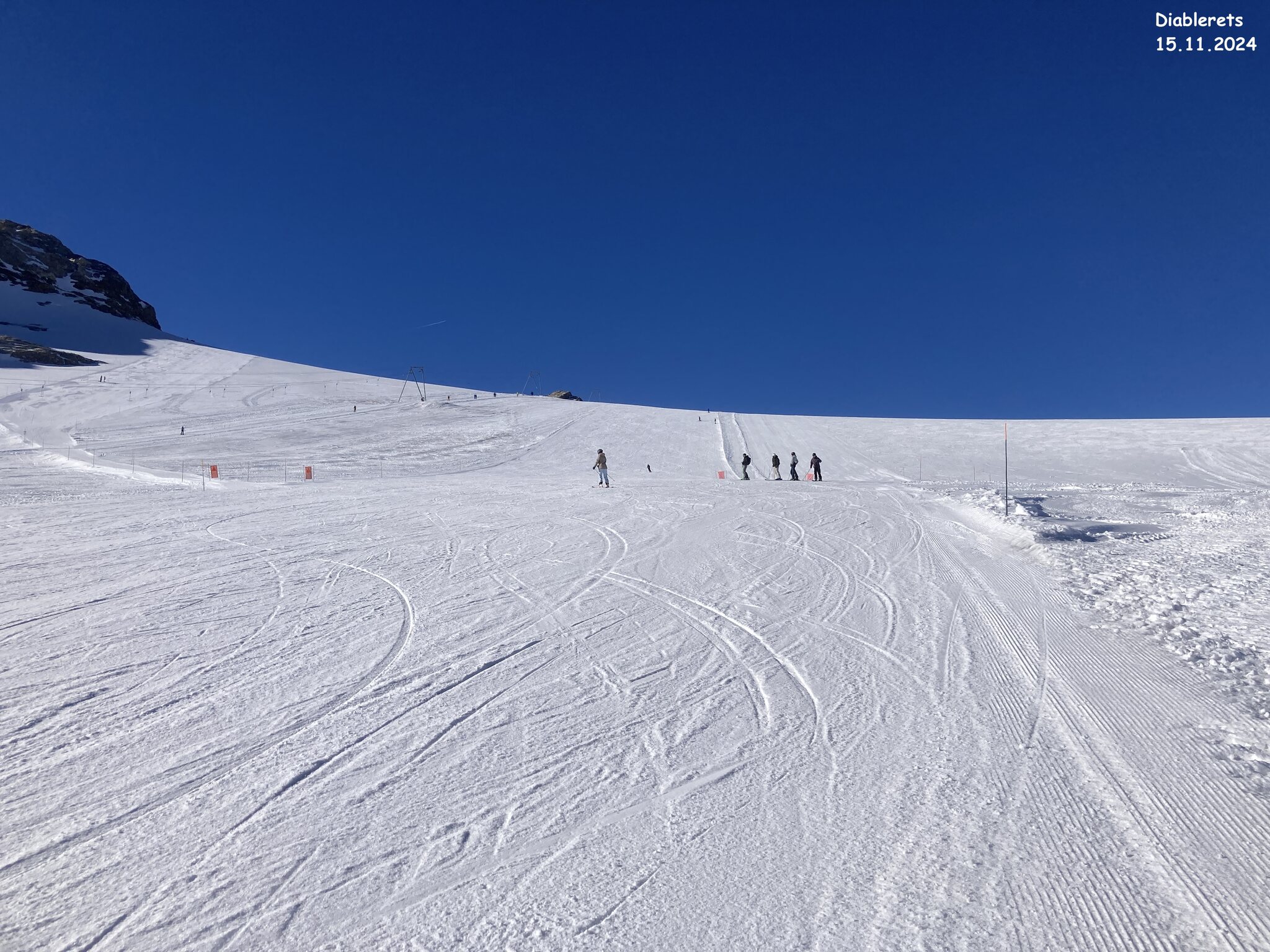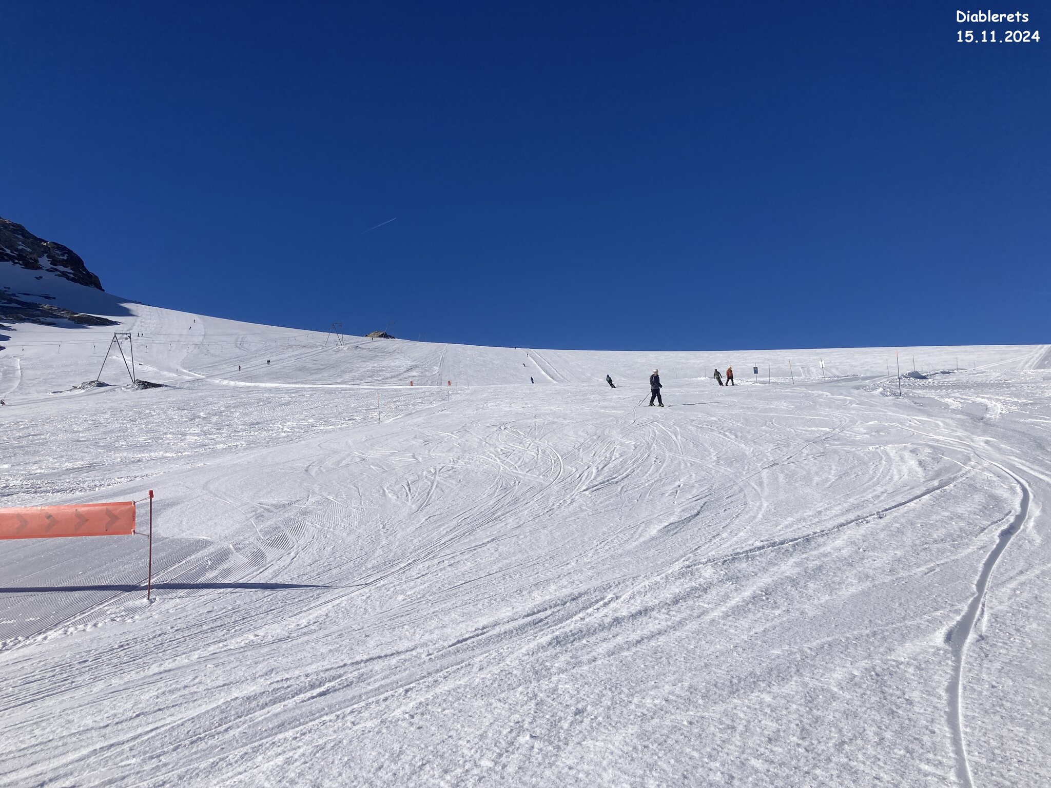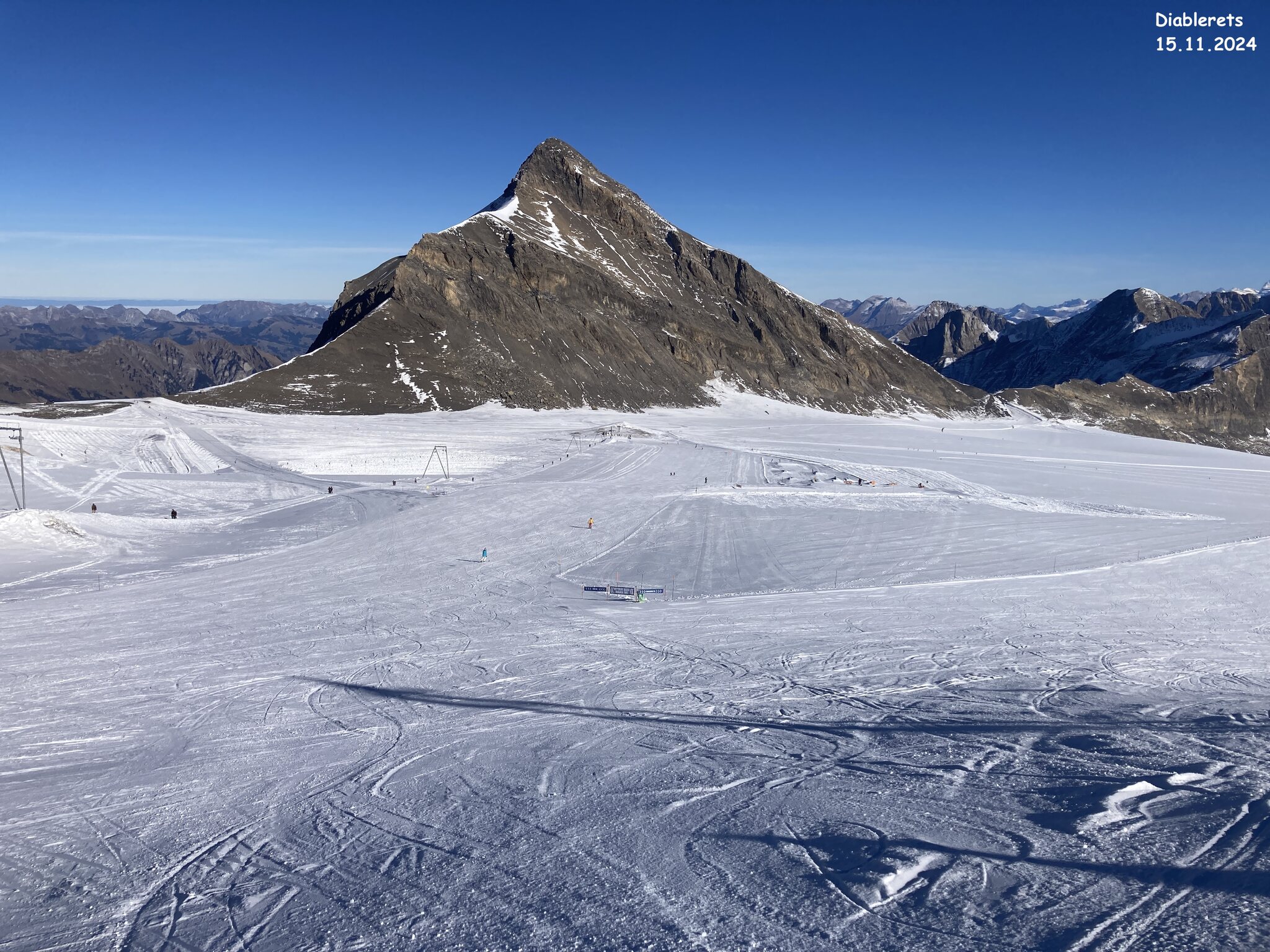 Heute in Glacier 3000 (Diablerets), gute Bedingungen. Guter, wenn auch etwas weicher Schnee. Skilifte Le Dôme und Tzanfleuron mit ihren blauen Pisten geöffnet. Sessellift und rote Piste von Scex Rouge geöffnet. Es gibt jetzt einen kleinen Snowpark in Le Dôme und der große Snowpark ist in Le Scex Rouge.
