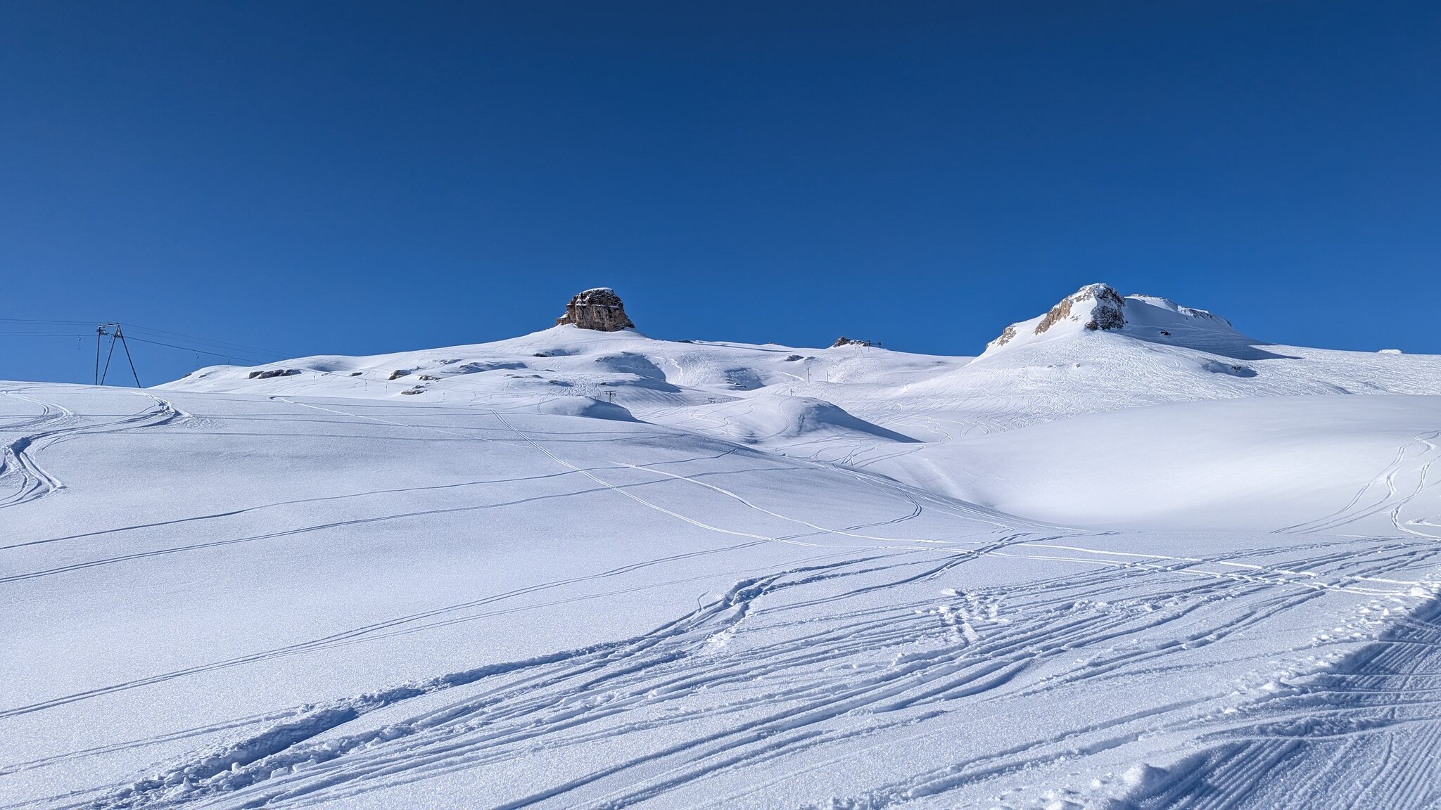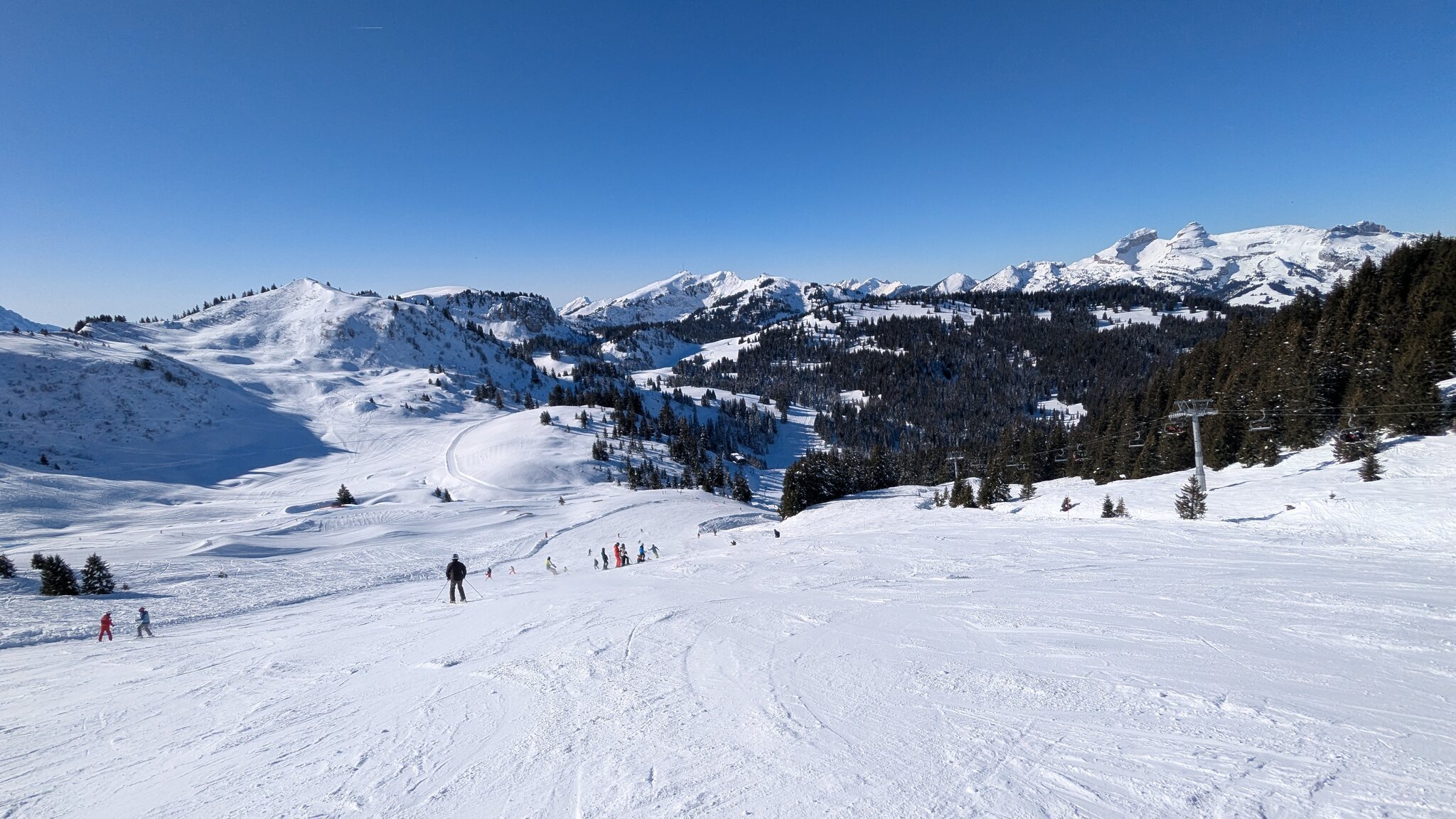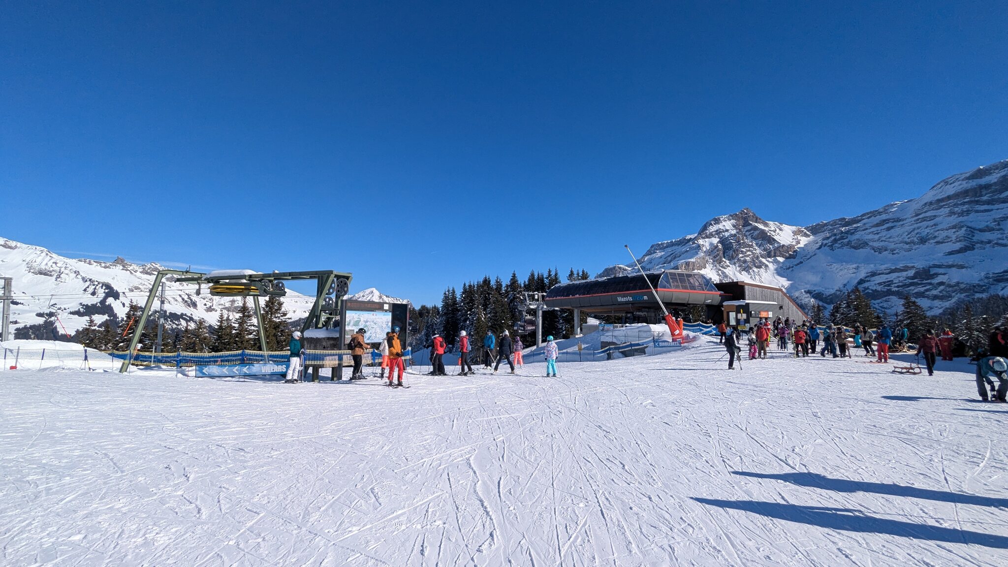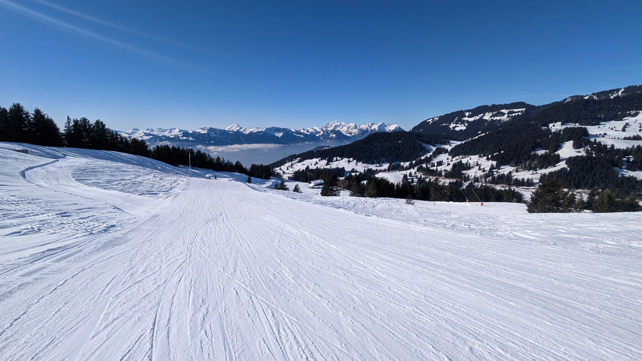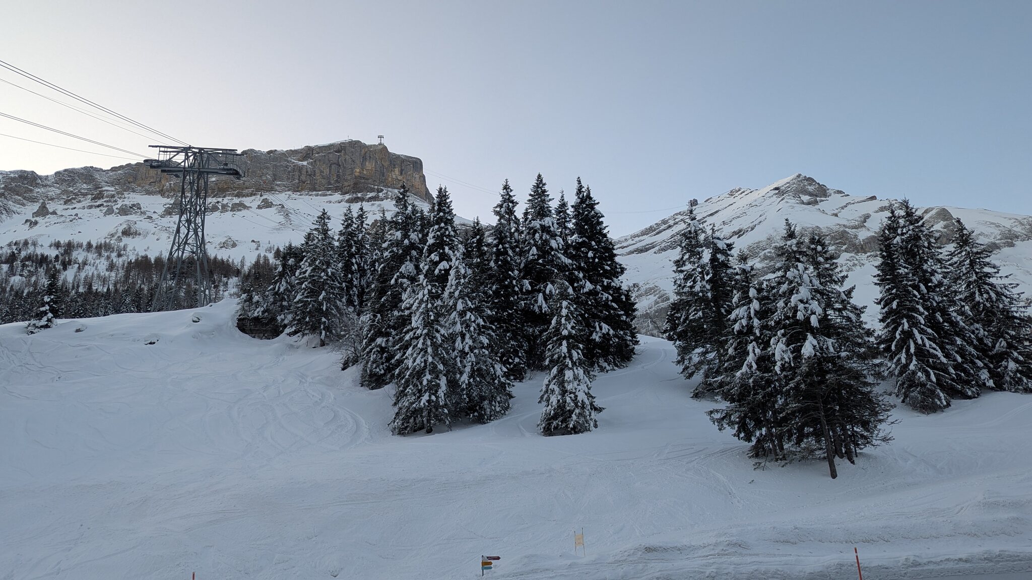 Wenig Schnee, aber Top-Bedingungen, immer noch tolles Panorama und nicht zu viele Leute. Keine Wartezeiten an den Skiliften.