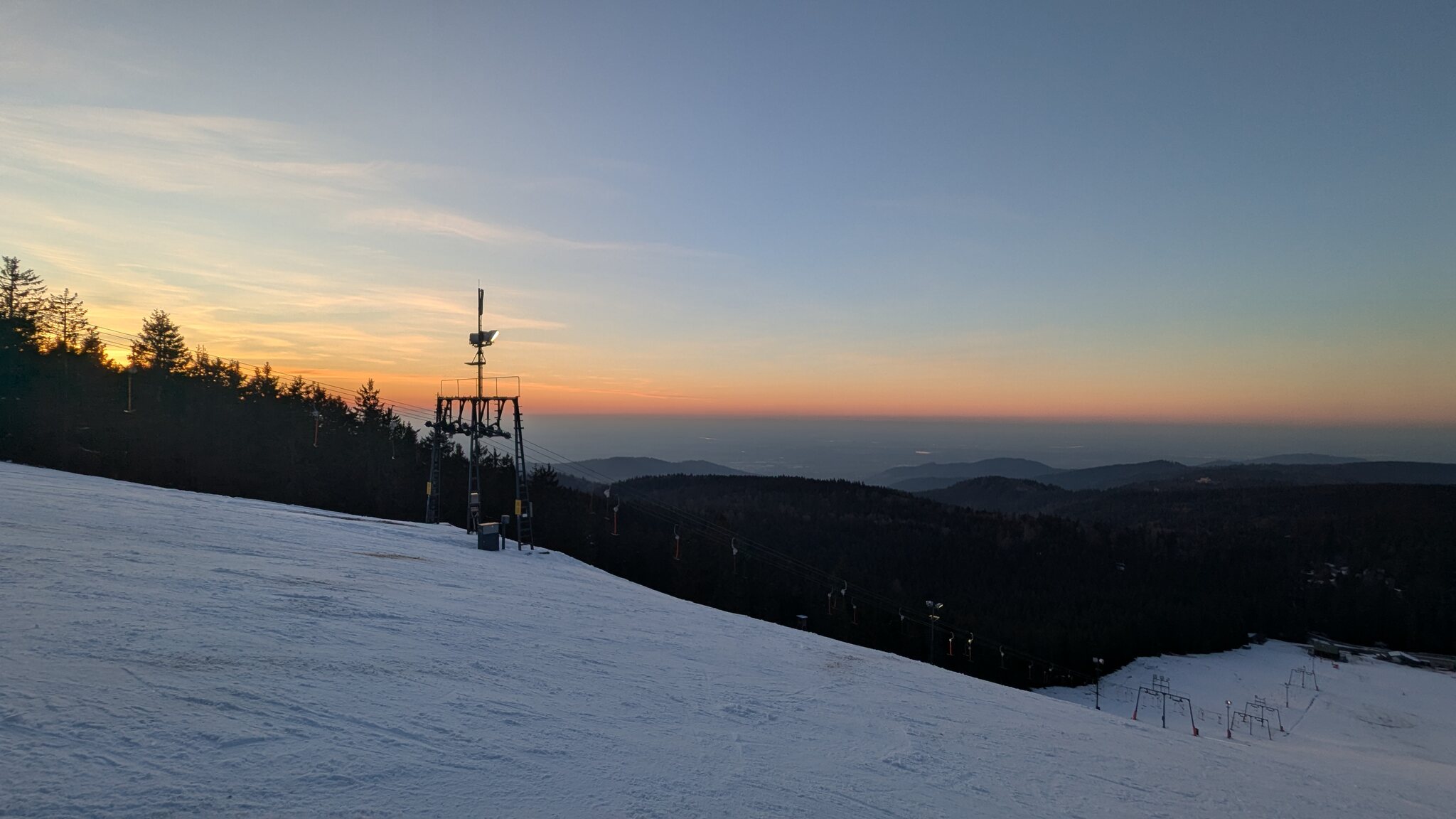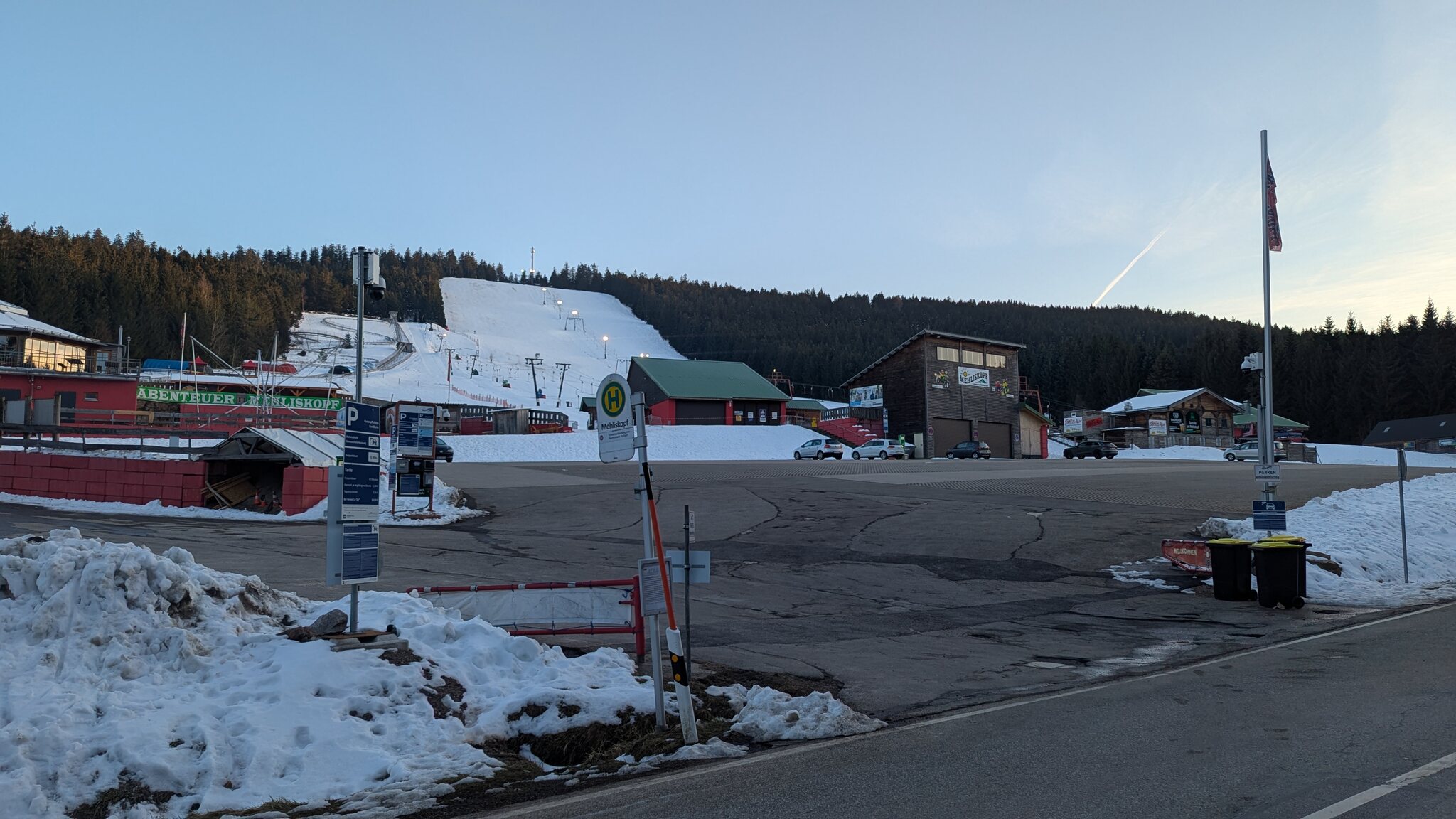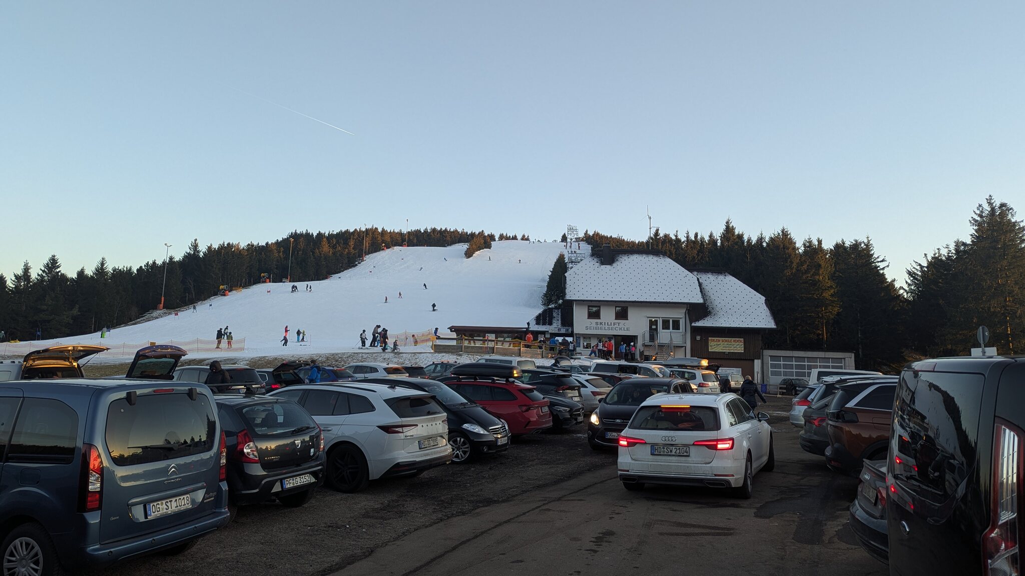 Unverhofft kommt oft. Während des freitagnachmittäglichen Homeoffice ließ mich Frau Harzwinter wissen, Radio SWR3 habe gerade die Öffnung des Skilifts im Nordschwarzwälder Ort Dobel ab 17 Uhr für Flutlichtbetrieb bekanntgegeben. Der Lift war in der letzten Saison gar nicht und in den Weihnachtsferien 2024 nur einen Tag in Betrieb. Zuletzt war ich 2013 dort. Die Homepage (auf Facebook) wusste noch nicht, ob der Lift auch am Samstag laufen würde. Also alles fallen gelassen, Skiequipment herausgekramt und nix wie hin. :D