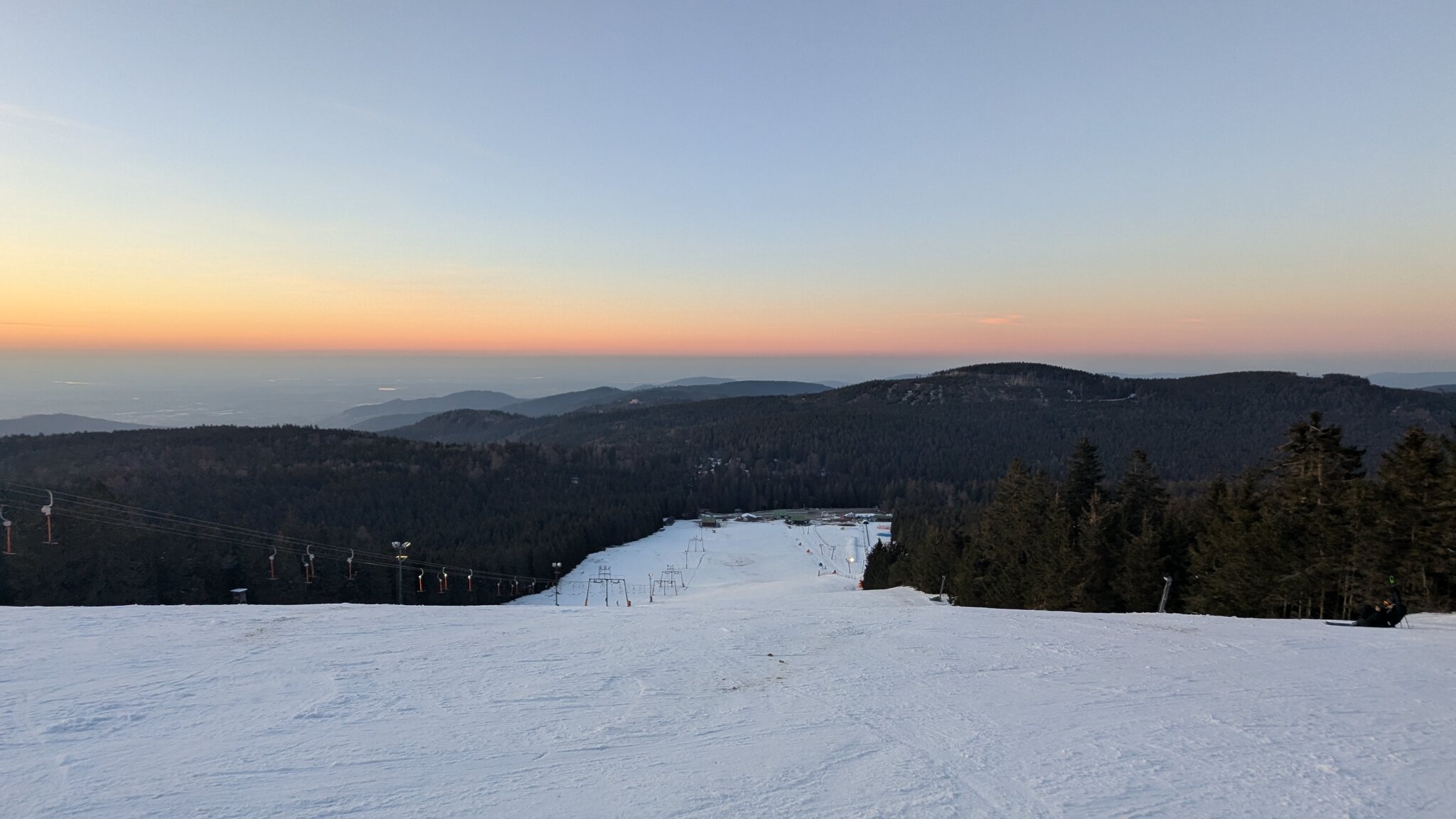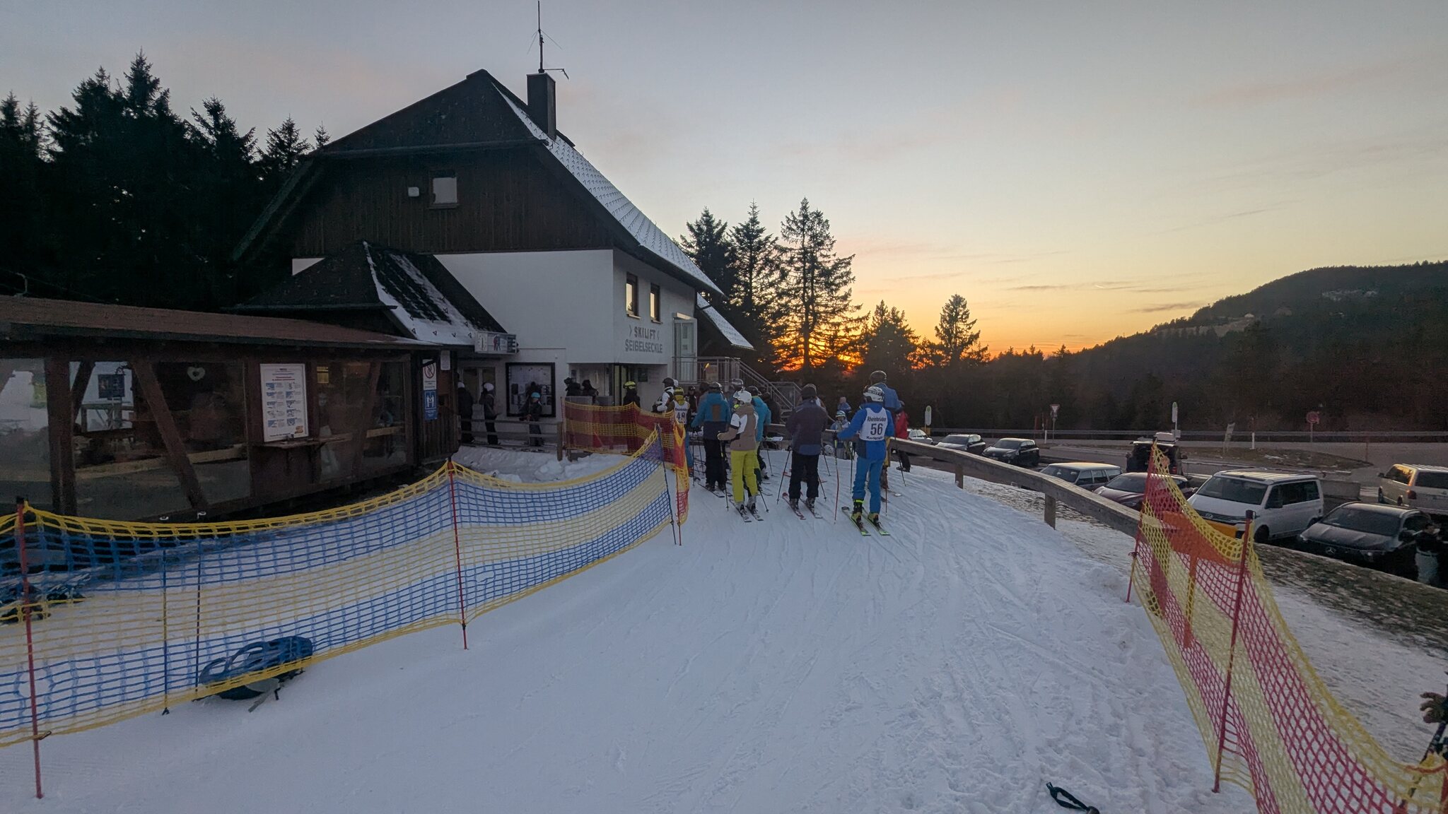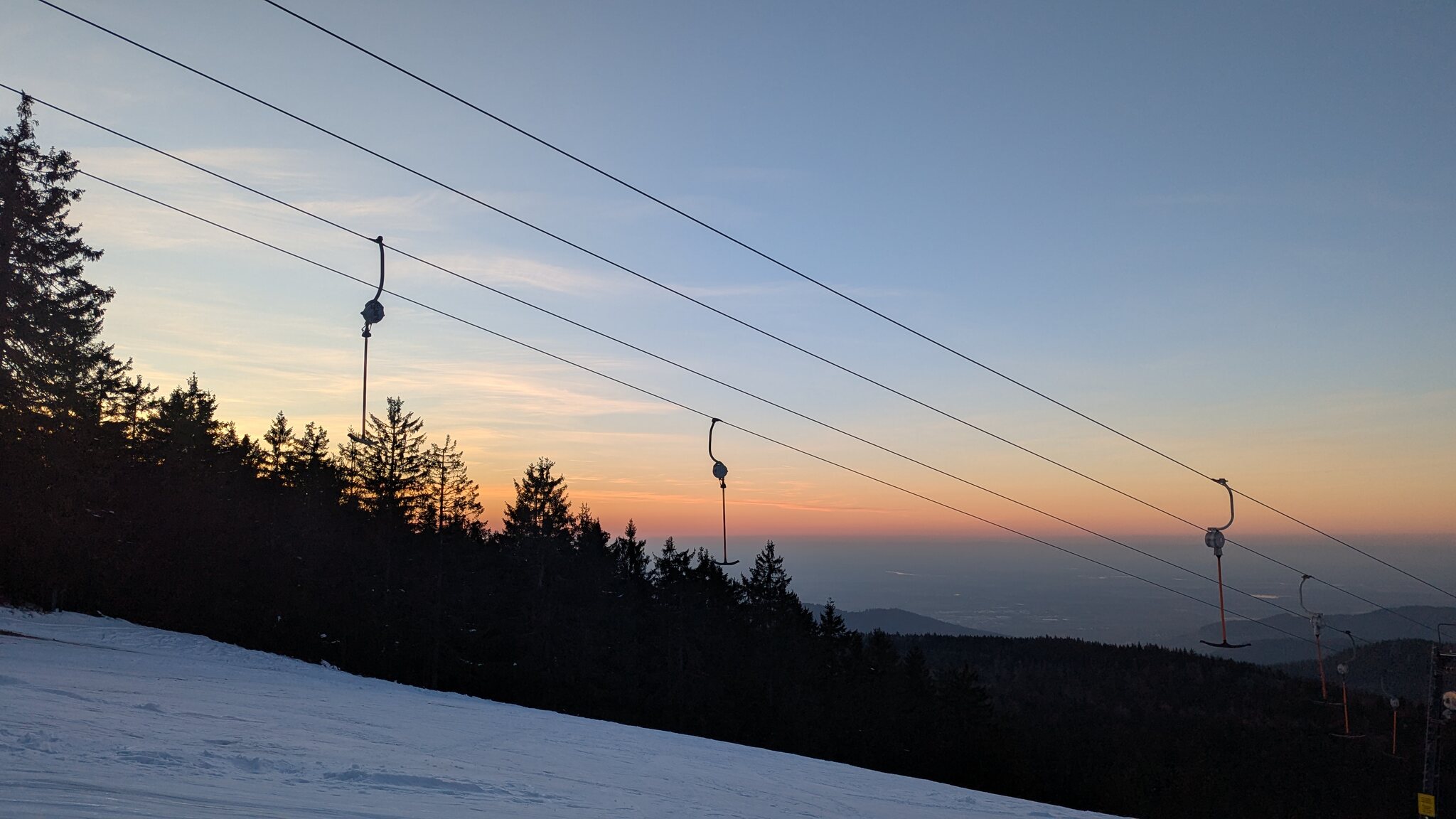 Unverhofft kommt oft. Während des freitagnachmittäglichen Homeoffice ließ mich Frau Harzwinter wissen, Radio SWR3 habe gerade die Öffnung des Skilifts im Nordschwarzwälder Ort Dobel ab 17 Uhr für Flutlichtbetrieb bekanntgegeben. Der Lift war in der letzten Saison gar nicht und in den Weihnachtsferien 2024 nur einen Tag in Betrieb. Zuletzt war ich 2013 dort. Die Homepage (auf Facebook) wusste noch nicht, ob der Lift auch am Samstag laufen würde. Also alles fallen gelassen, Skiequipment herausgekramt und nix wie hin. :D