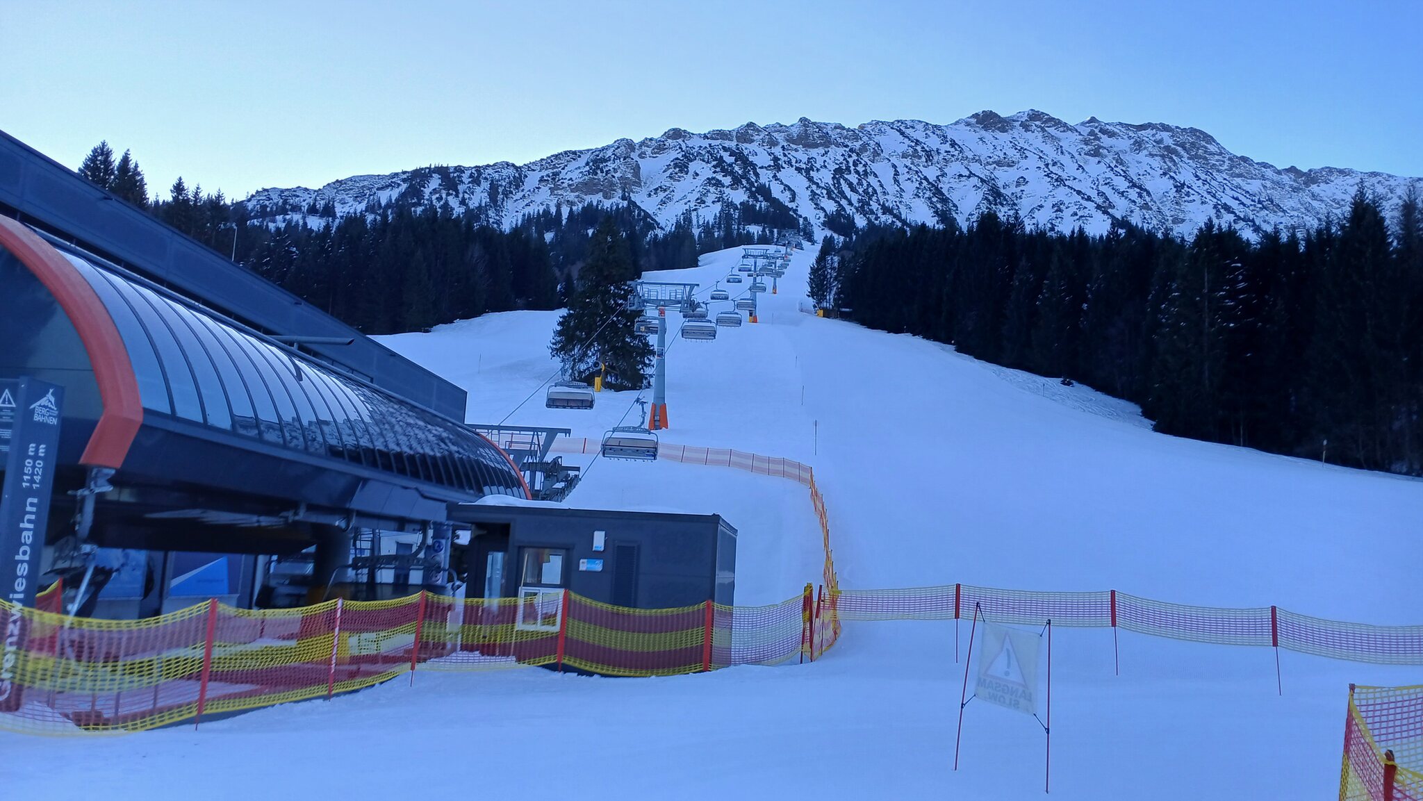 Den Tag begann ich an der Grenzwiesbahn. Da ich ohnehin früh genug dran war und das Parken dort im Gegensatz zur Iseler- und Wiedhangbahn kostenlos ist, passt das gut. Die Bahn ging auch bereits um ca. 08:25 Uhr in Betrieb