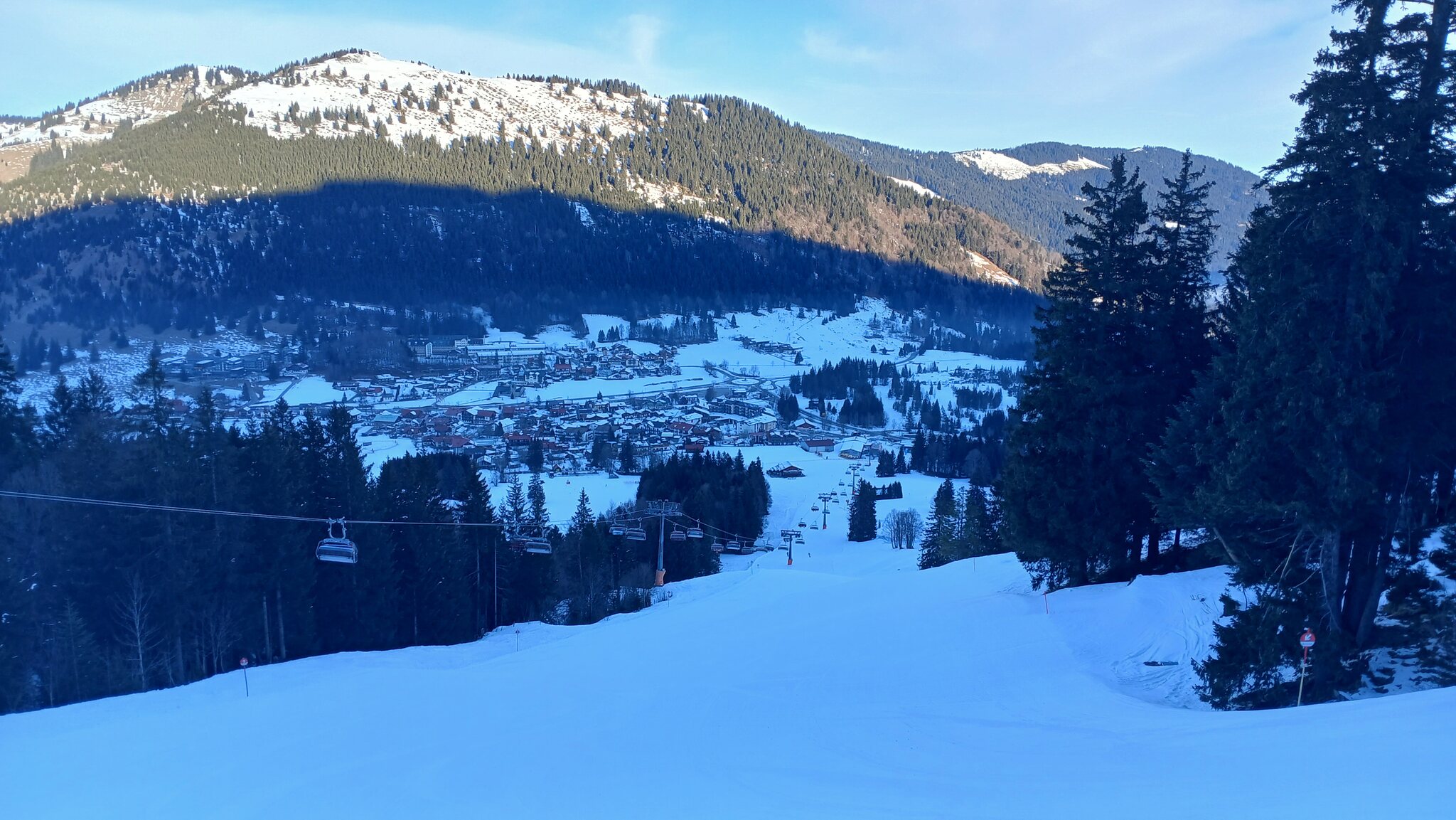 Auch der Hang auf der Verbindungspiste von der Wiedhangbahn zur Iselerbahn ging sehr gut und war sehr griffig. Leider ist es im gesamten Gebiet sehr lange sehr schattig, da der Iseler die Sonne regelrecht verschluckt