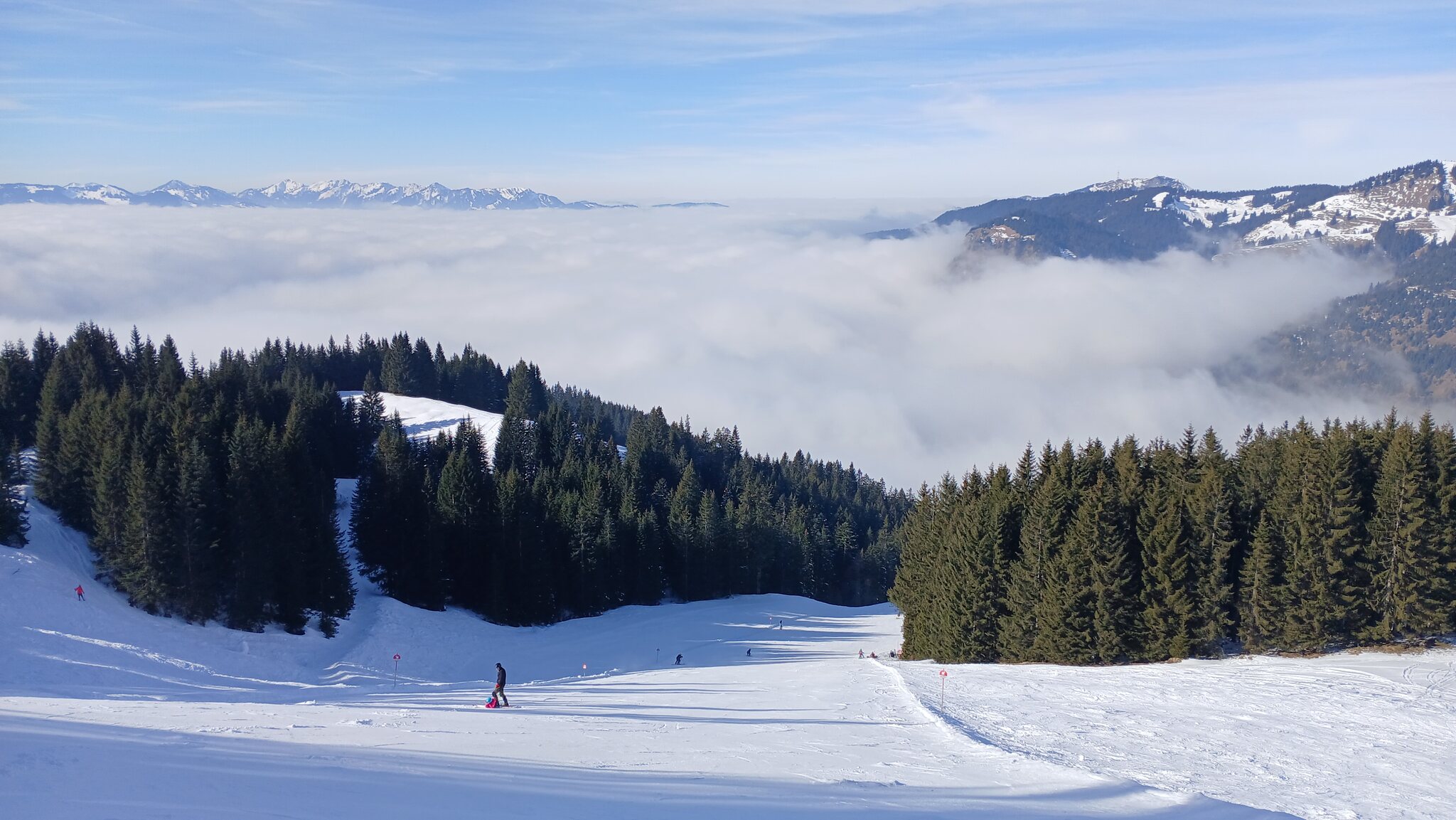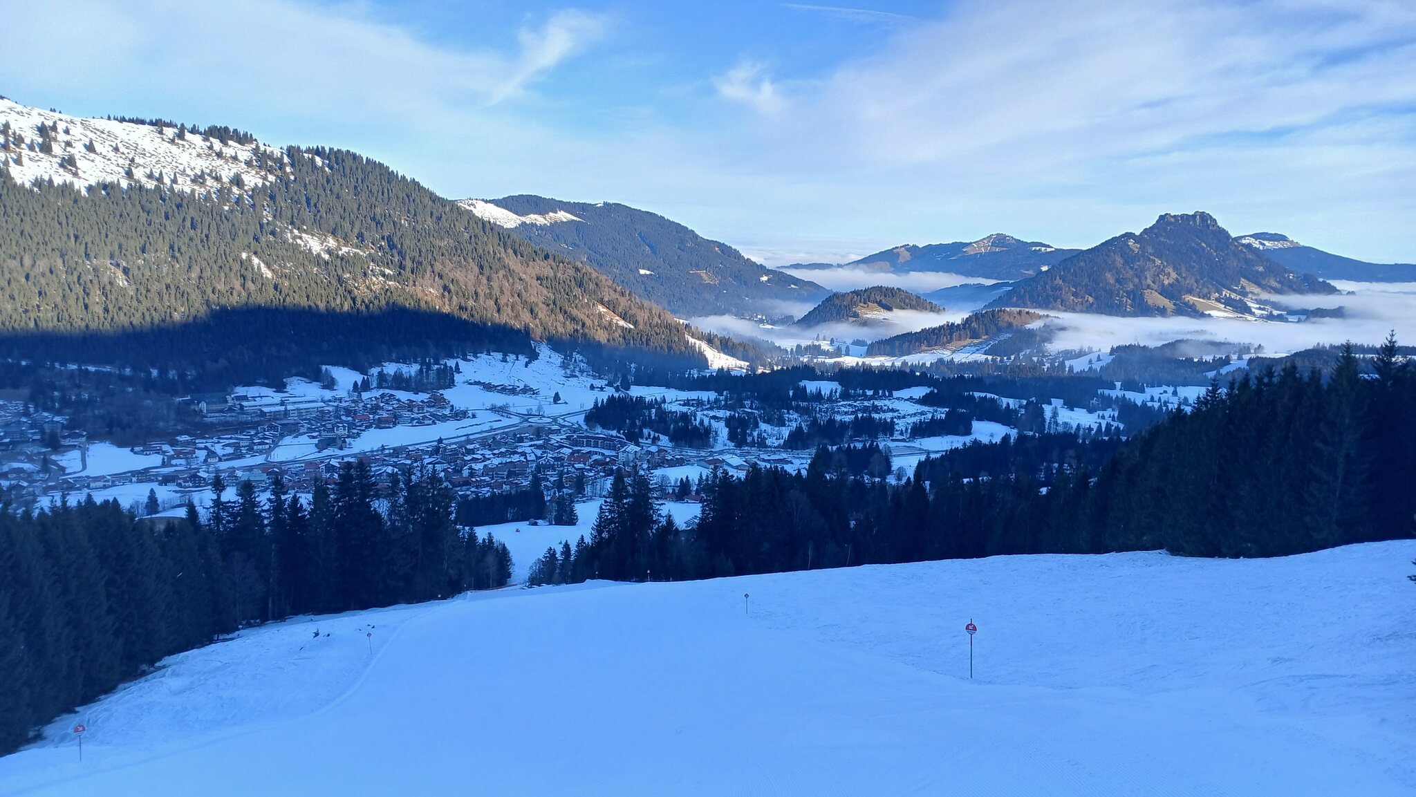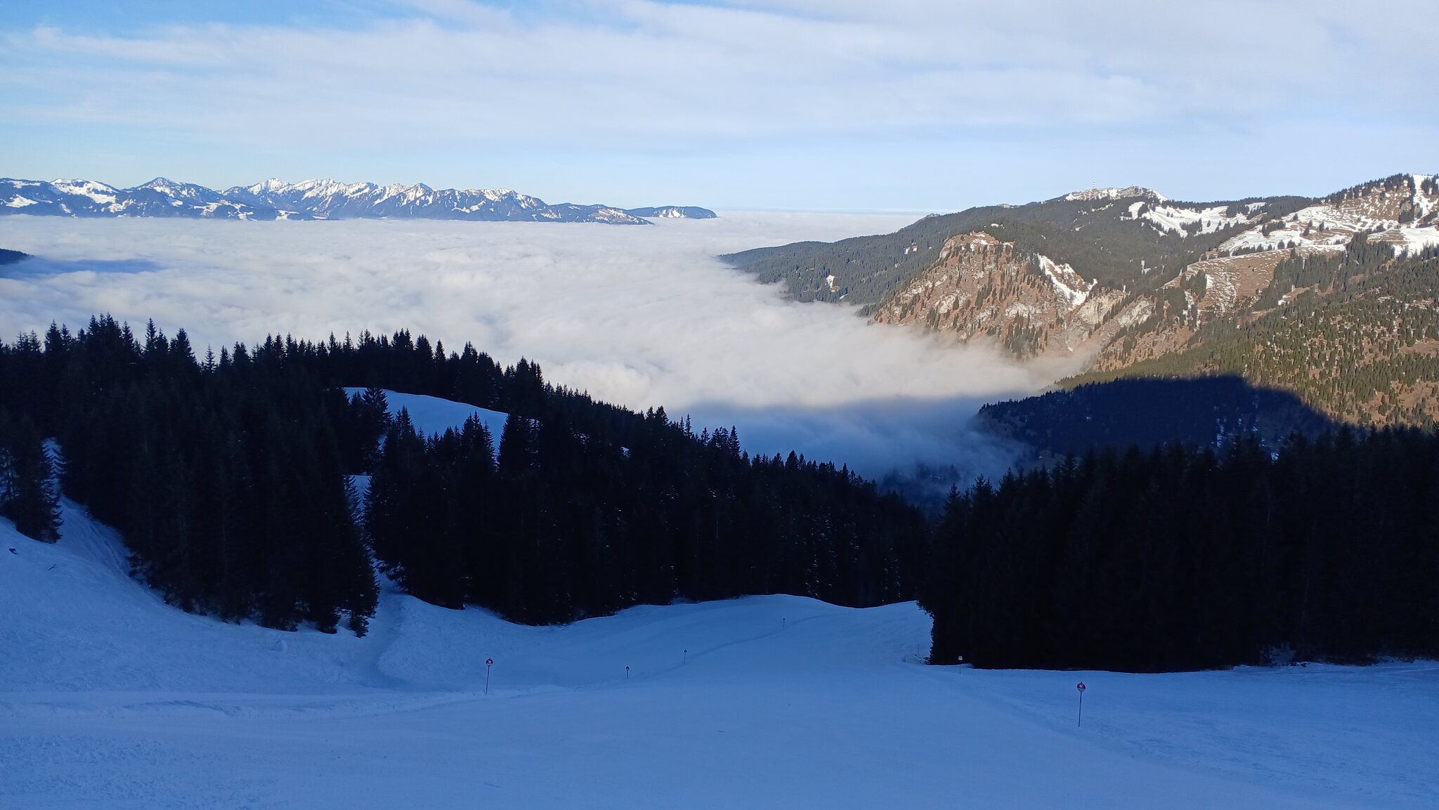 Gegen Mittag auf der tollen Standard-Abfahrt. Von Bad Hindelang kommend drückte der Nebel bis zur Schwandenbahn empor