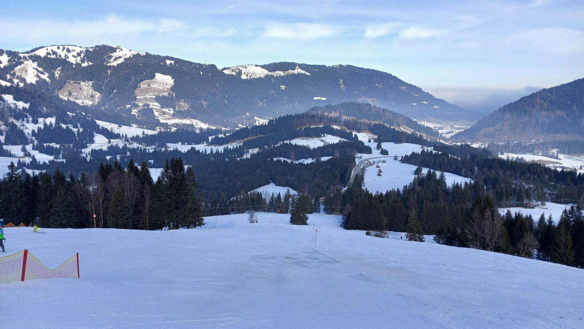 In Nesselwang war es oben und unten neblig. Die Bodensicht blieb aber gut. Es wehte ein frischer Wind, der es noch kälter machte. Los war quasi nichts.
