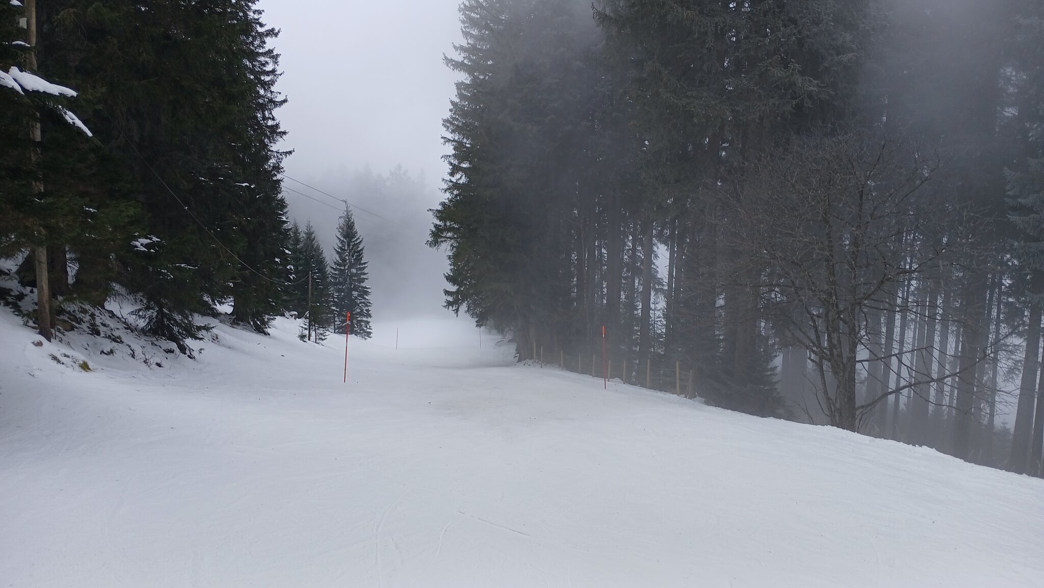 Die Kühgrund-Abfahrt war - mit Ausnahme der Geländekuppen - sehr gut in Schuss und sehr griffig. Im Flachland hielt sich der Nebel ganztägig