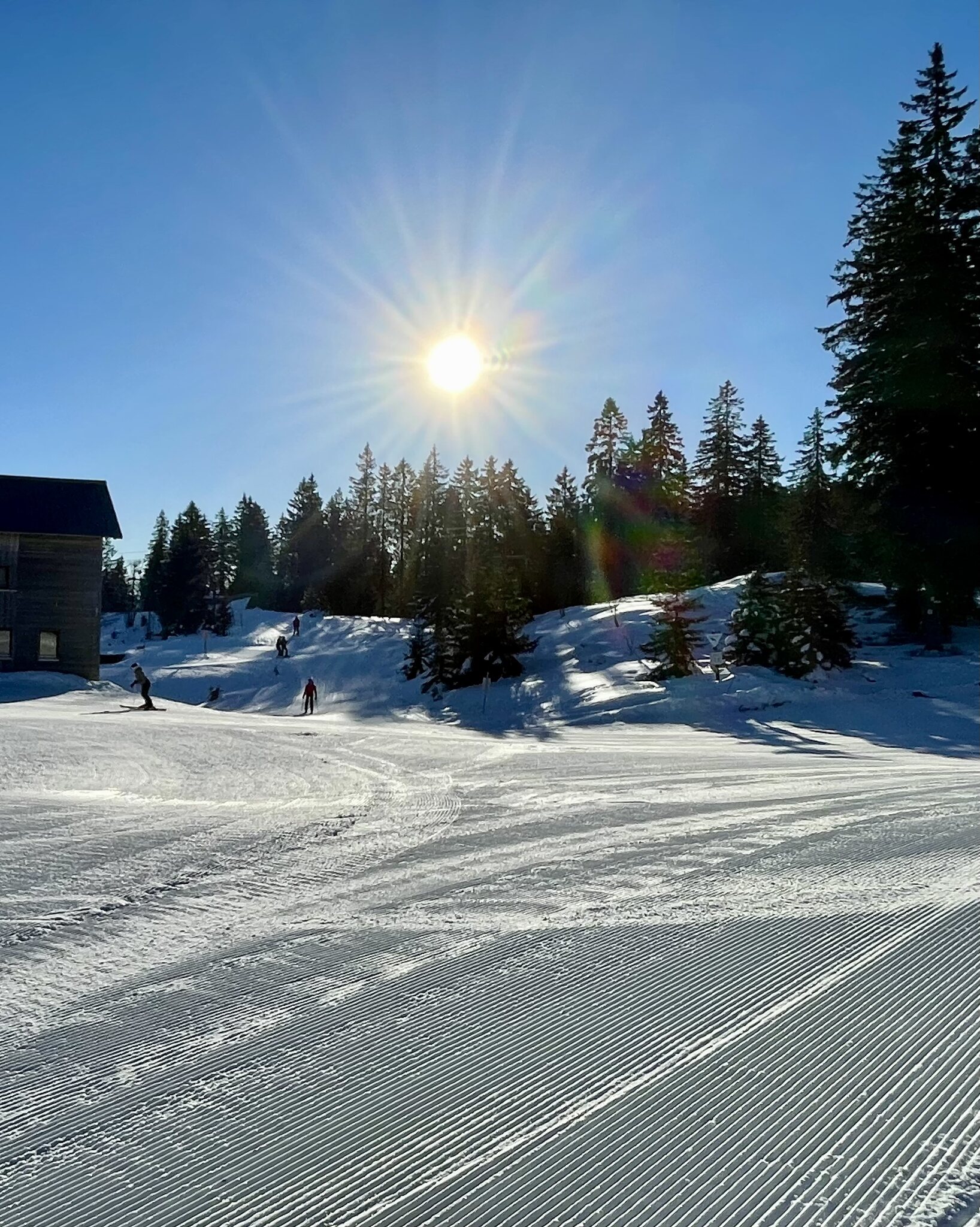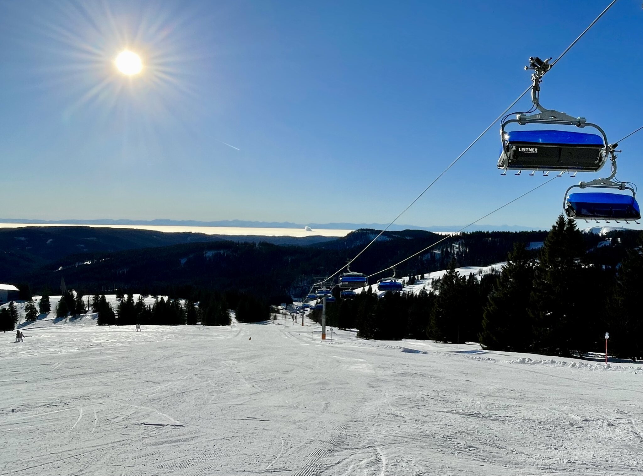 Aber ansonsten wunderschöner Tag mit toller Fernsicht auf die Alpen und guten Carvingpisten. Auf den Pisten hat es grösstenteils ausreichend Schnee ohne Steine oder Dreck. Die geschlossenen Pisten nach Fahl wären die Krönung, die bieten wirklich einige Höhenmeter.