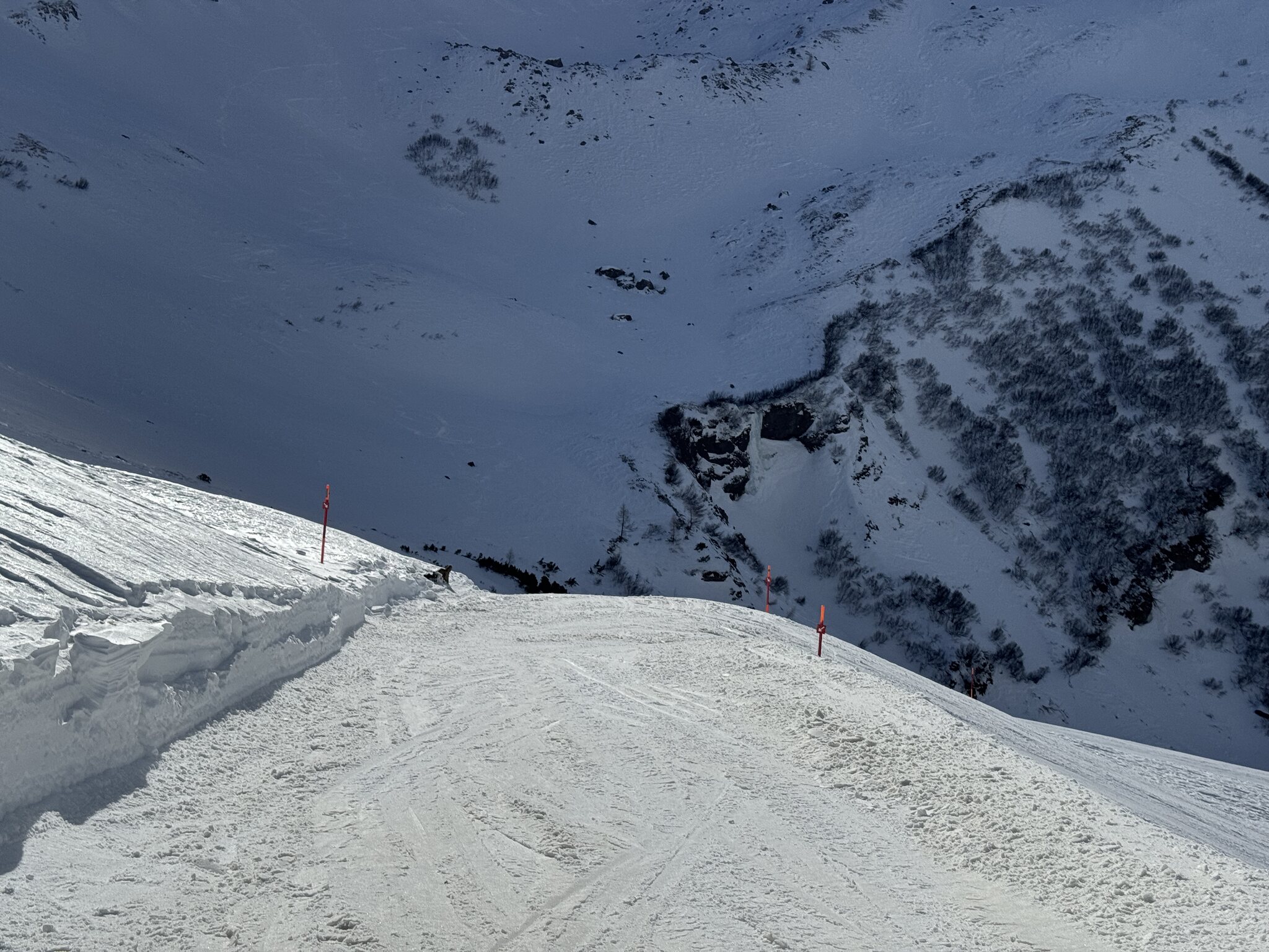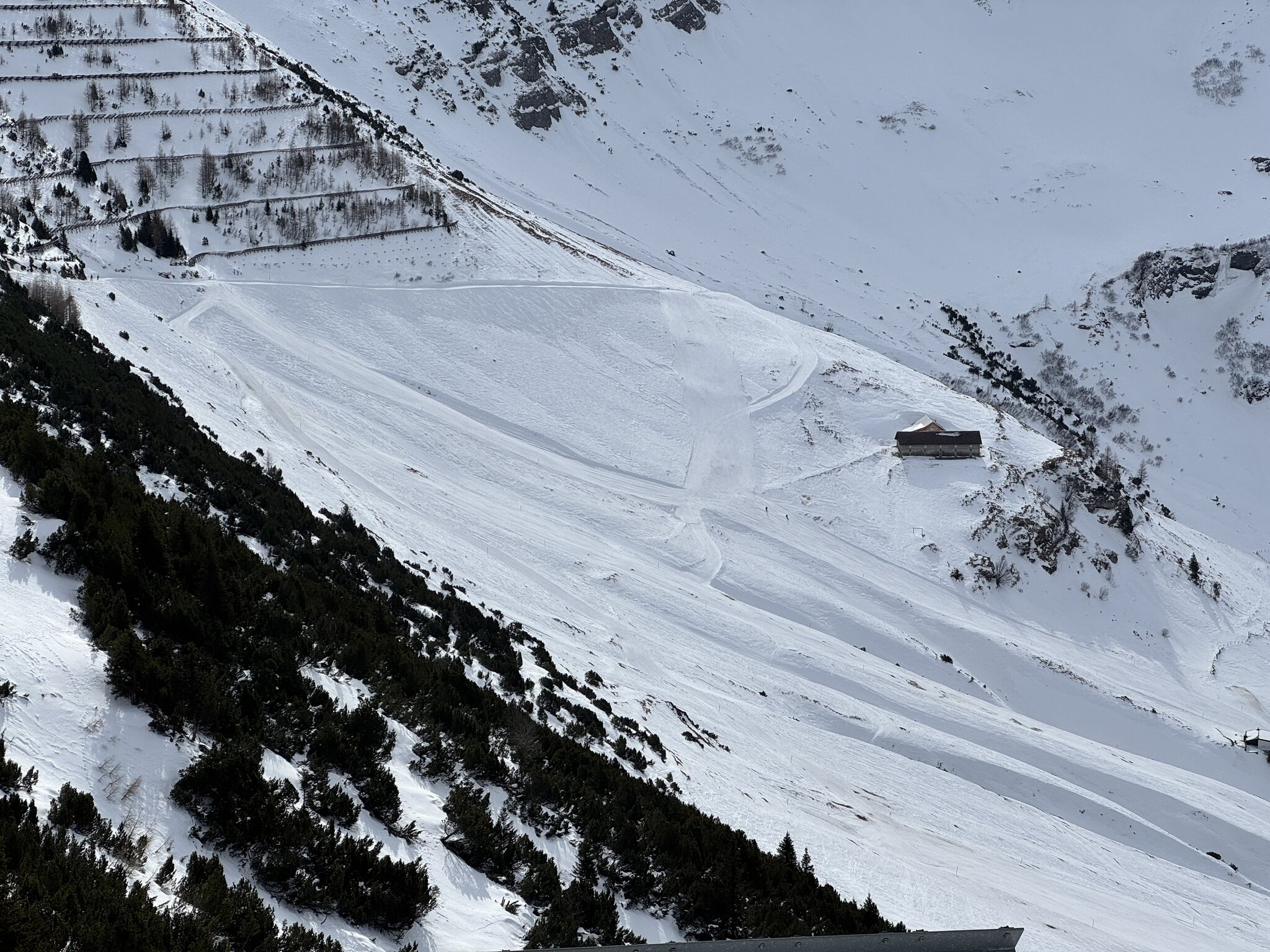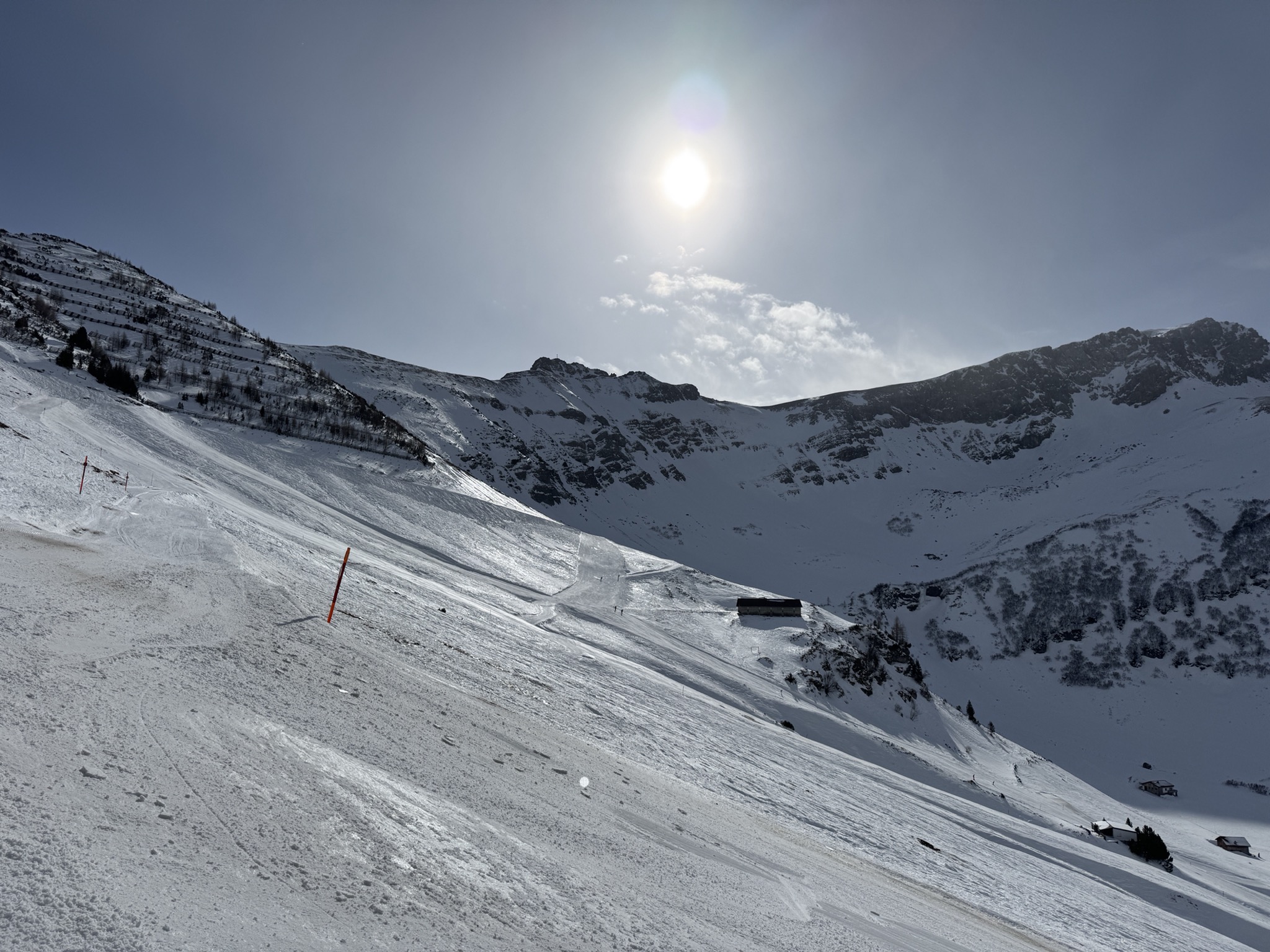Ganz anders der Bereich Sareis, wo heute typische 80er-90er Jahre Naturschneeverhältnisse vorherrschten. Auf den Hängen merkt man, was für ein Gelände man unter den Brettern hat.