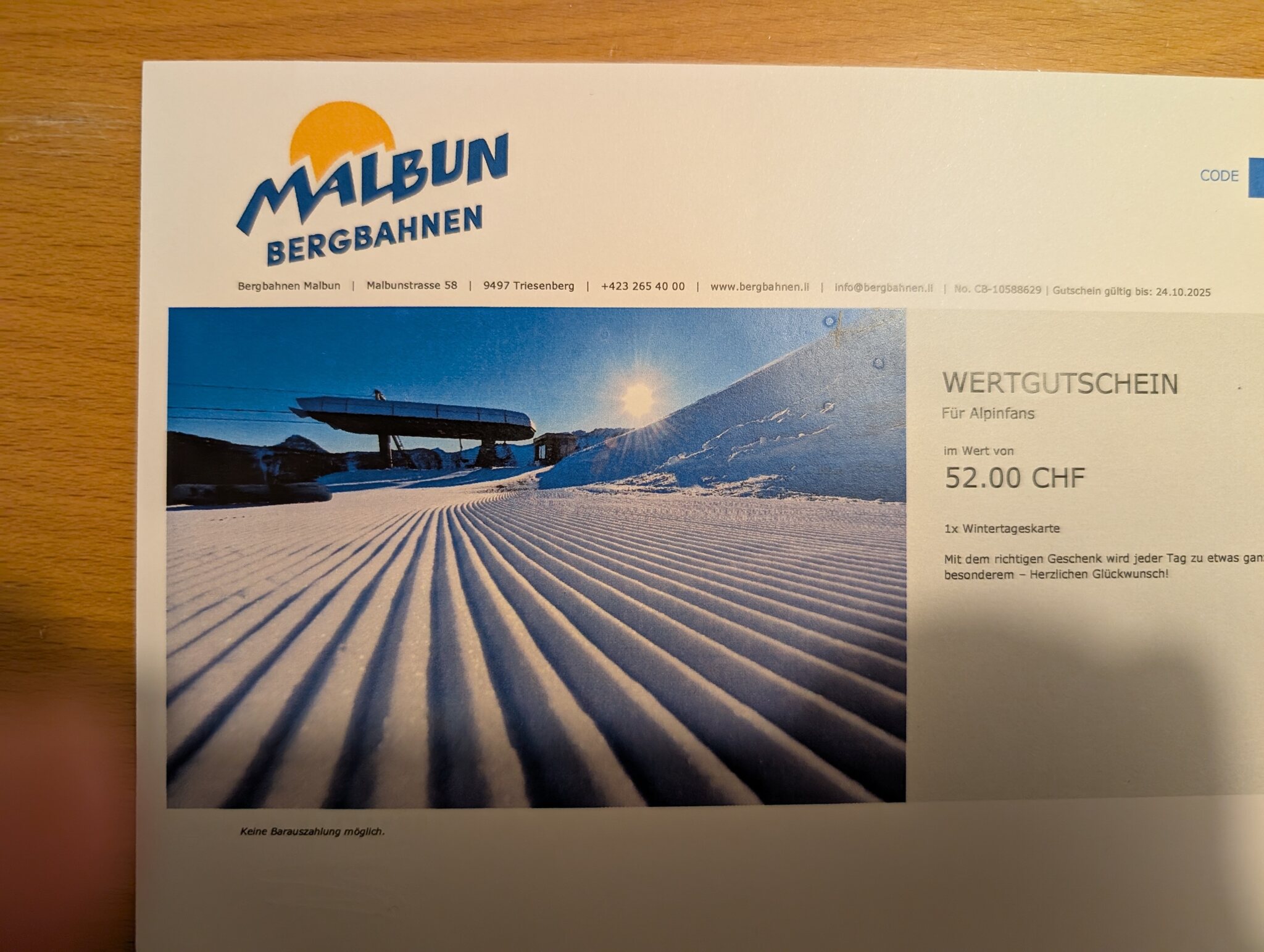 Ganz lieben Dank an das Team Alpinfans, insbesondere Hitparade für die super Aktion und die Bergbahnen Malbun für den Gutschein.