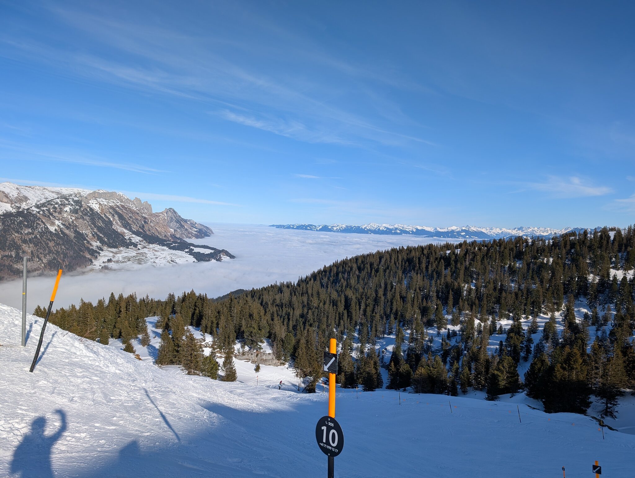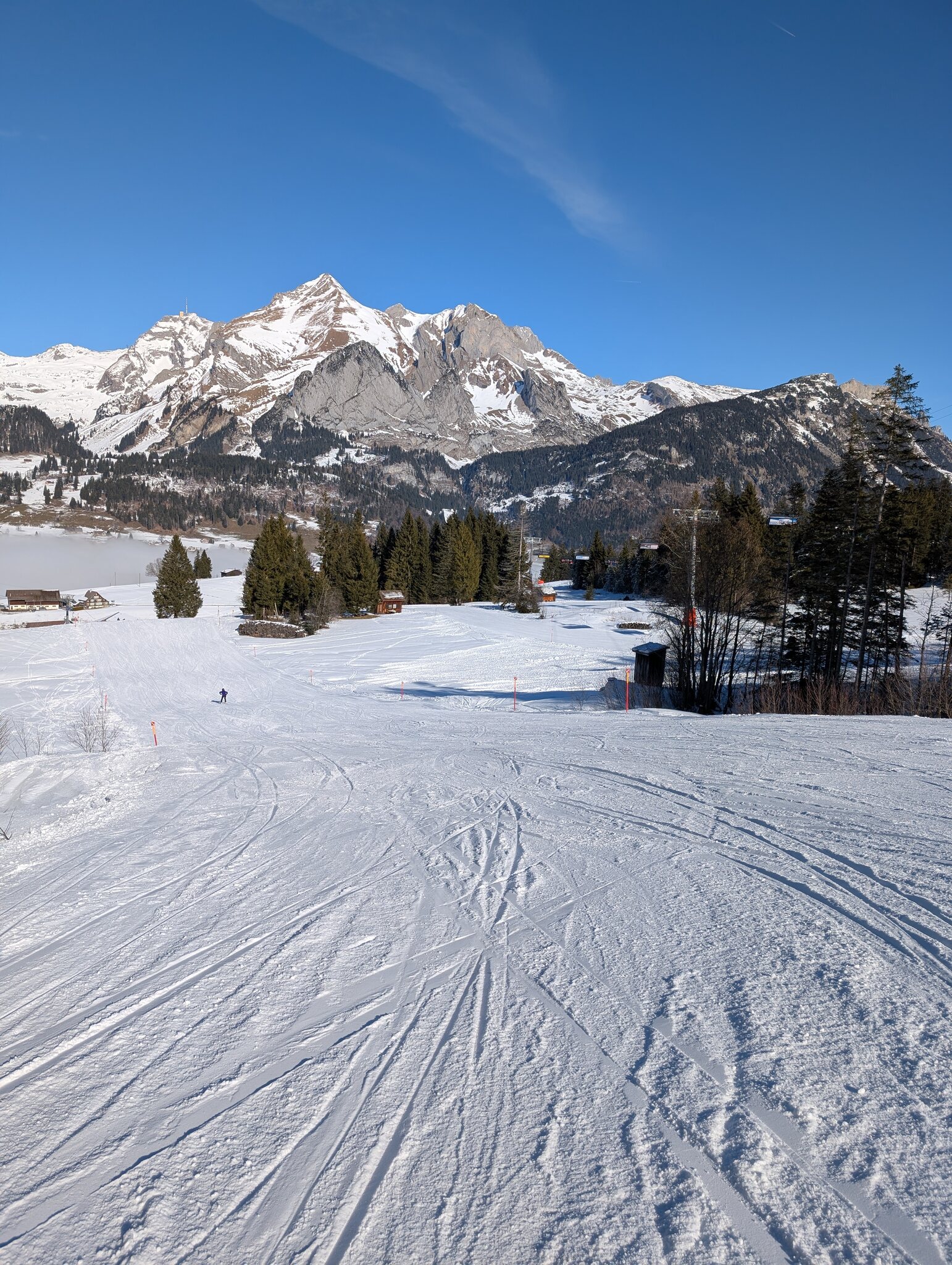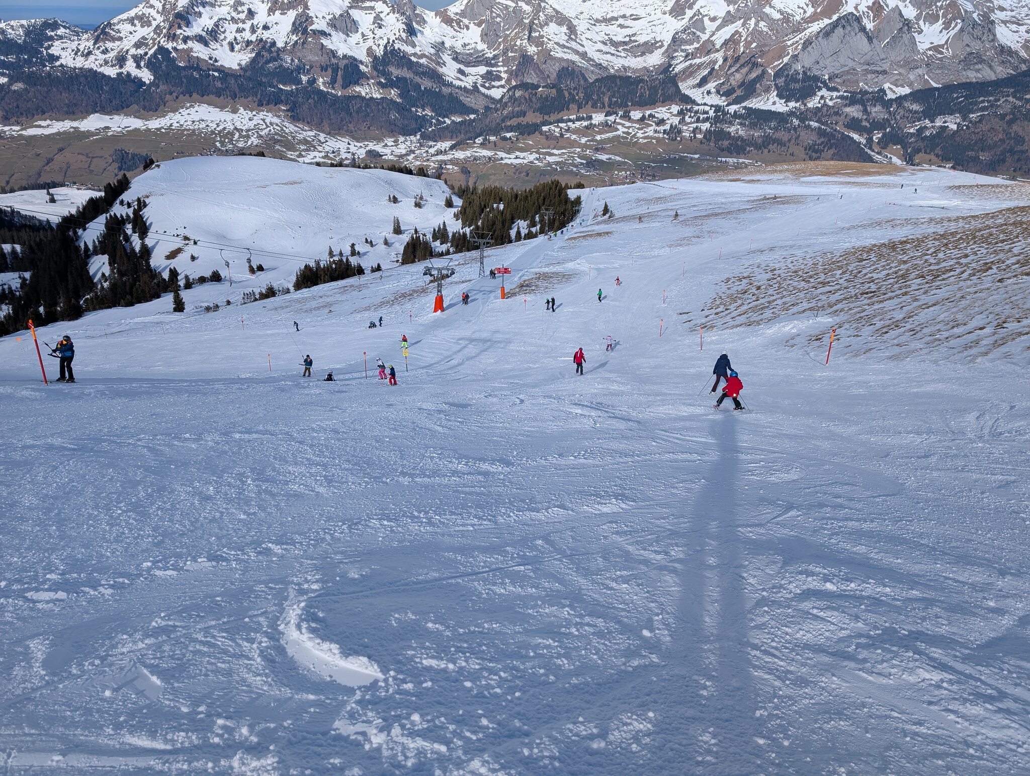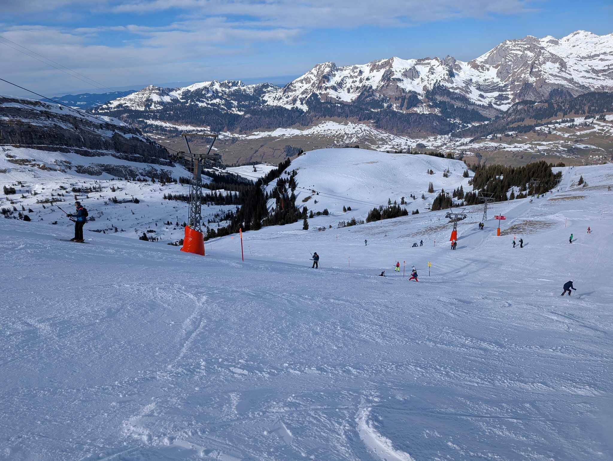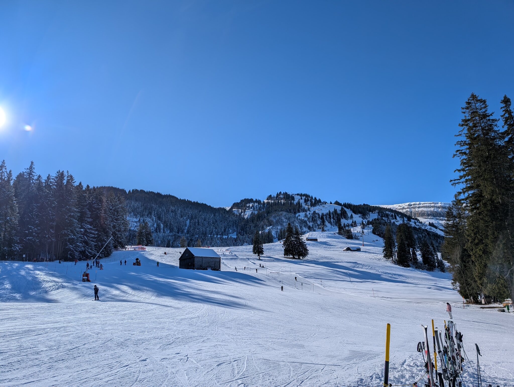 Vier Winter in folge waren wir jeweils eine Woche in Wildhaus, von 2021 bis 2024. Jedes Jahr wurde die Schneelage etwas schlechter. Wobei wir 2023 noch sehr viel Glück hatten, da es genau am Samstag bei unserer Ankunft kräftig geschneit hat. Letztes Jahr war es dann wirklich schwierig. Talabfahrten zu, der letzte Abschnitt zu den Stationen im Oberdorf nur noch auf schmalen Streifen erreichbar. Der Schnee wird mit Kisten in der Sesselbahn heruntergefahren (kein Witz).