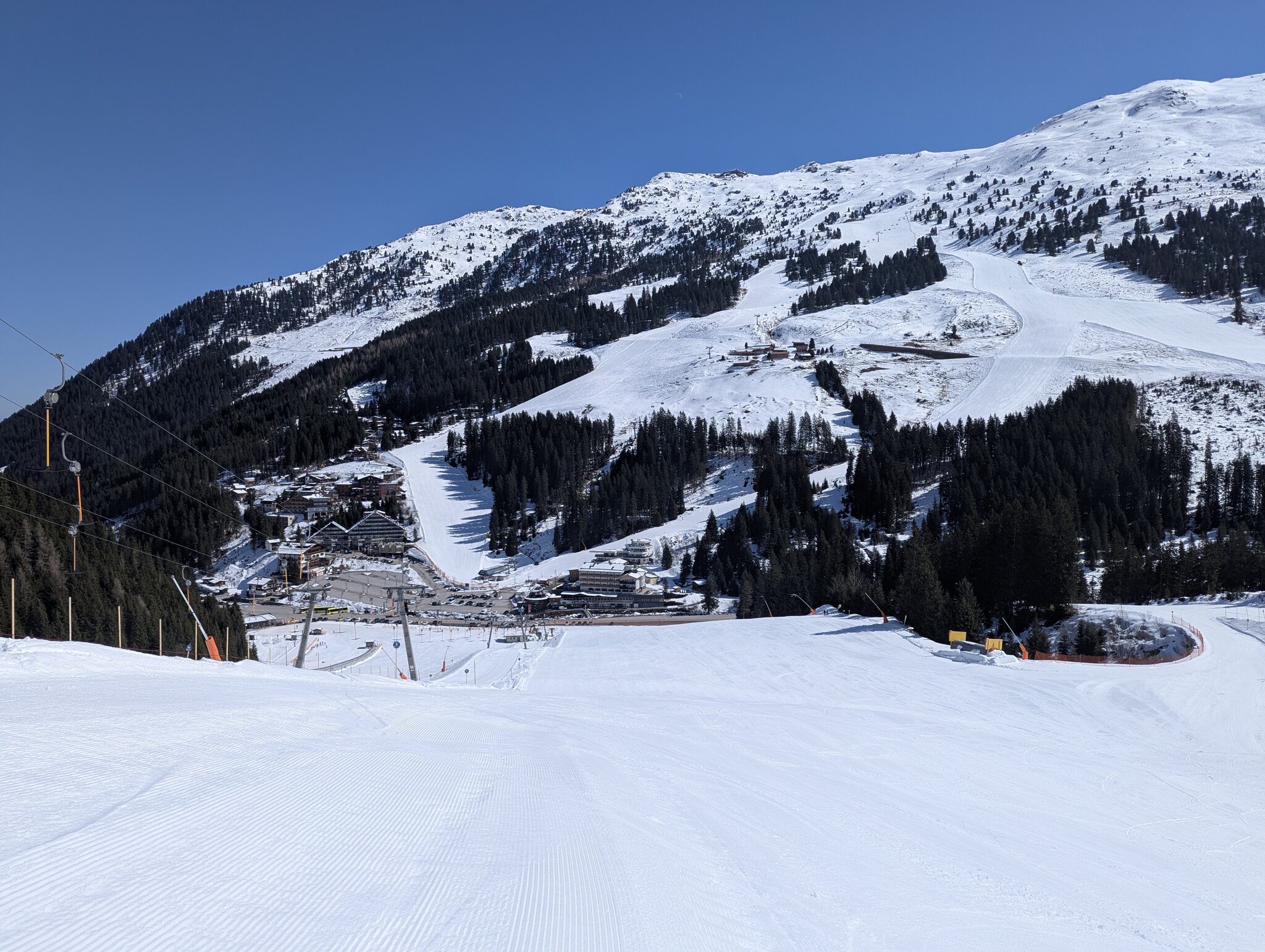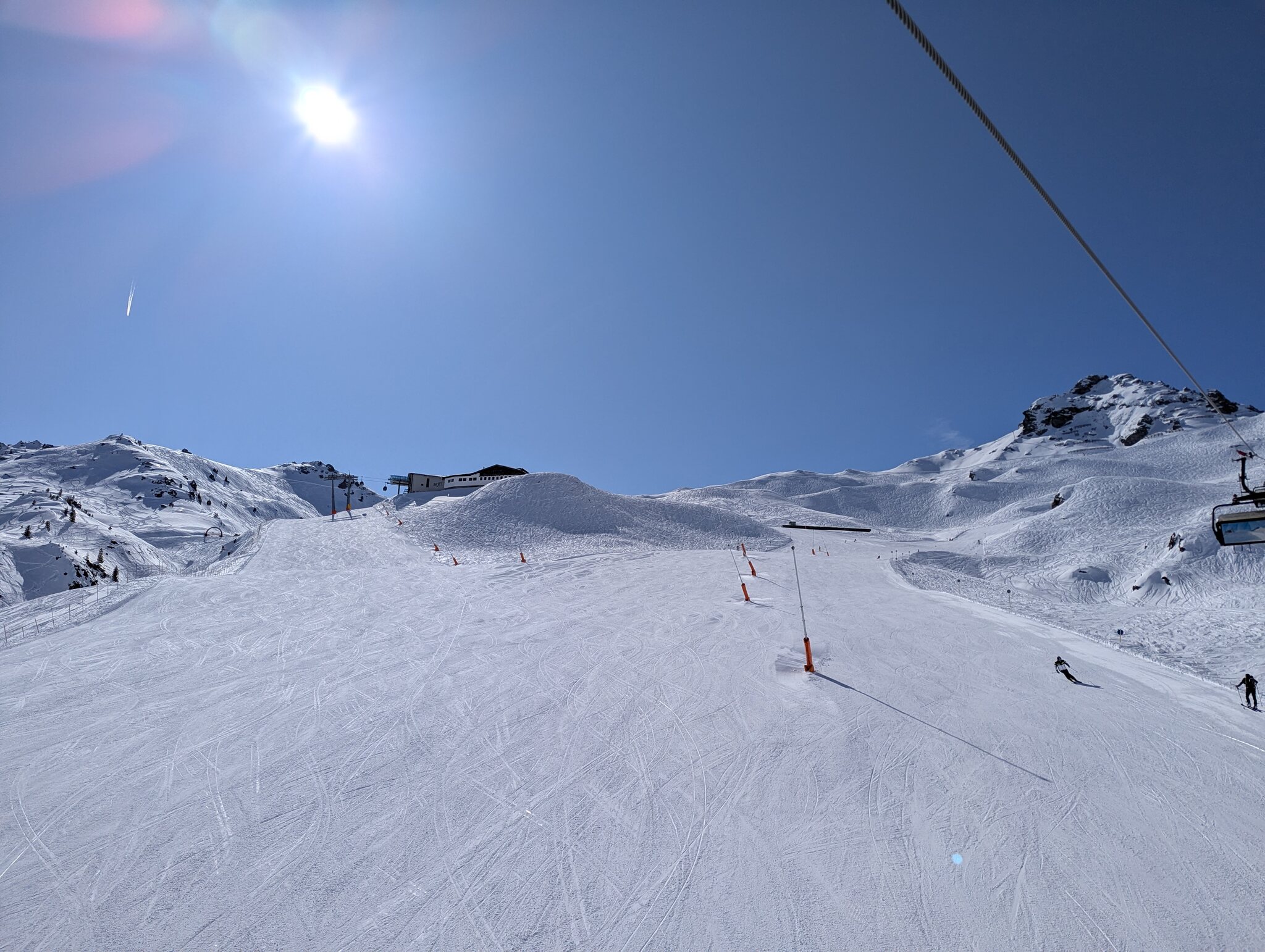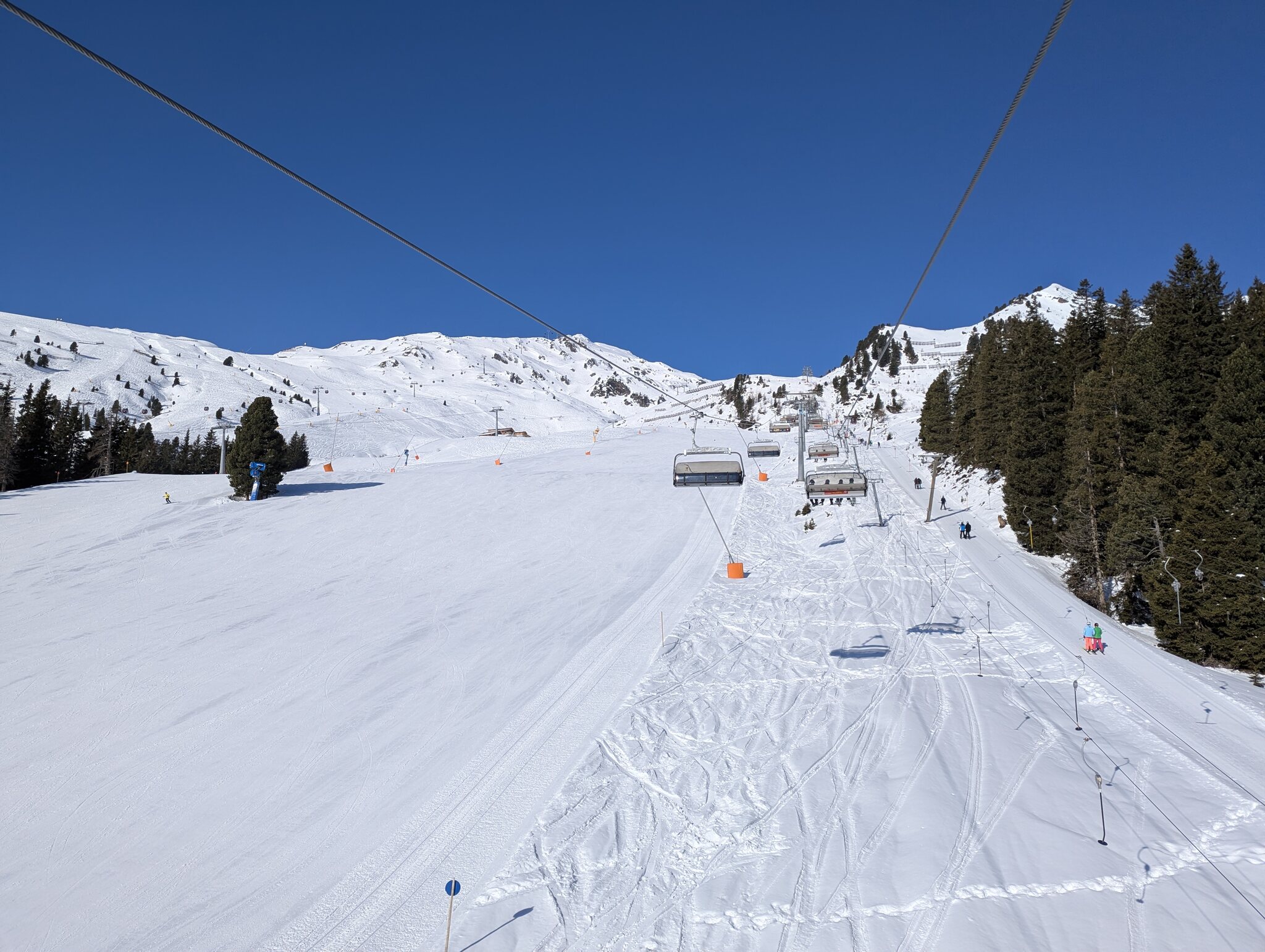 -->Viel los. Aber bei den 6er, 8er Sessel und 10er Gondeln hat man es nicht so gemerkt. Auf den blauen Abfahrten war auch eher Gewusel. Auf den Schwarzen wenig los.