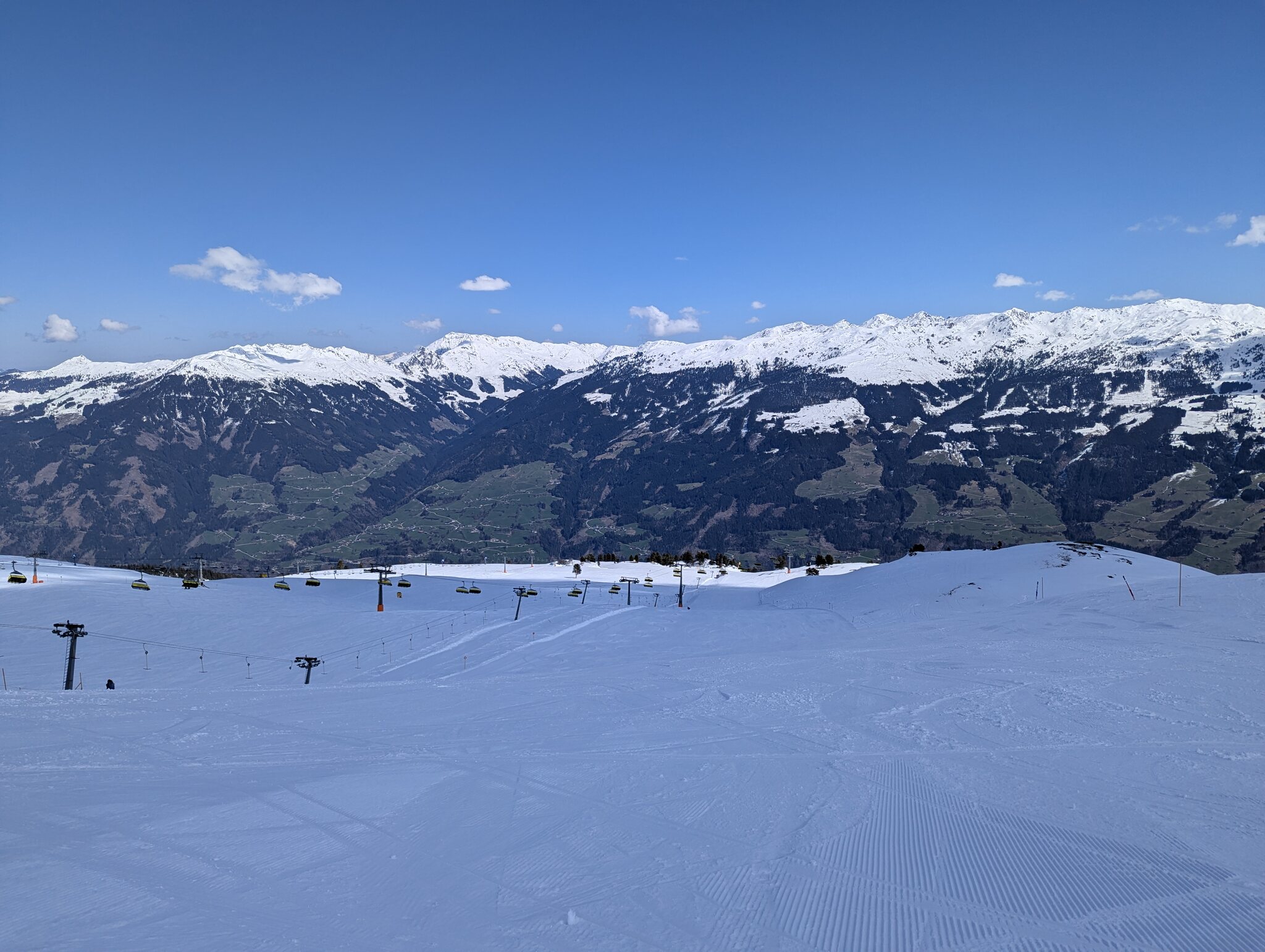 Leicht wärmer wie gestern aber Pisten gleich bis besser, nur wenige sind knollig. Leider wegen Arbeit erst um 9:30 angekommen.. Jetzt um 11:00 schon zum Neuhütten weil es im Haupt Sektor zu weich wird.. gegen 12:00 dann nach Hochfügen wo ich hoffe es ist ähnlich leer wie gestern...