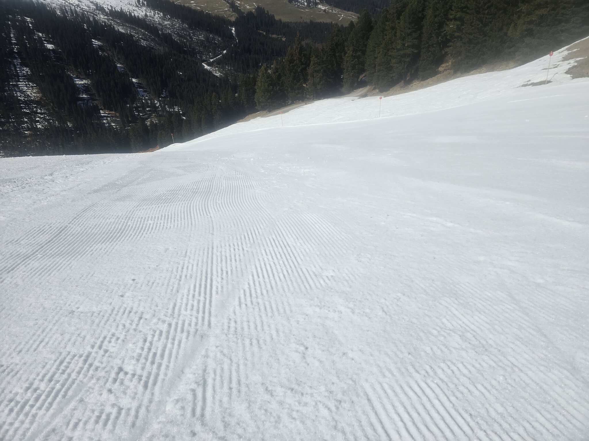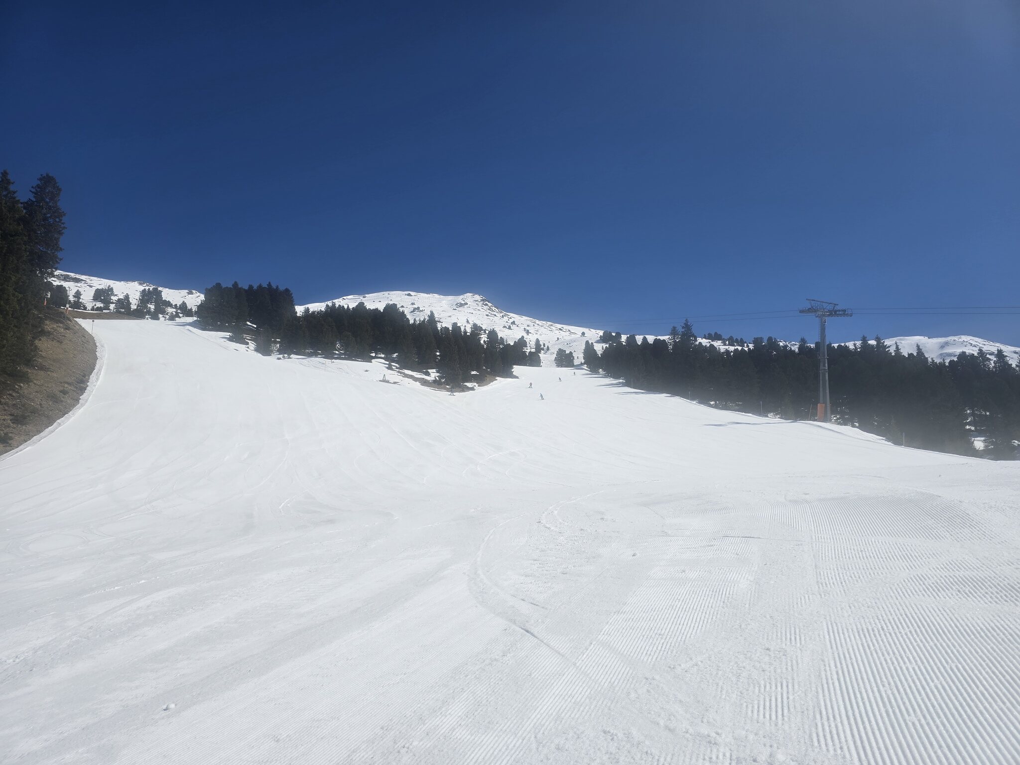 -->Pisten oben fast alle ganztags pulvrig. Talabfahrt in der Früh hart, aber griffig. Nachmittags logischerweise sulzig und aufgefahren, aber trotzdem gut und der Schnee reicht noch. Vielleicht noch 2 Wochen bei zweistelligen Plusgraden.