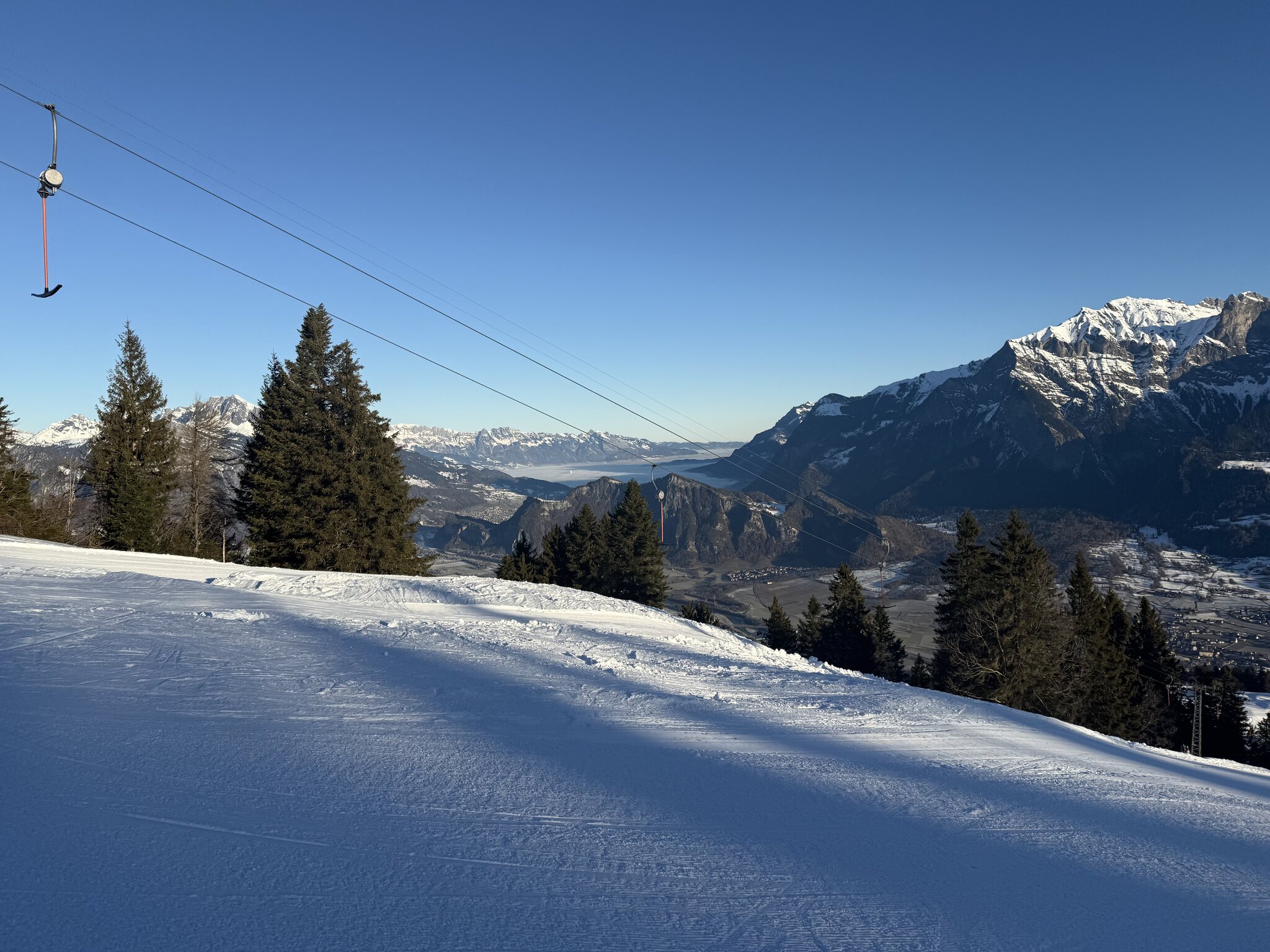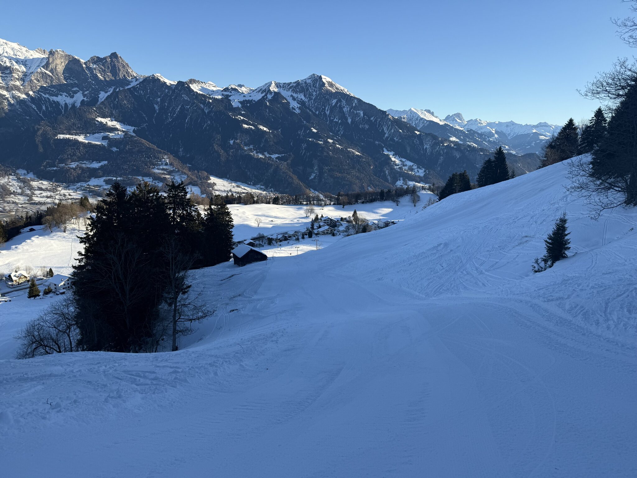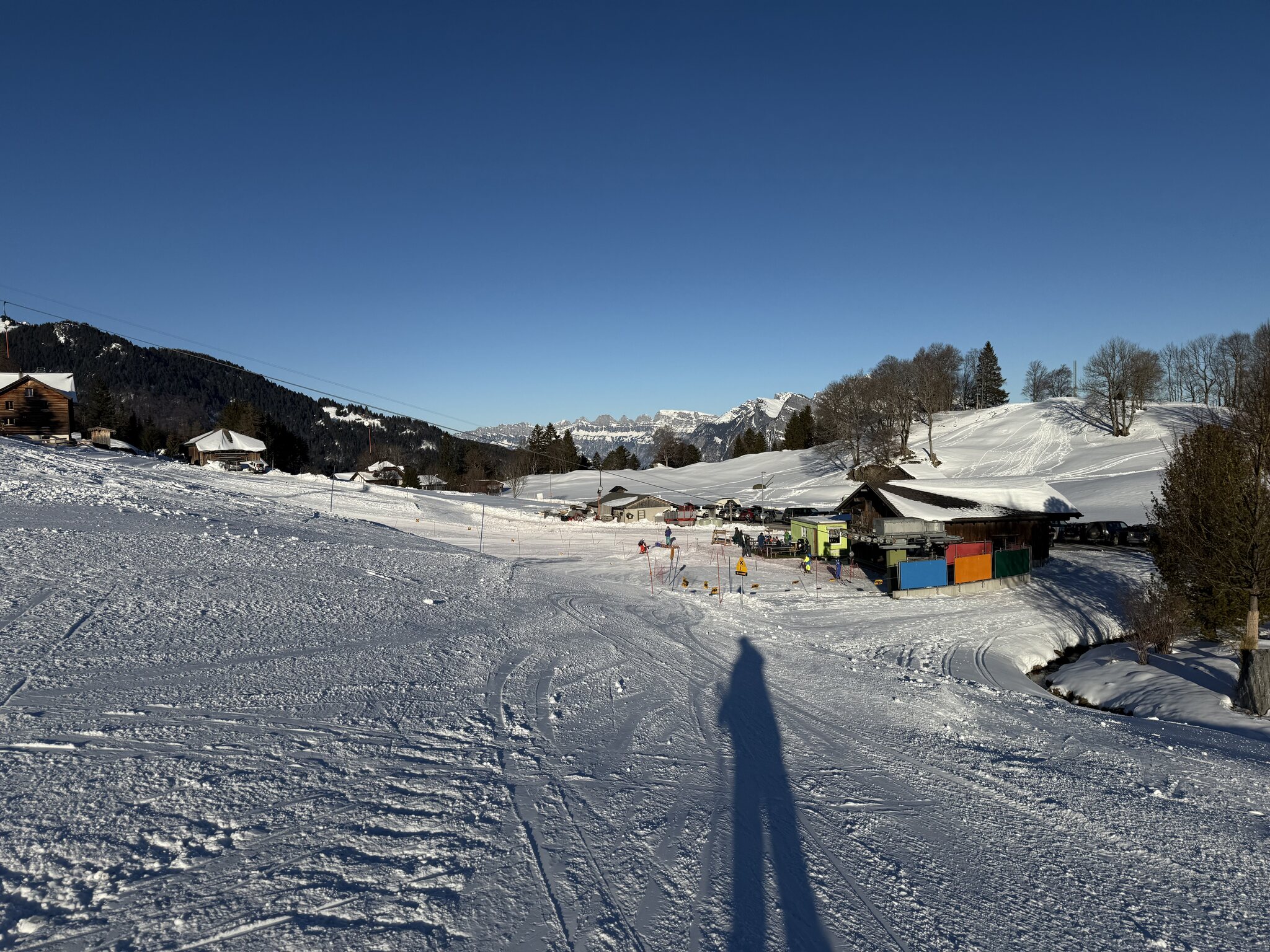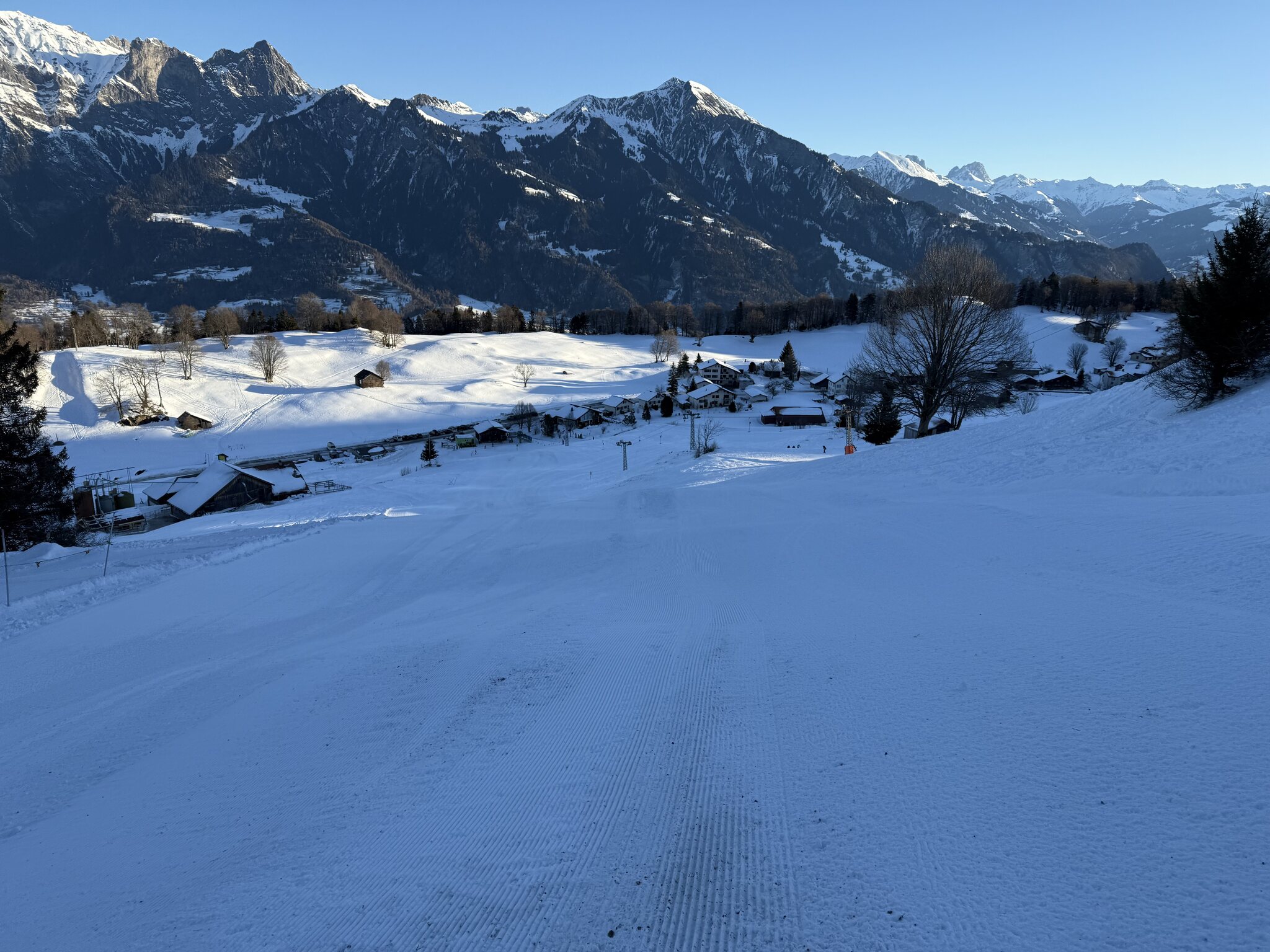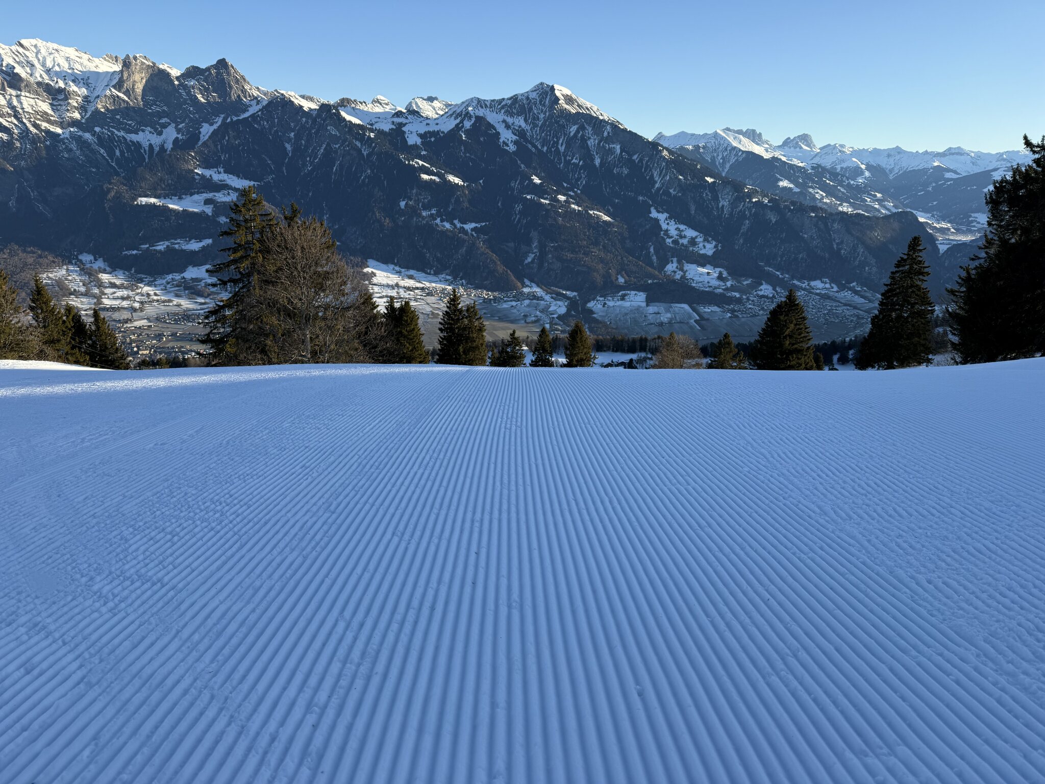 Die Pisten waren alle frisch präpariert, soweit es halt ging mit dem Naturschnee. Oben top, unten okay. Feindkontakt konnte gut vermieden werden. Was mir aufgefallen ist, ist die Breite der Pisten, einiges breiter als bei manchem grösseren Skigebieten.