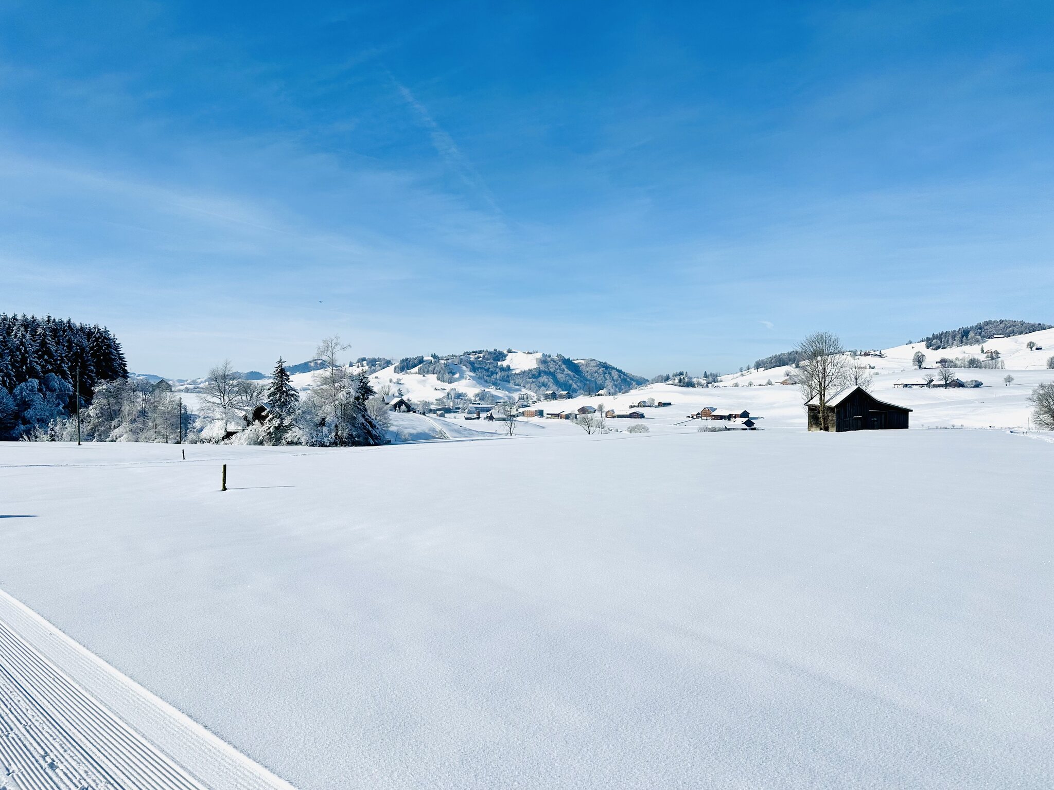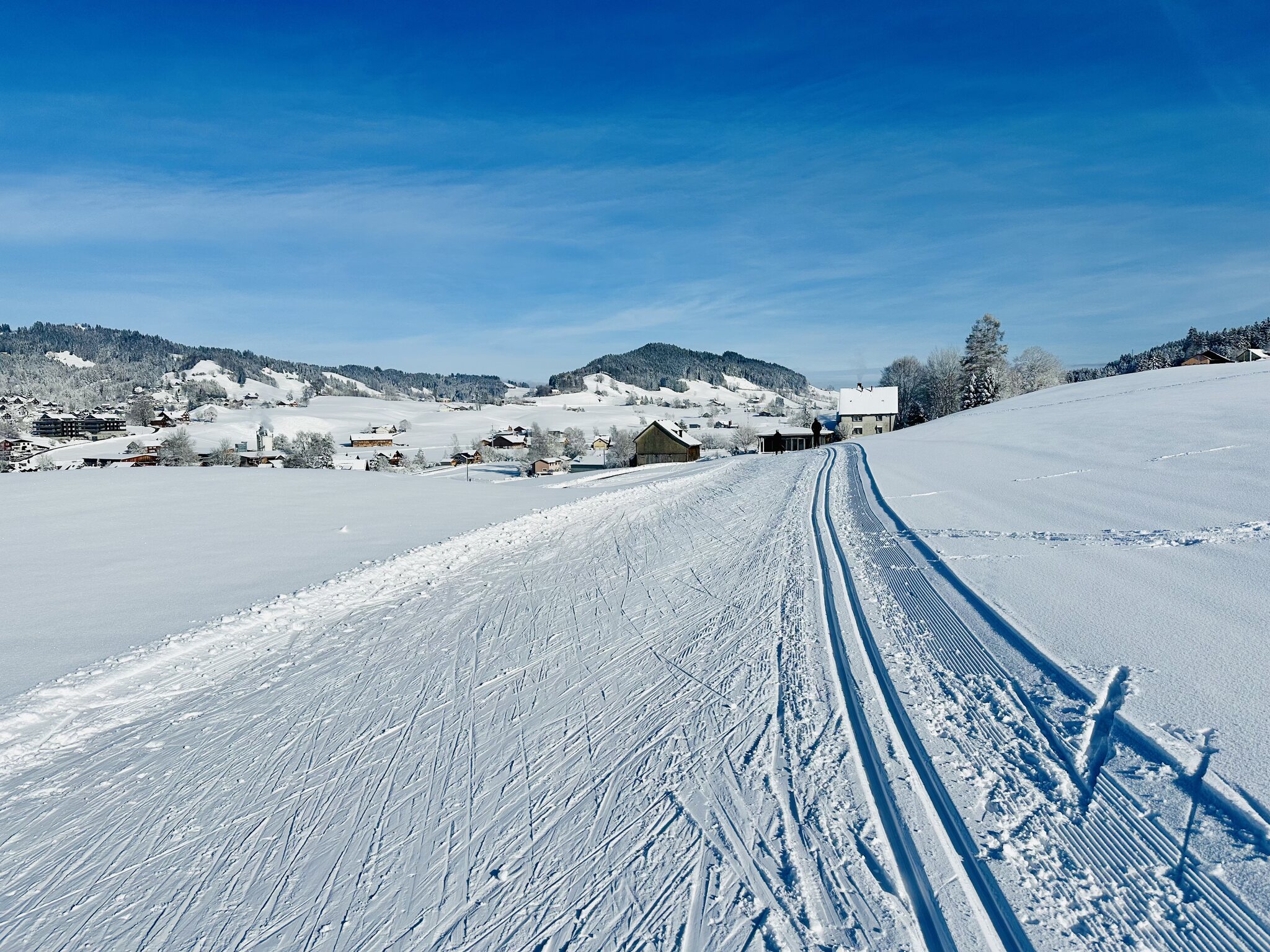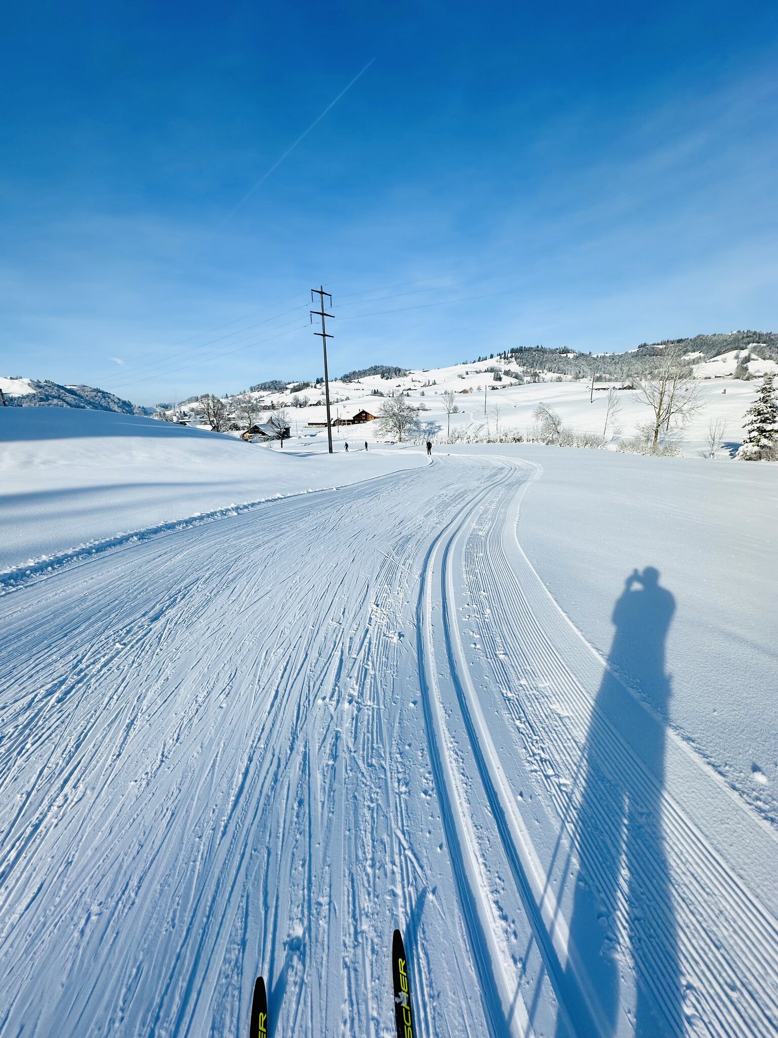 Ich hänge mal hier meinen heutigen Loipentag in Gais an. Das ist ein Wetter war perfekt und auch die Klassischspur so gut wie immer in einem perfekten Zustand. Die Landschaft ist im Appenzell ja sowieso schön. Die heutige Runde hatte 11.5 km und hat richtig Spass gemacht. Irgendwann muss ich aber auf Skating umsteigen.