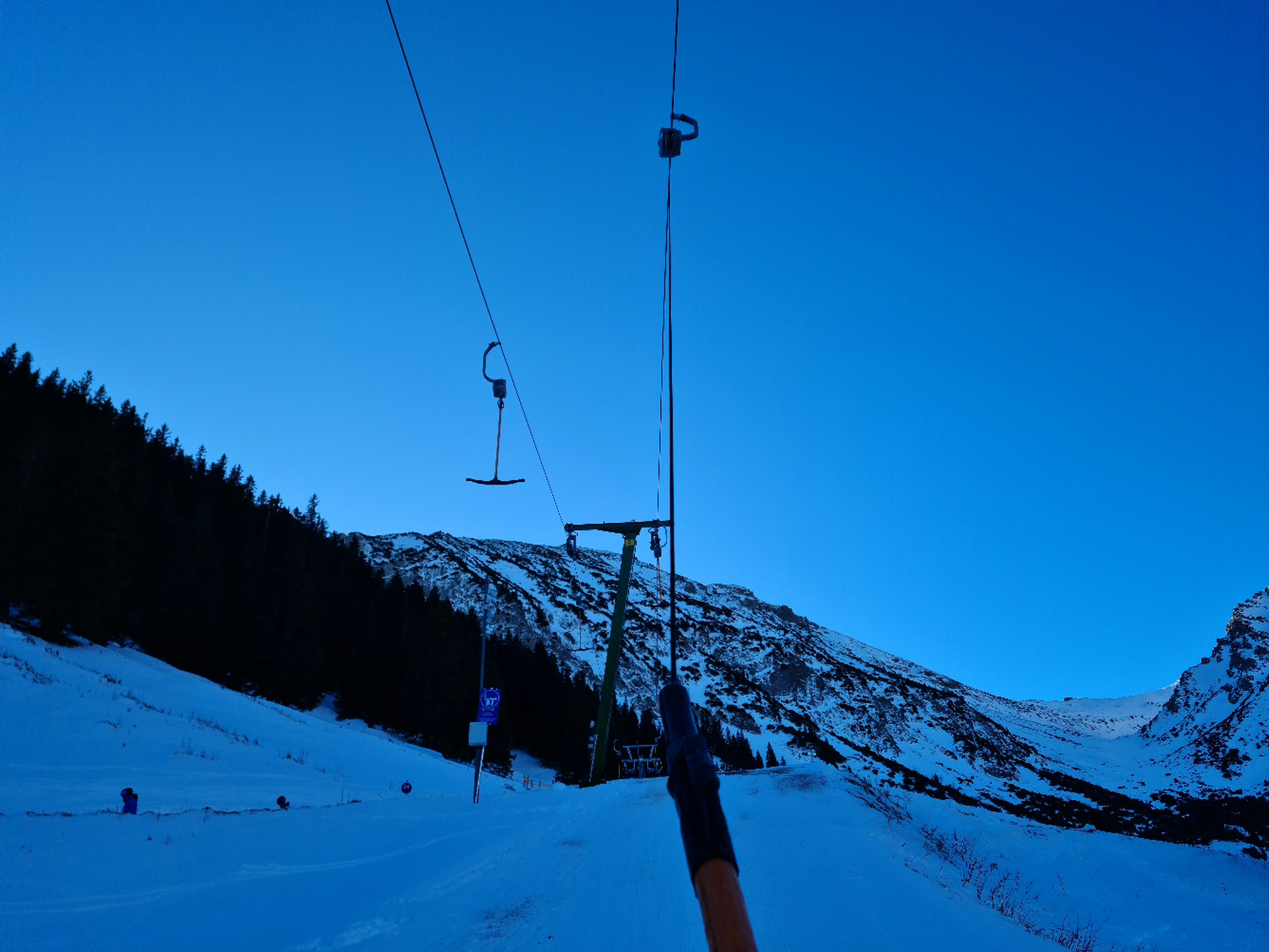 Die Info stammt von einem Einheimischen, der sehr gut vernetzt mit der Bergbahn stammt, ich hoffe sie stimmt. Interessant das auch bis zur alten Bergstation des Schleppliftes präpariert ist. Die alte Umlenkung an der Bergstation steht auch noch.