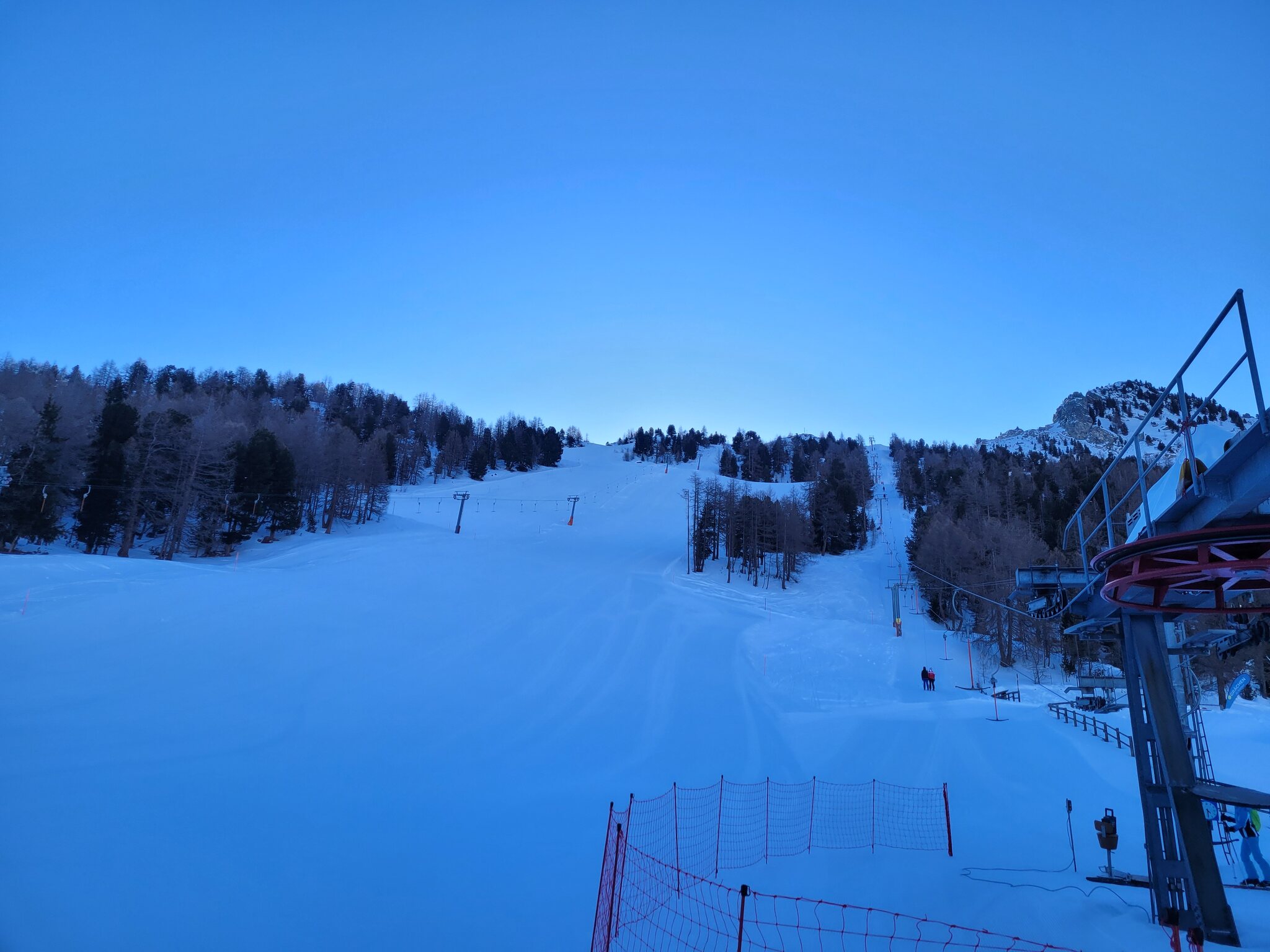 Leider meine einzige Aufnahme der meiner Meinung nach besten Piste - der Talabfahrt. Durchwegs unterhaltsam trassiert und lädt zum schnellen Fahren ein.