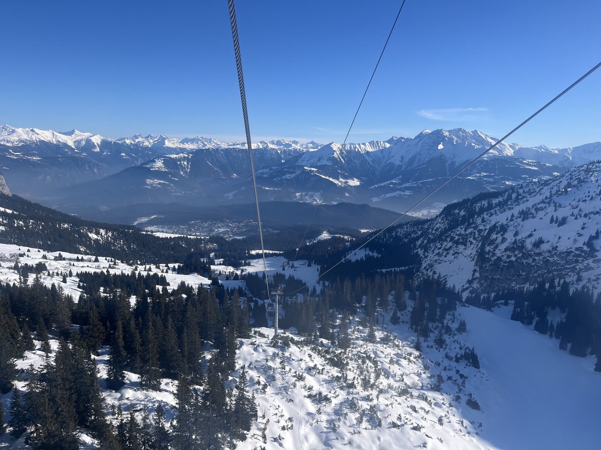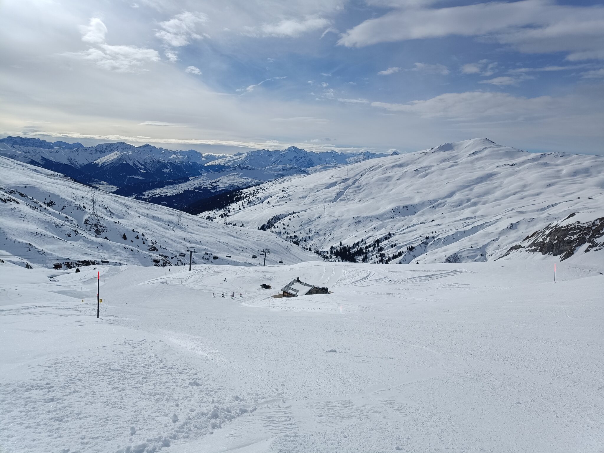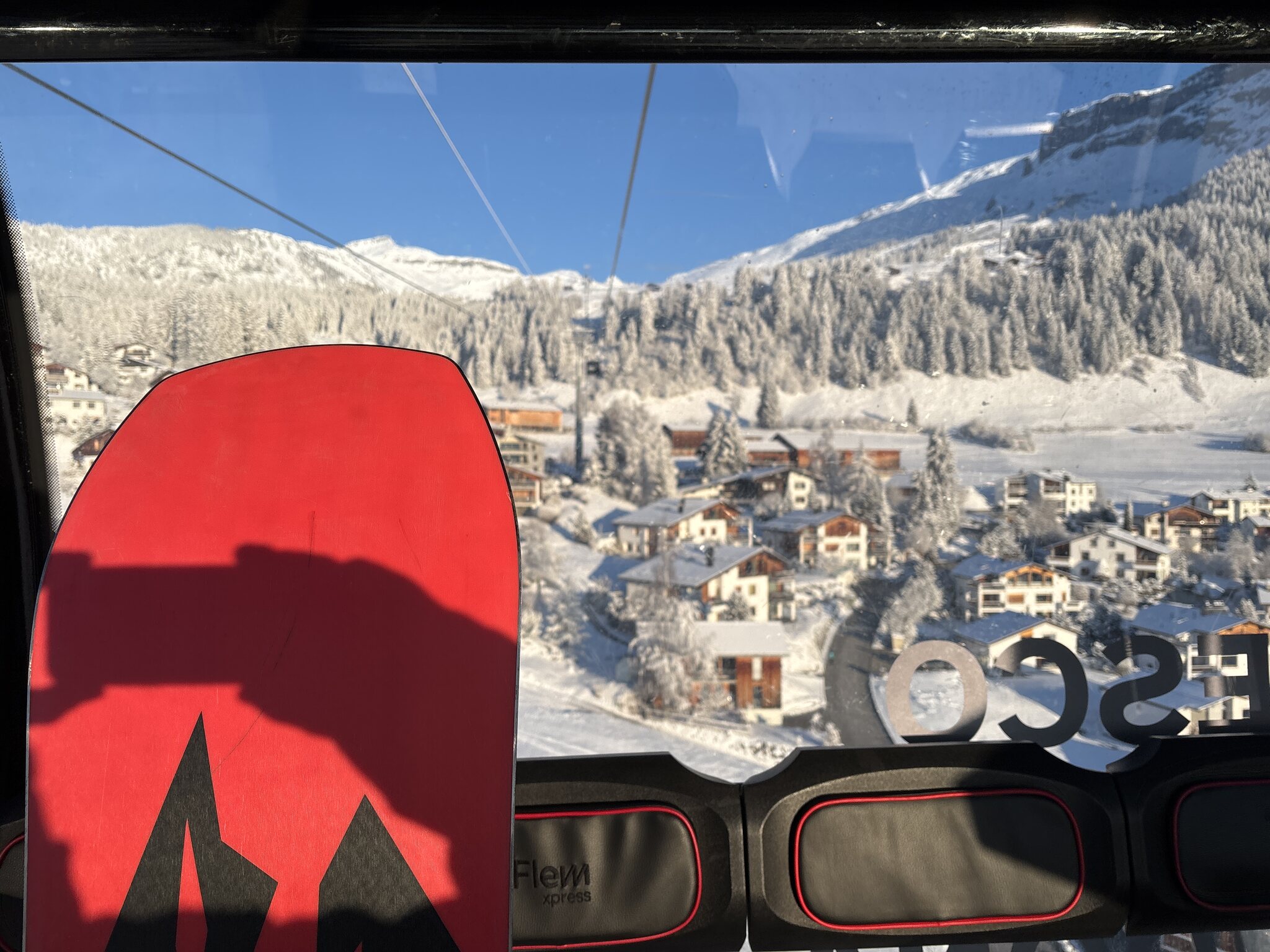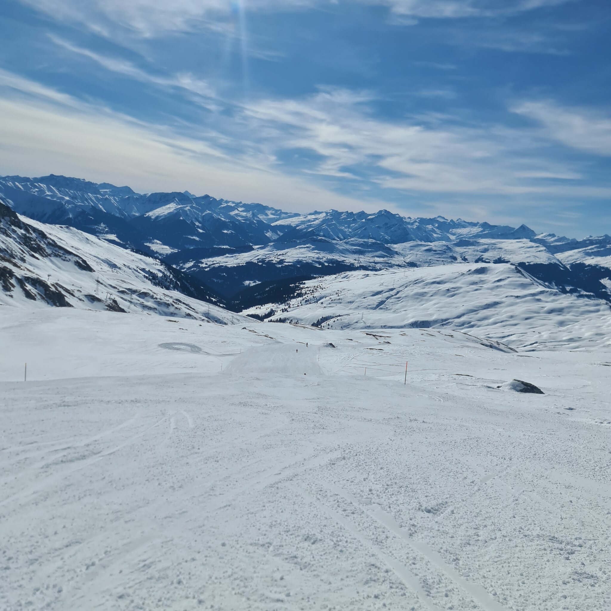 Nach 6 wiederum problemlosen FLEX-Fahrten wechsle ich zur 13. Ein Traum. Hier sind alle Pisten viel besser als gestern am Jakobshorn. Hingegen muss ich an Mutta und LaSiala mehr anstehen als gestern jemals. Edit 14.30 Uhr: