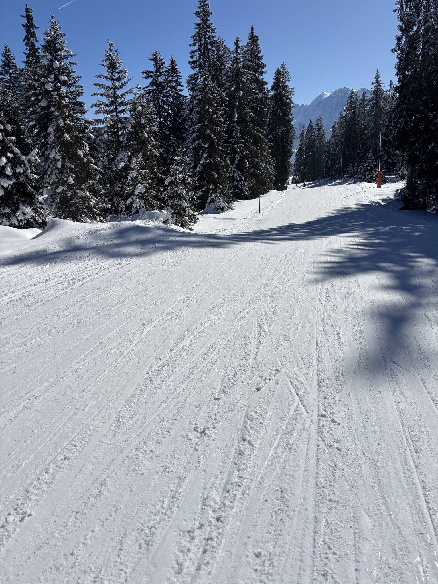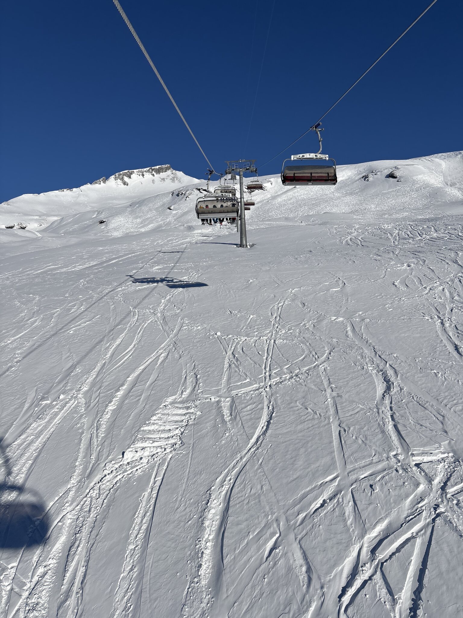 Obwohl ich ziemlich „plem“ bin, bin ich immer noch unterbruchslos dran. Auch auf der 41. Sattel tip top. Wie alle Pisten. Die hängende 40 (ja, Estiby!) ist komplett leer. Seit Mittag gibt es auch nirgends mehr Wartezeiten. Und auch die Pulver macht Spass! Edit 15.45 Uhr: