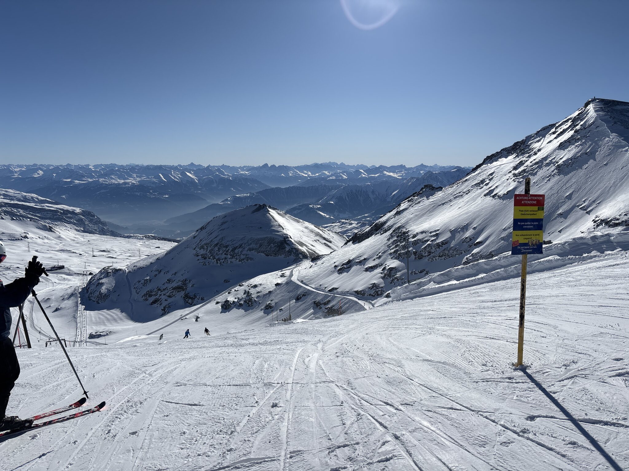 Dieses Jahr gibts einfach nur Sonne. Sonne, Sonne. Schnee wäre aber herzlich willkommen. Ein weitere Top Tag. Pisten weiterhin super Zustand. Sattel nach dem steinigen Einstieg am Mittwoch jetzt wieder perfekt. Da wurde tolle Arbeit geleistet. Ebenso Siala Bergstation...