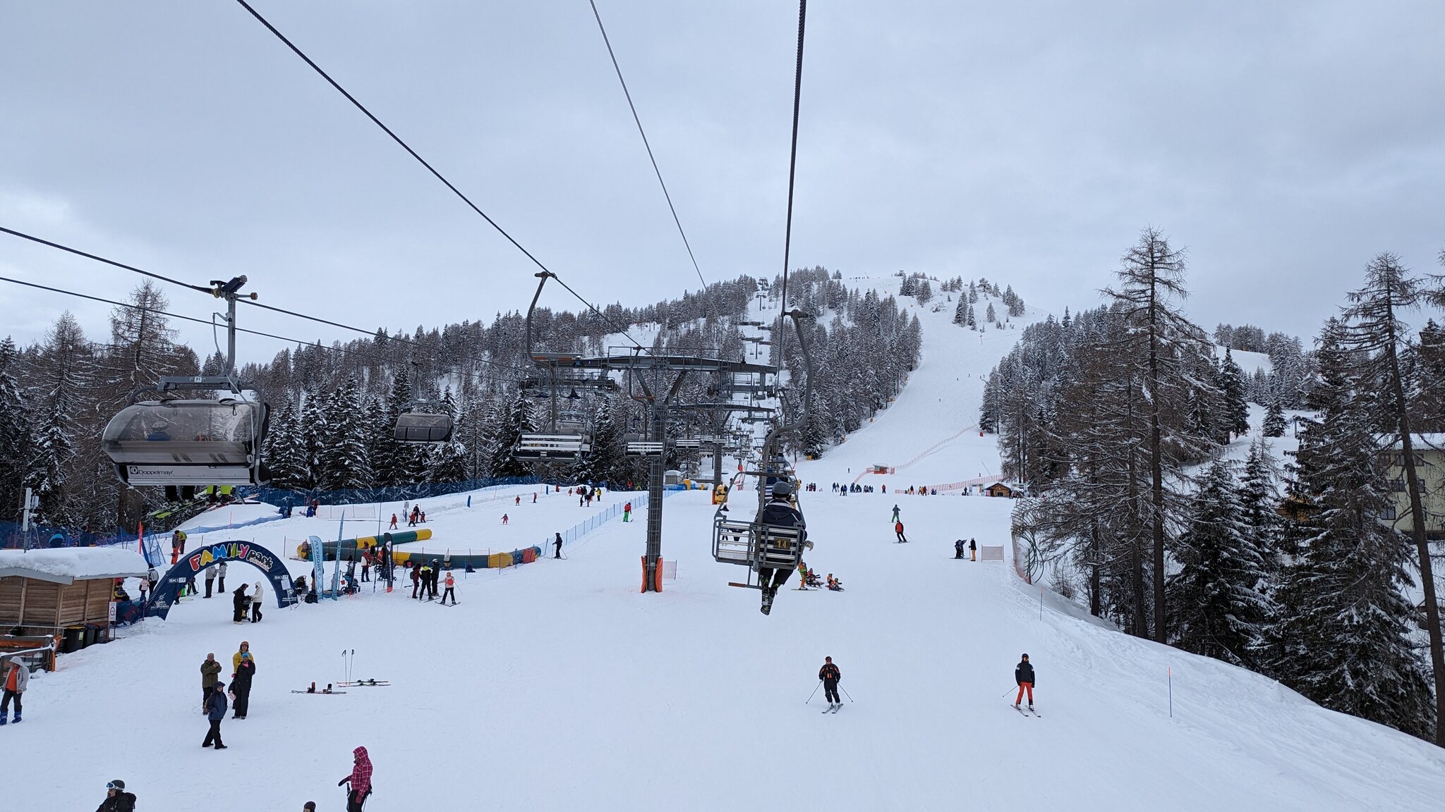 Vermutlich alles Anfänger. Der 2er erschliesst das Übunsgelände. Der 4er geht viel weiter hoch und es wäre gar nicht gut, wenn der defekt wäre. Dann gäbe es keine Verbindung mehr zum restlichen Skigebiet.