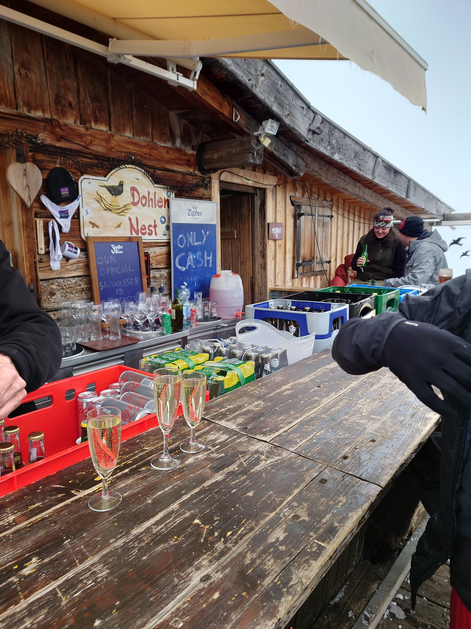 An der Talstation gab es Gutscheine, mit denen man an allen Hütten was bekommen kann. Die waren gratis - dann gibts halt auch mal Prosecco auf der Hütte
