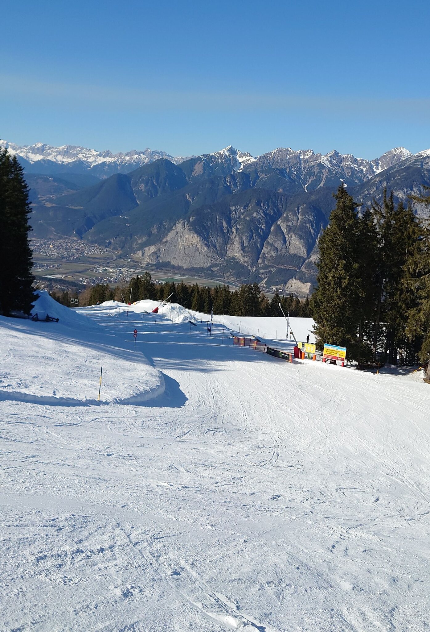 Heute ein kurzer Nachmittagsbesuch an der Mutterer Alm. Pisten sind recht sulzig, aber beide Talabfahrten sind