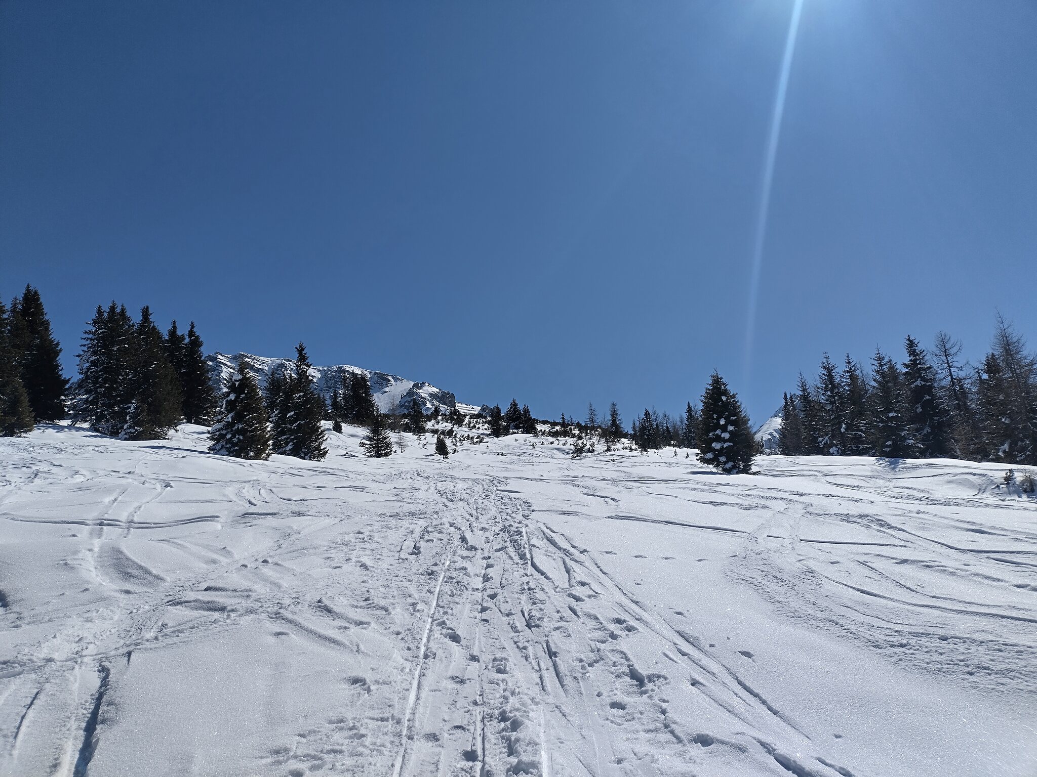 Eigentlich ja gar nicht mein Fall, aber ja wir sind als Pistenskitour aufgestiegen. Bei dem Wetter und trotzdem vielen Leuten macht das Pistenfahren ja eh keinen Spaß...