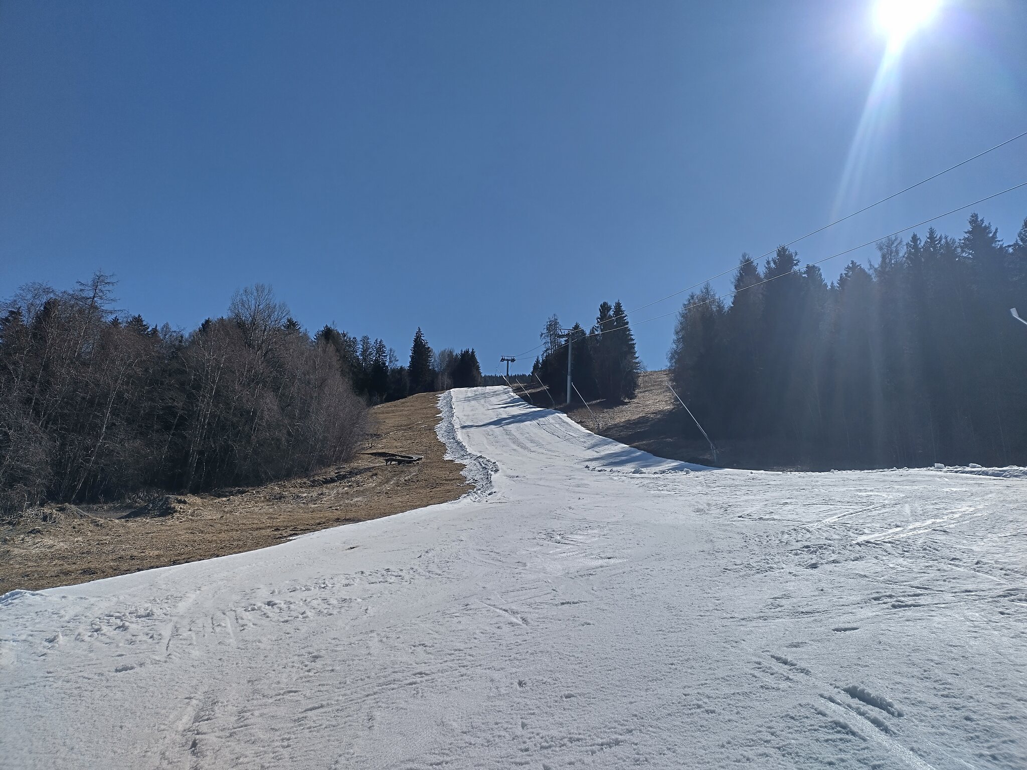 Auch die Götzner Abfahrt hat obwohl seit Montag geschlossen noch eine solide Schneelage bis ins Tal:
