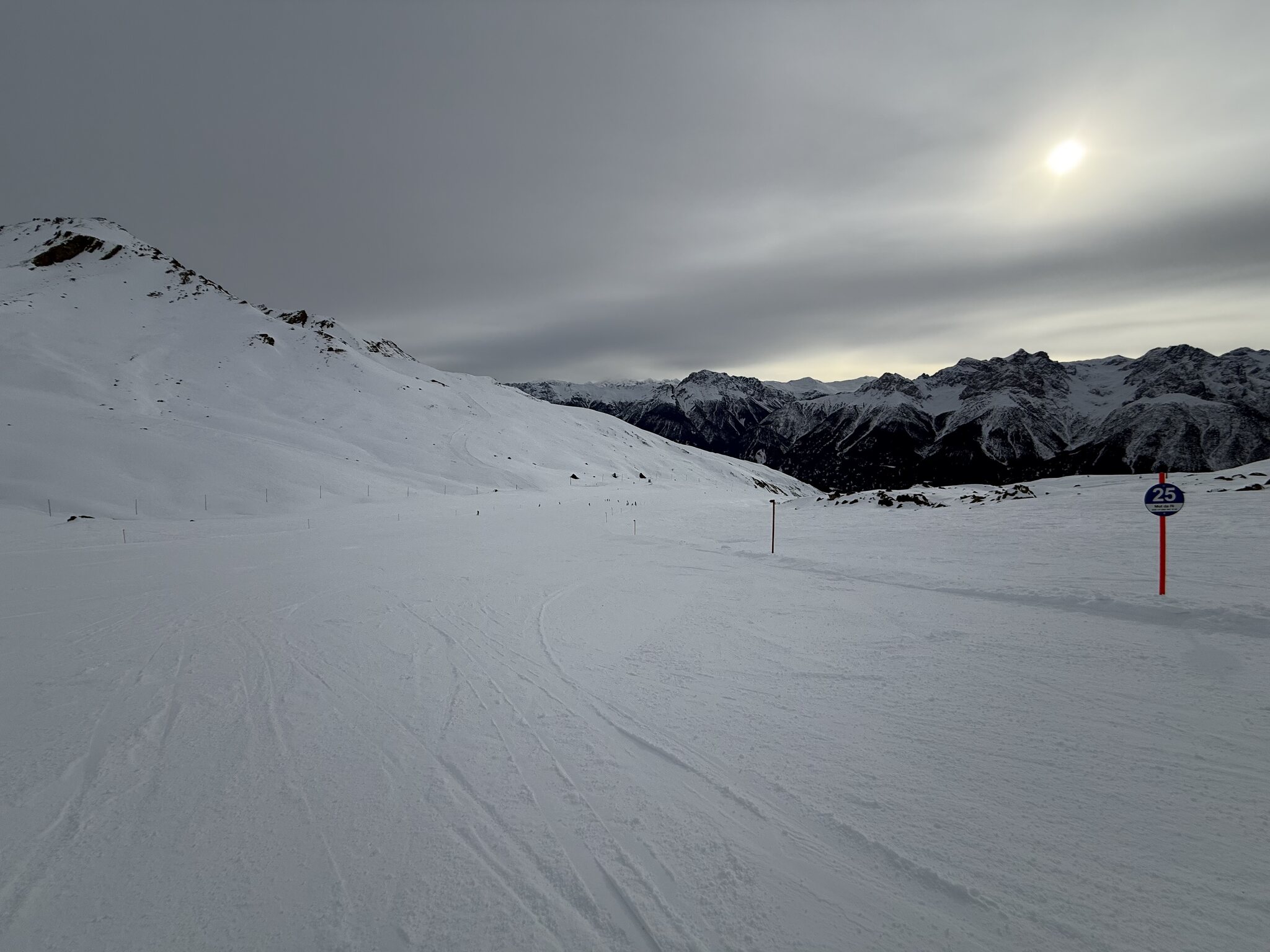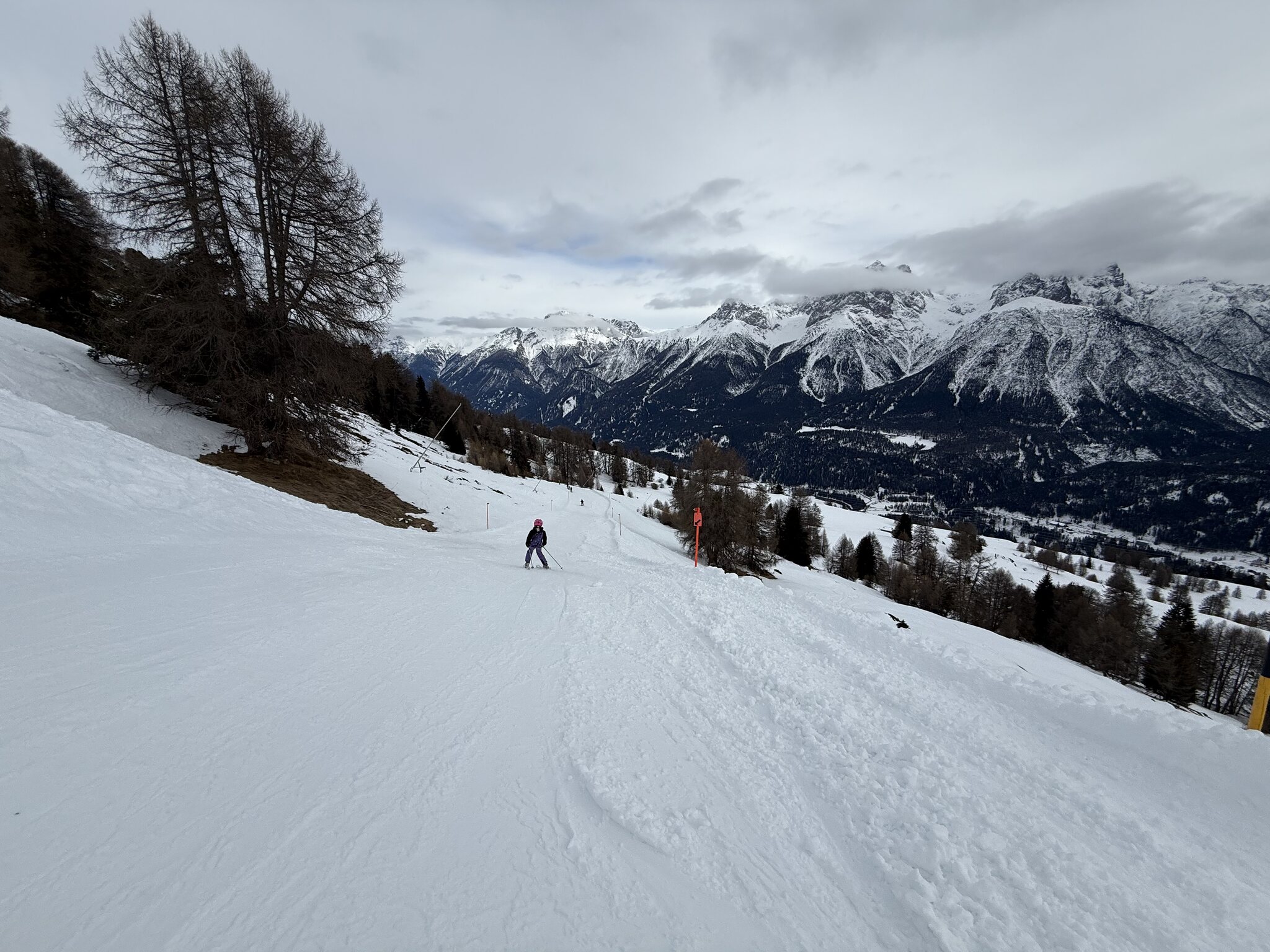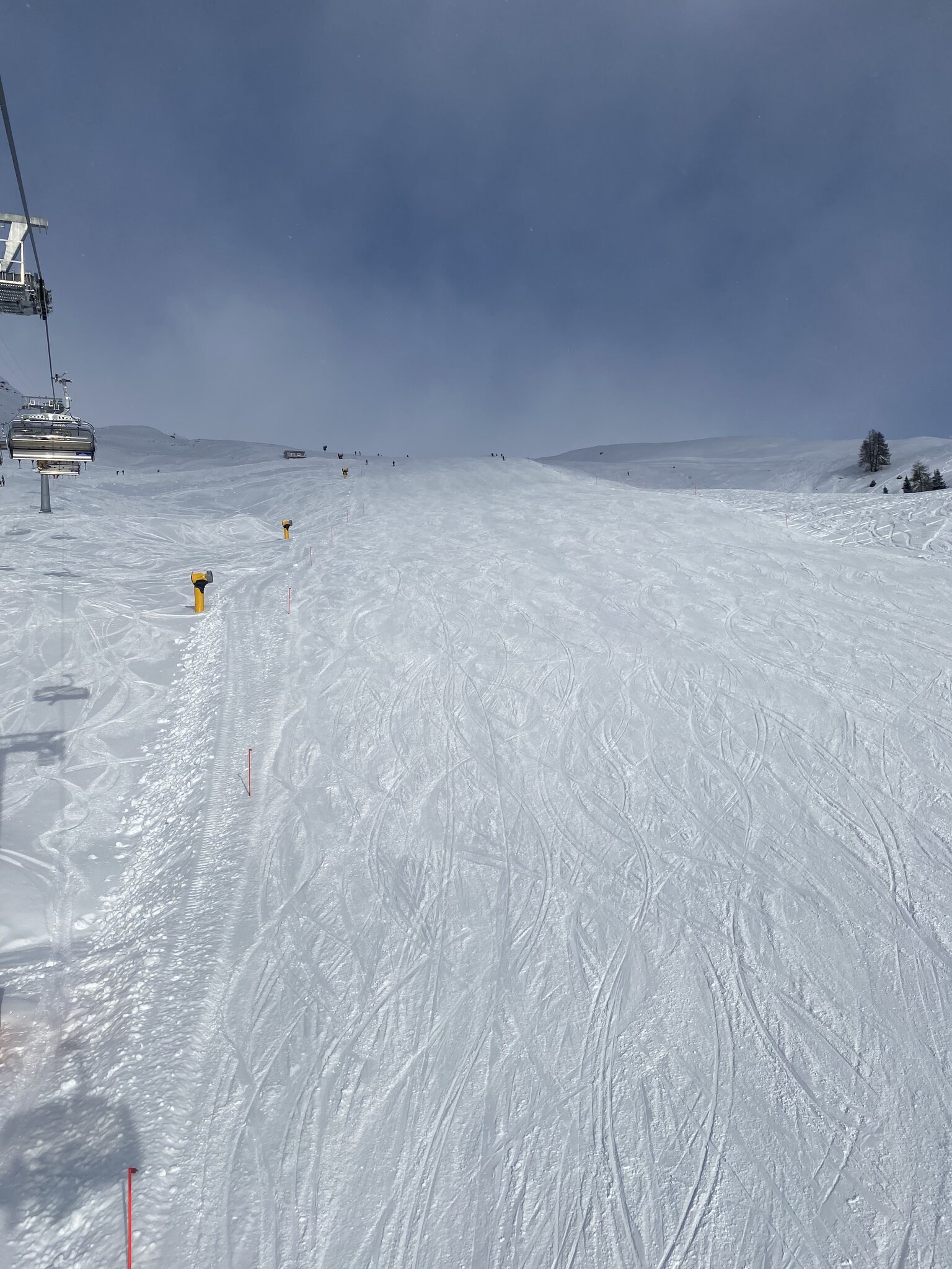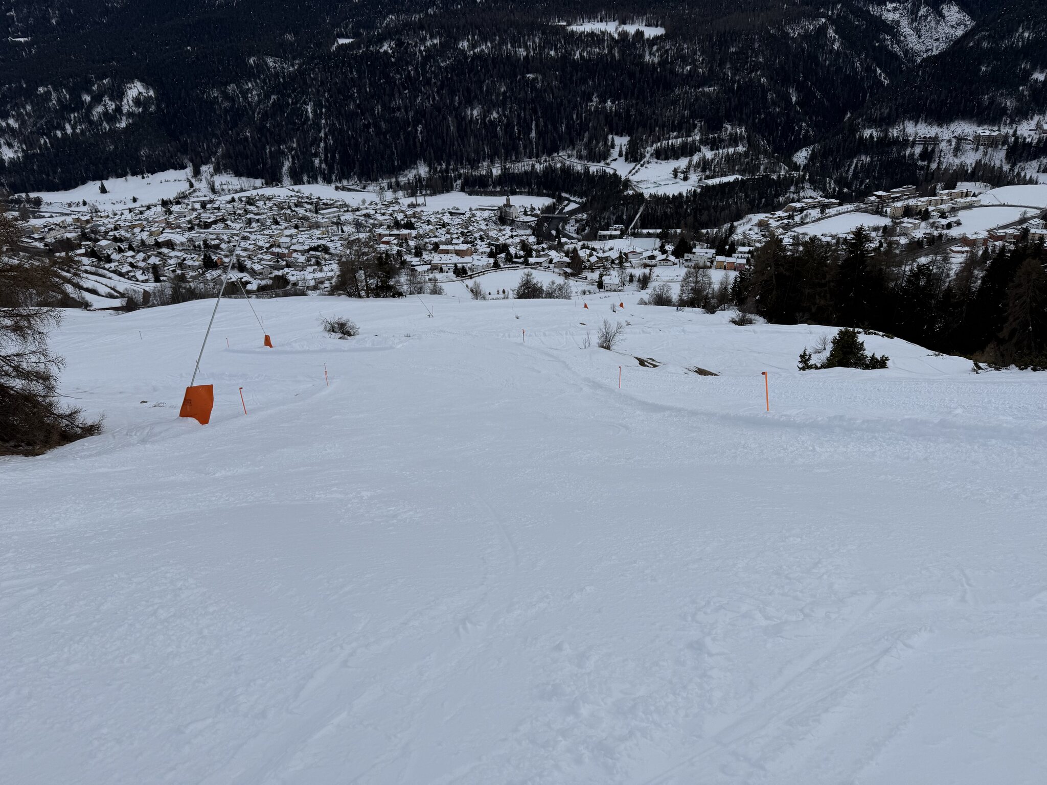 Da mein Skitag abrupt abgebrochen werden musste, fuhr ich von Ftan hoch und machte direkt die Talabfahrt, die genügend Schnee hatte und sehr gut ging.