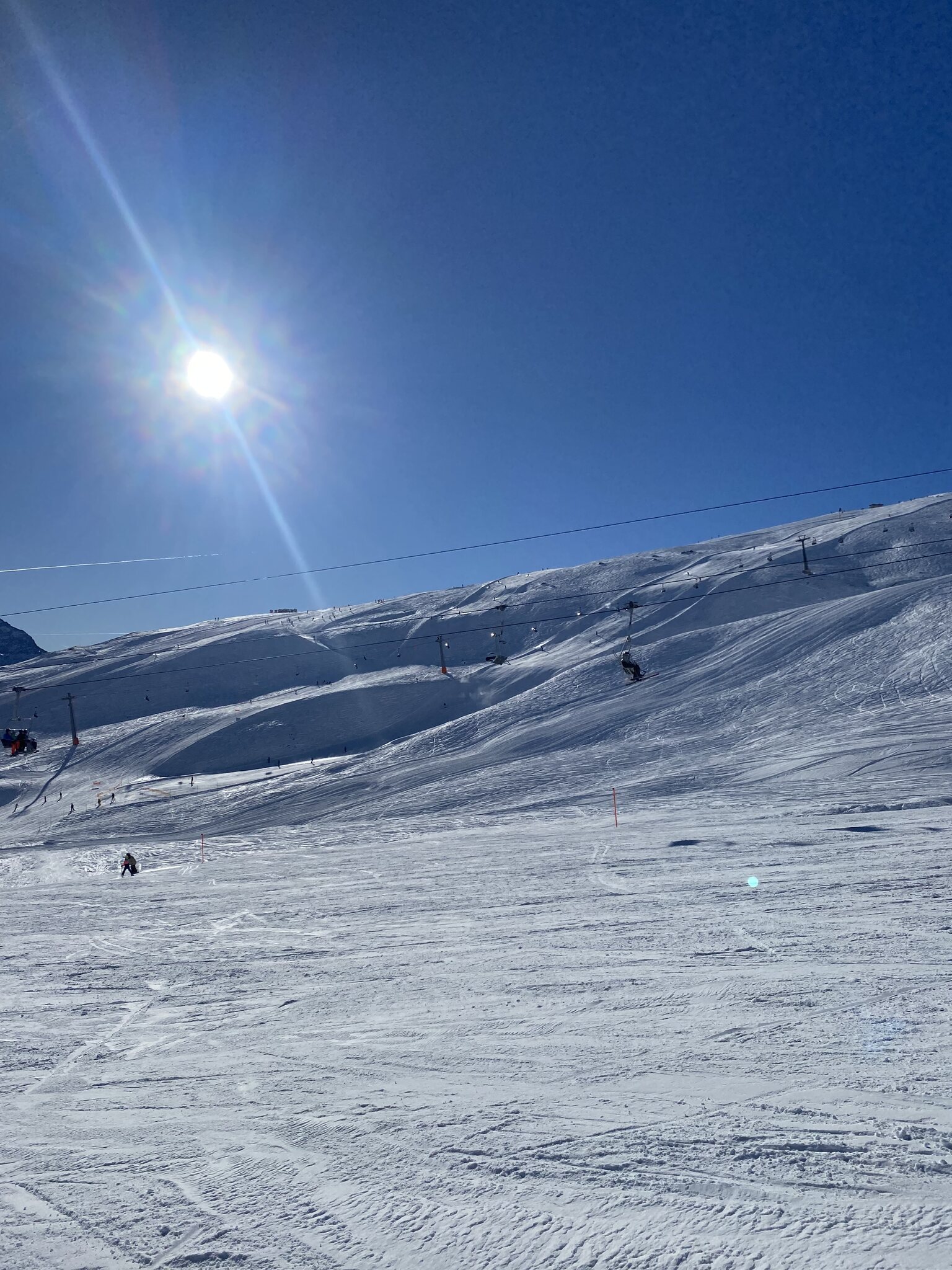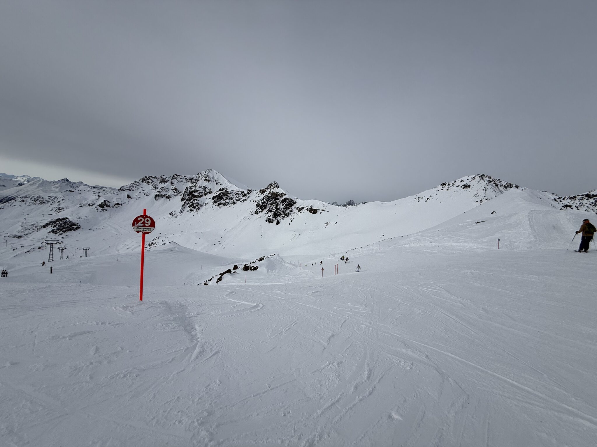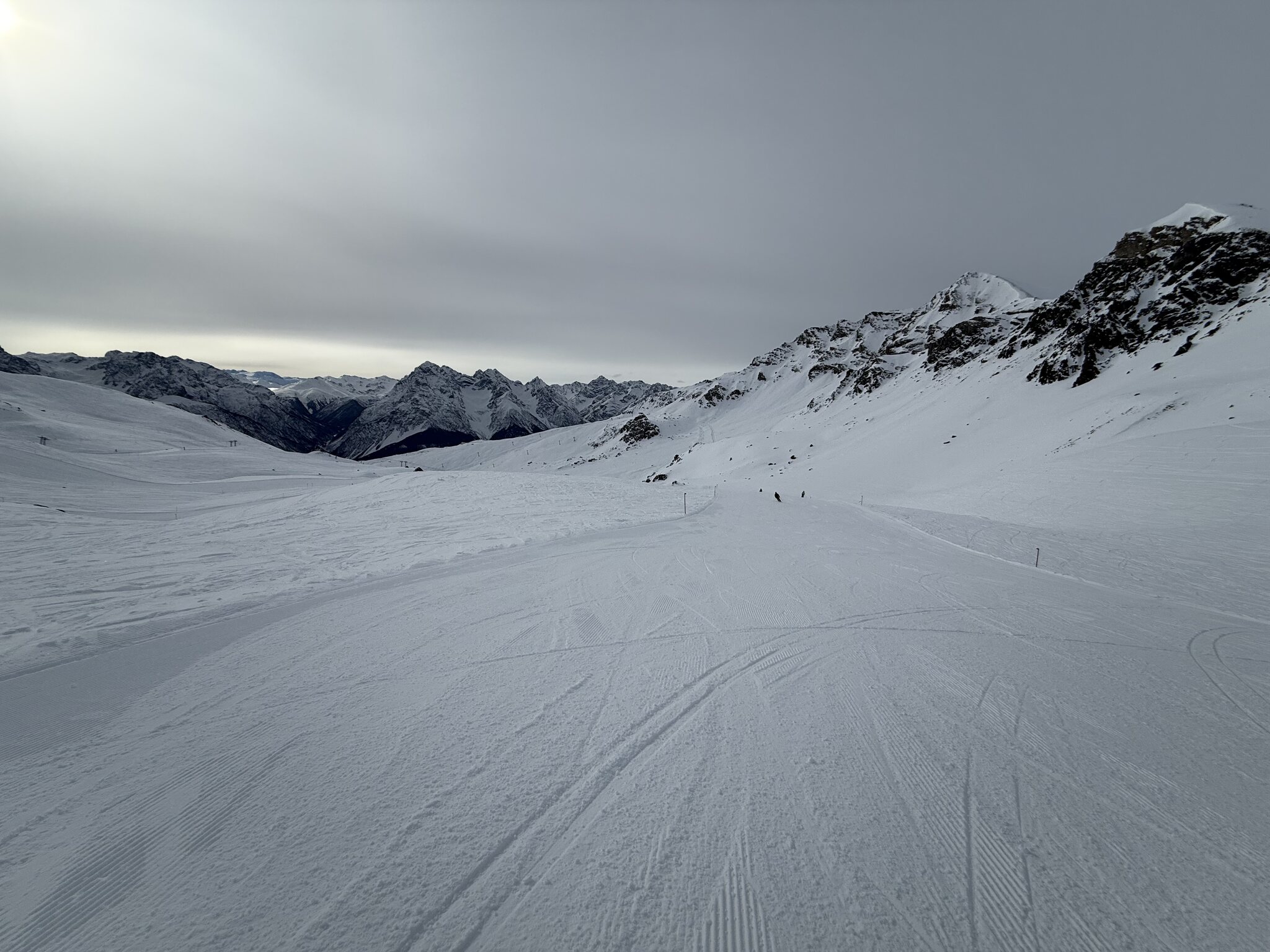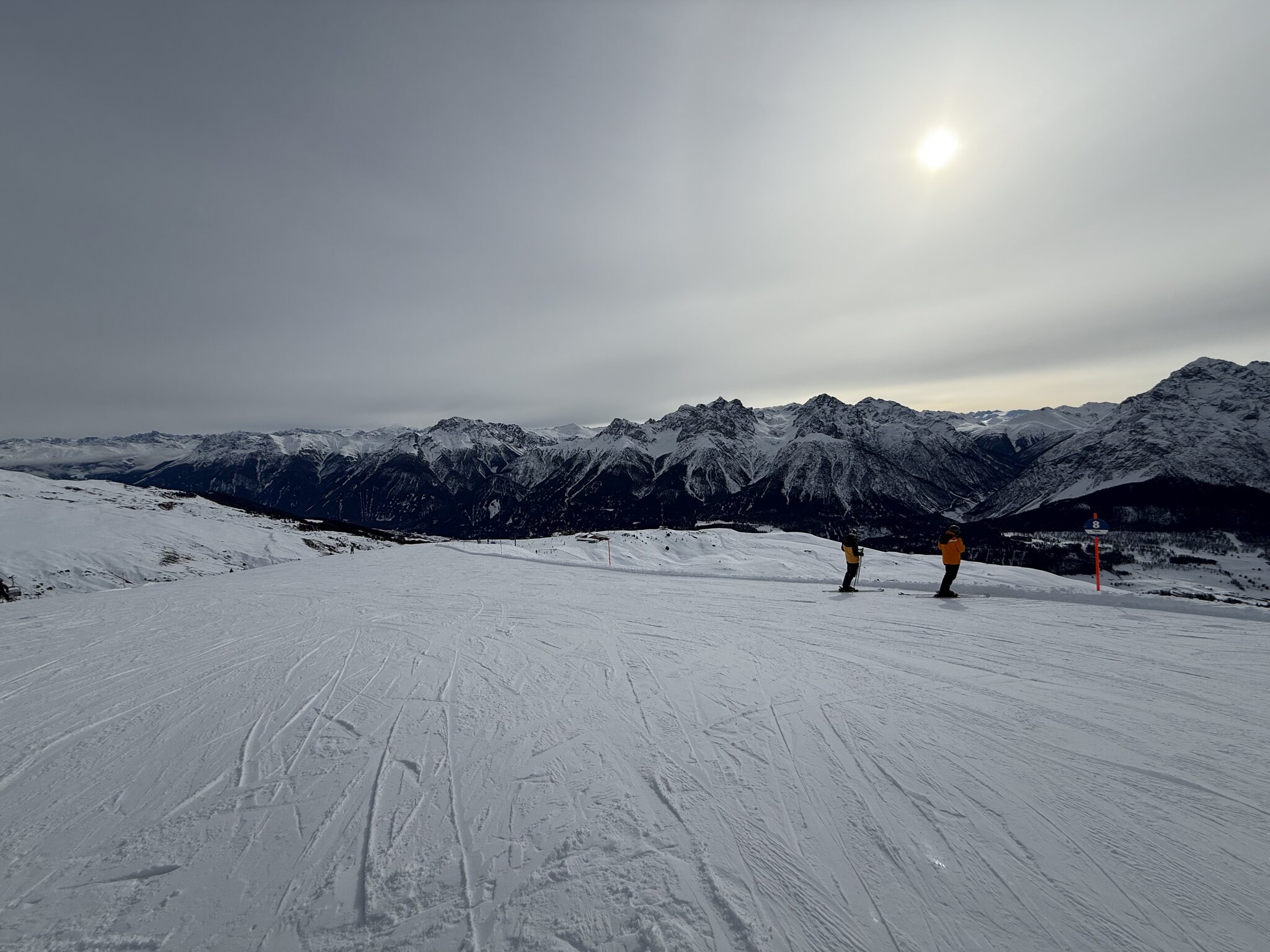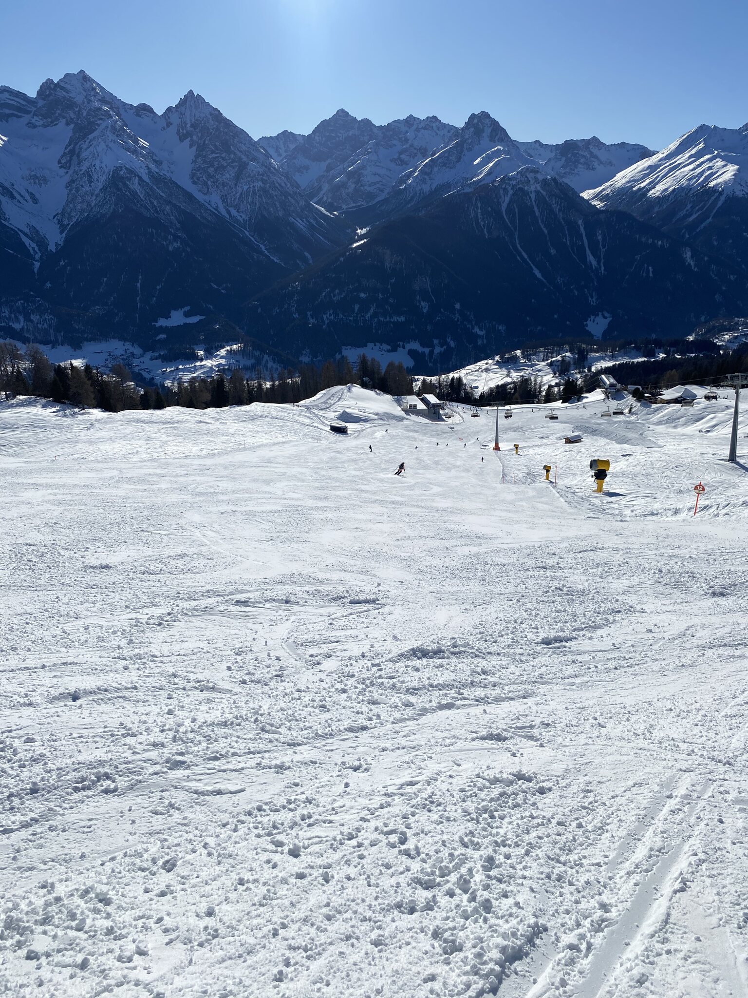 Da mein Skitag abrupt abgebrochen werden musste, fuhr ich von Ftan hoch und machte direkt die Talabfahrt, die genügend Schnee hatte und sehr gut ging.