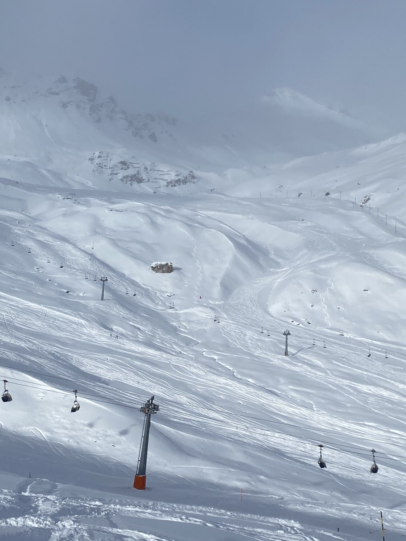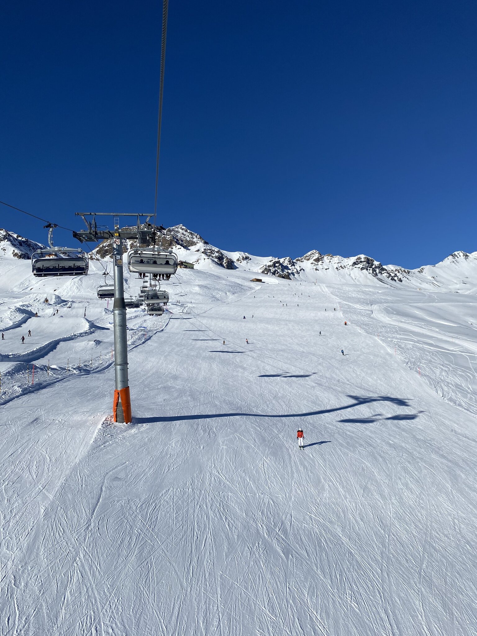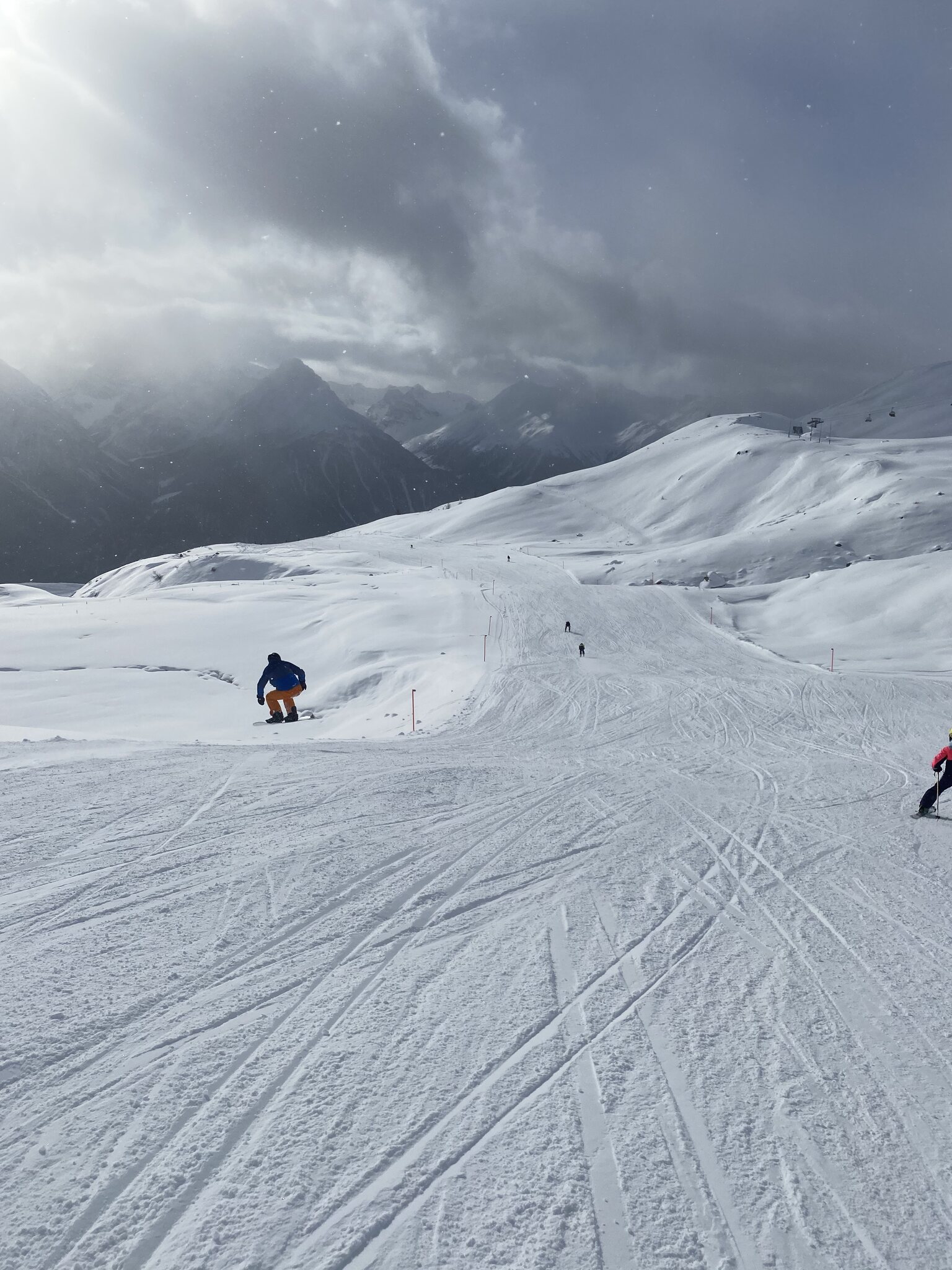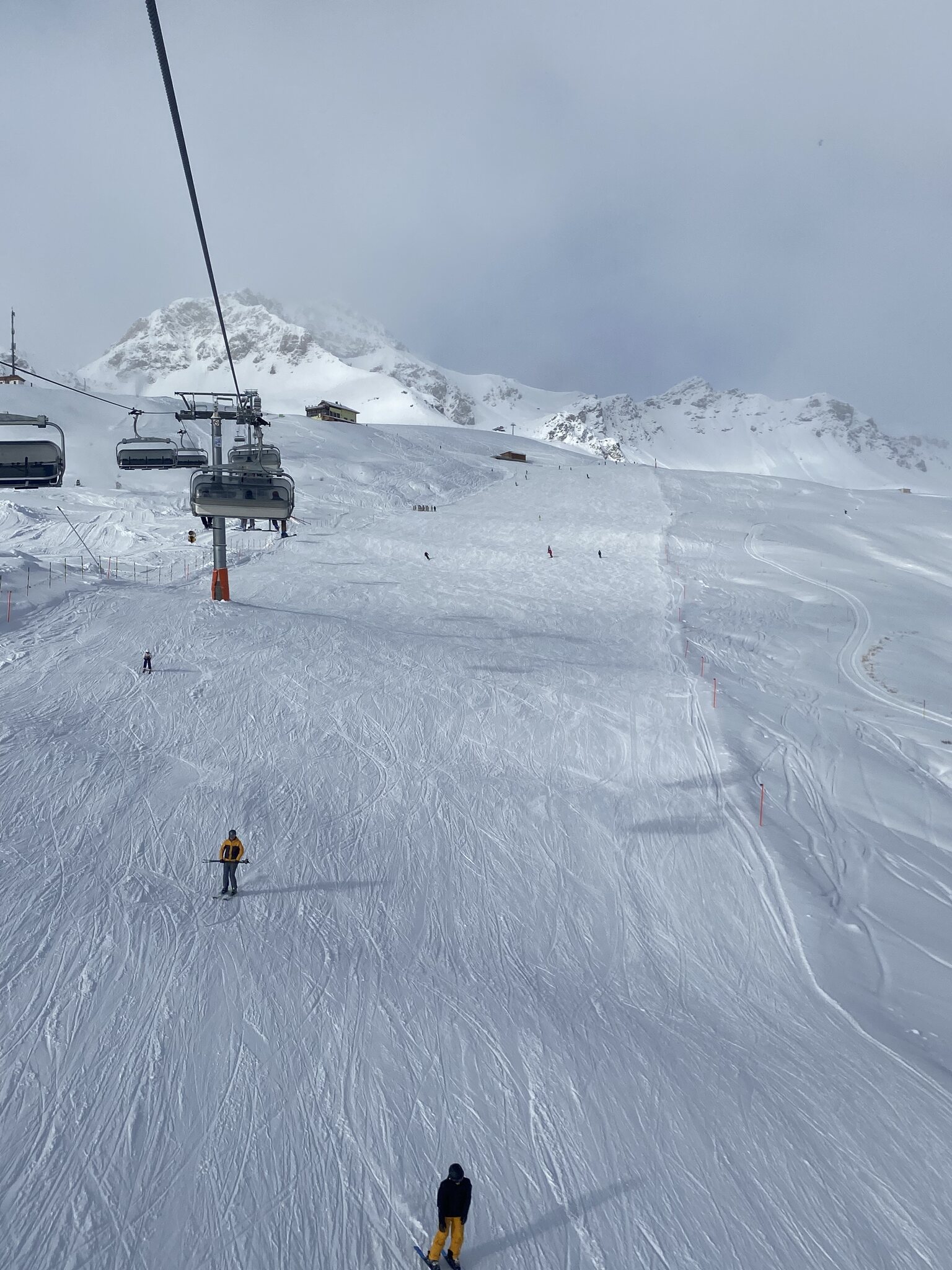 Da mein Skitag abrupt abgebrochen werden musste, fuhr ich von Ftan hoch und machte direkt die Talabfahrt, die genügend Schnee hatte und sehr gut ging.