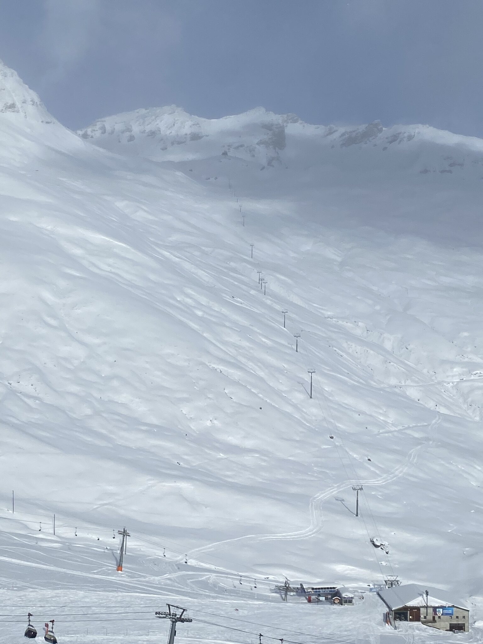 Leider hatte die 8er EUB einen Defekt, wegen was wir eine halbe stunde warten mussten im Tal. Nun sind wir endlich im Skigebiet. Die Pisten haben heute sehr gut durchgehalten. Die Talabfahrt war um 16 Uhr natürlich hinüber, in den oberen Etagen konnte man aber ganztägig pulvrige Pisten finden (vor allem an den Schleppliften). Der Andrang war heute minimal geringer als gestern (so unser Eindruck).