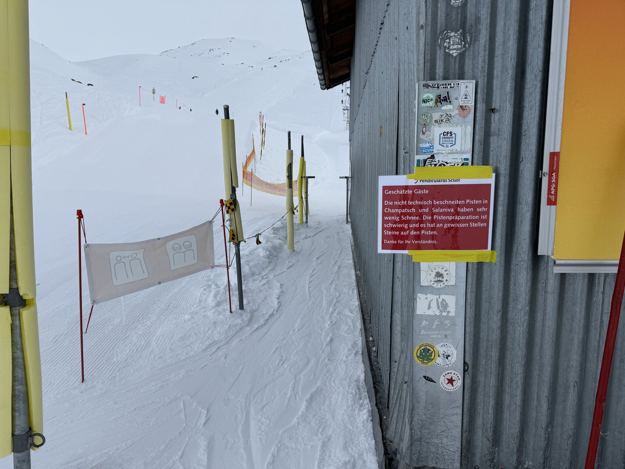 Vor den unbeschneiten Pisten wird gewarnt, wir sind nur Champatsch einmal gefahren.