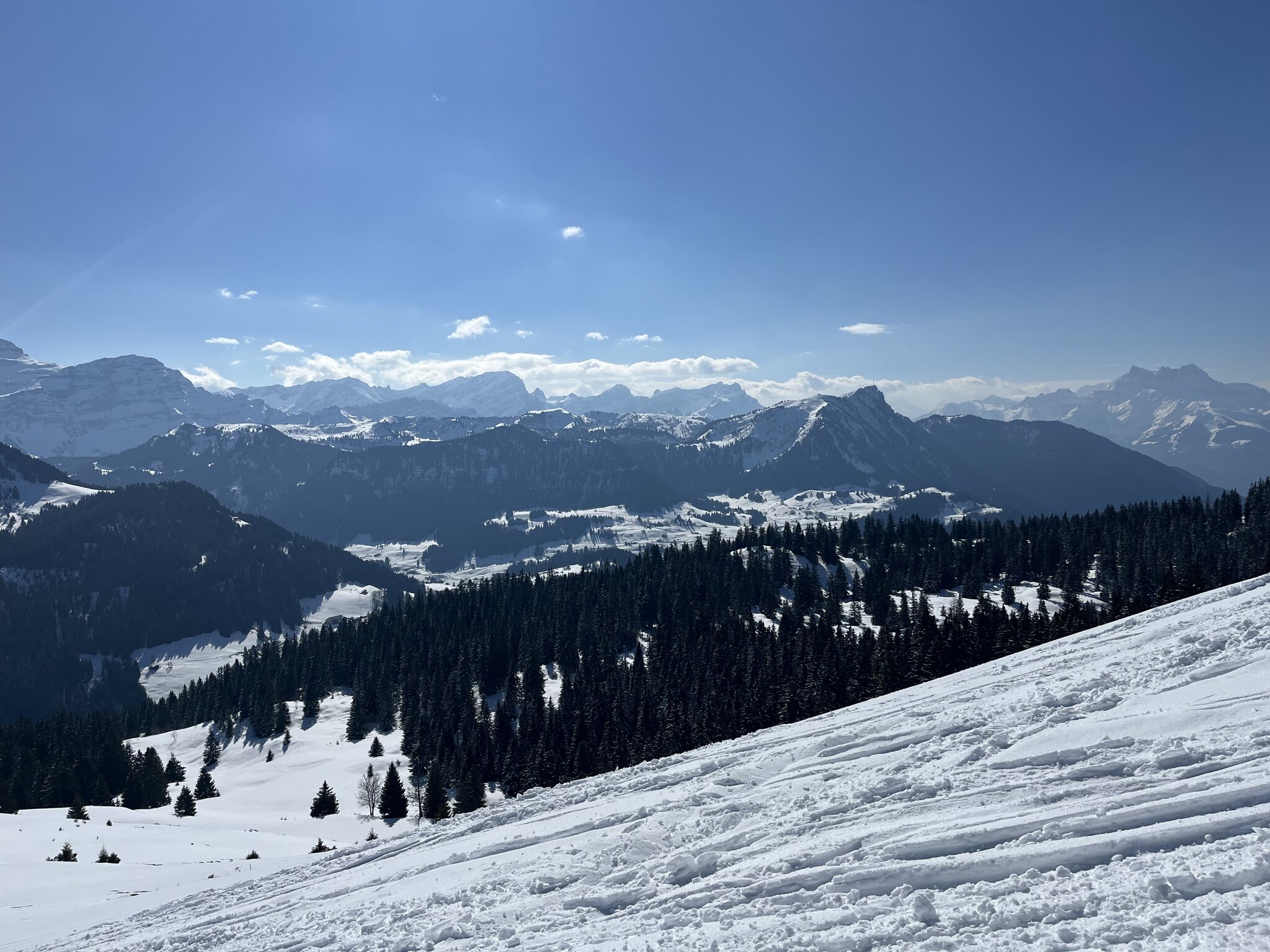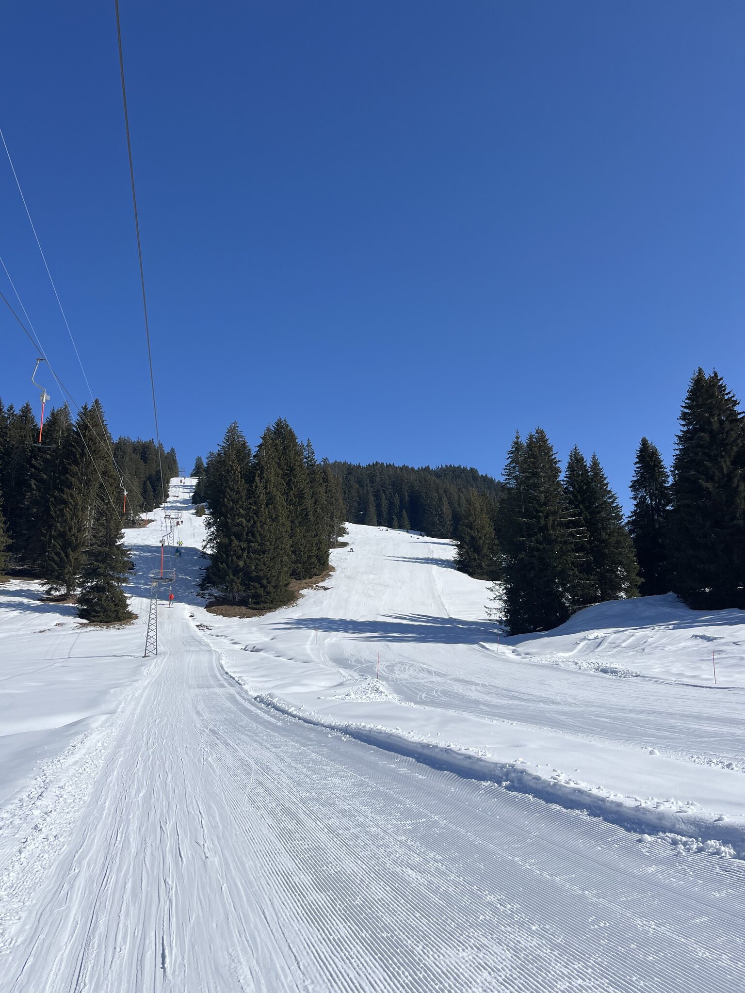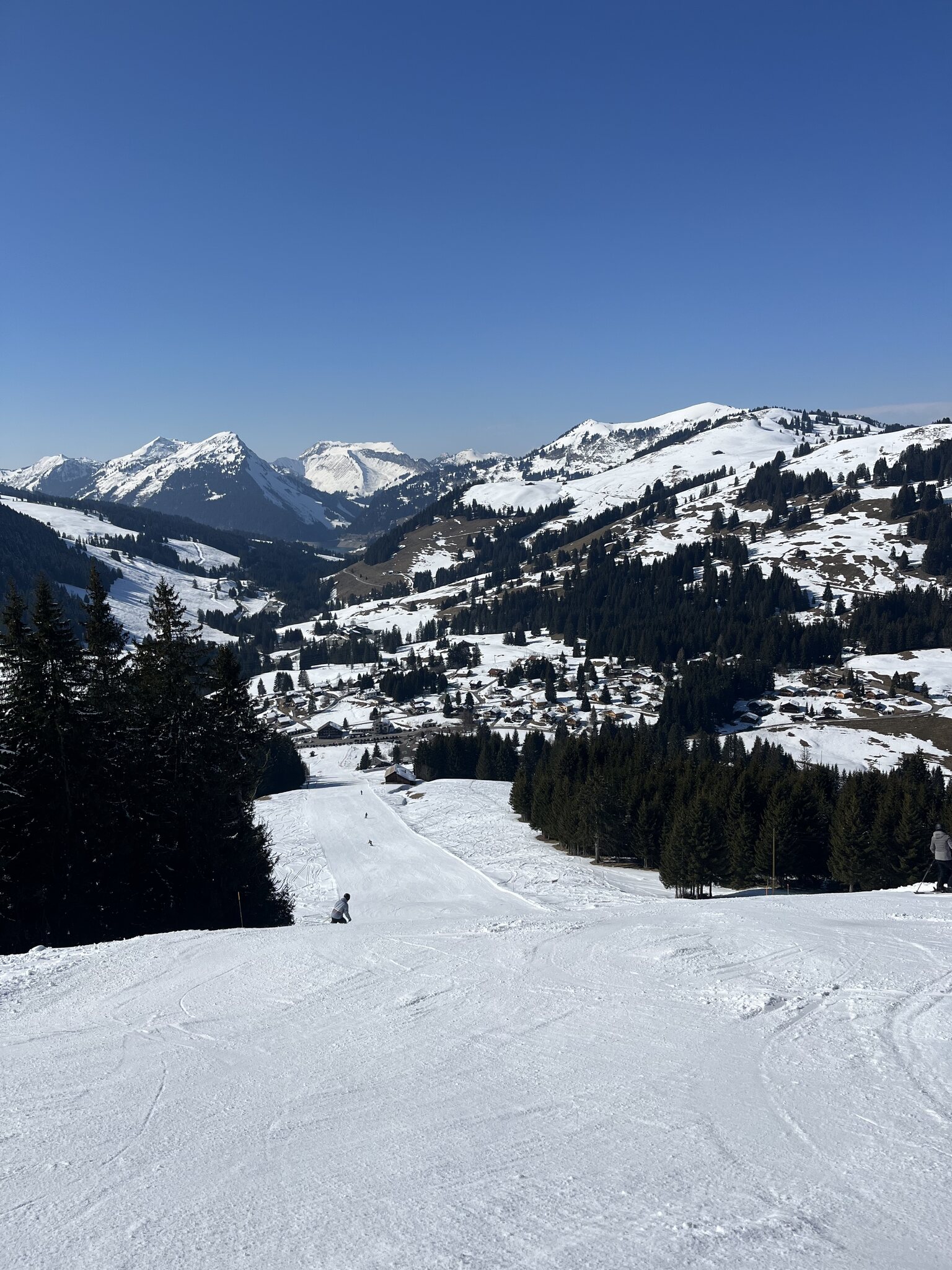 Ich habe in Leysin angefangen. Am Anfang waren die Pisten noch recht leer, aber kurz darauf füllte es sich. An den Liften gibt es immer noch so gut wie keine Wartezeiten, aber die meisten Lifte waren nicht wirklich breit, so dass ich mich nicht so wohl fühlte.