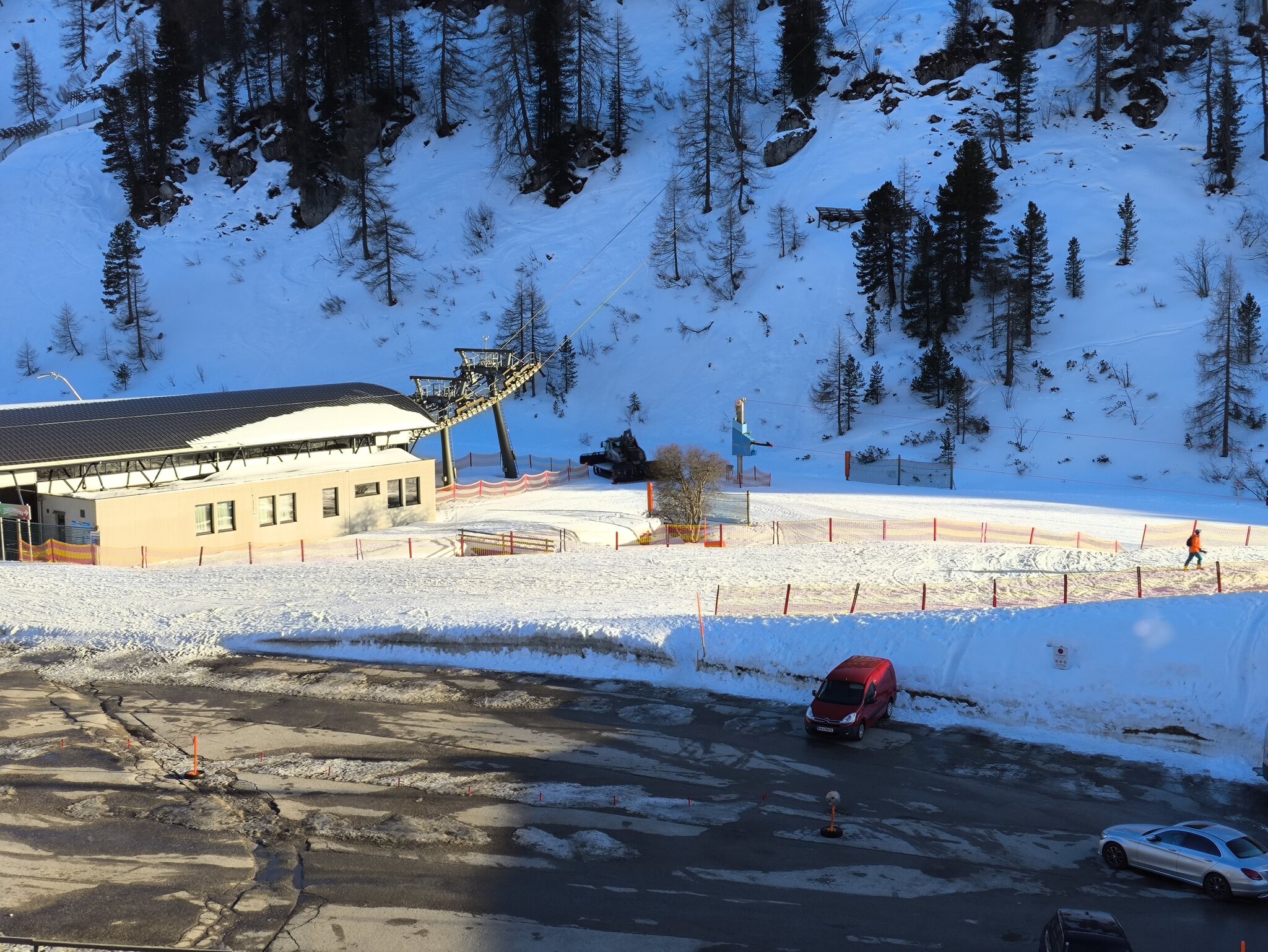 Schöne Bahn, die aber gestern irgendwelche Probleme hatte und immer wieder stehen blieb, auch 5 x pro Bergfahrt. Deshalb mit kurzen Wartezeiten an der Talstation. Die 5b schaut auch schon fast fertig aus und wurde fleissig von Tourengehern benutzt: