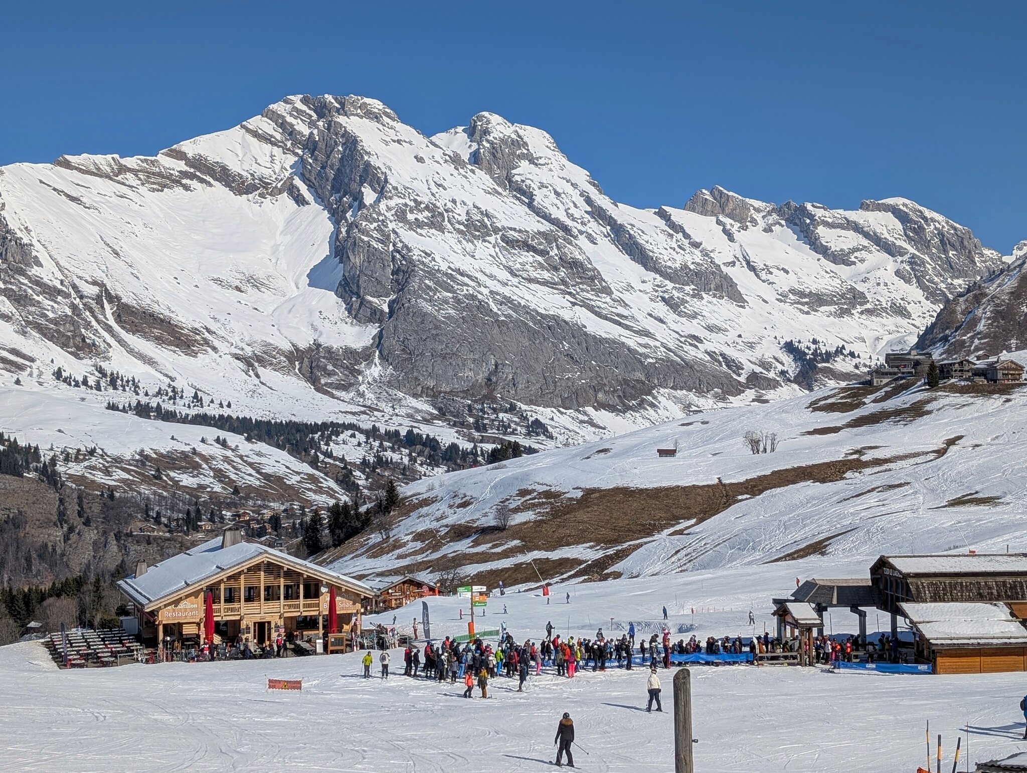 Trais Fluors ist für mich das Paradebeispiel, wie man 100% Füllungsgrad erreicht. Links steht ein Mitarbeiter, der die Normalos nach links dirigiert, rechts ein Mitarbeiter, der den Singles zuwinkt, wieviele kommen sollen, da es dort kein Törli hat. Das klappt perfekt.