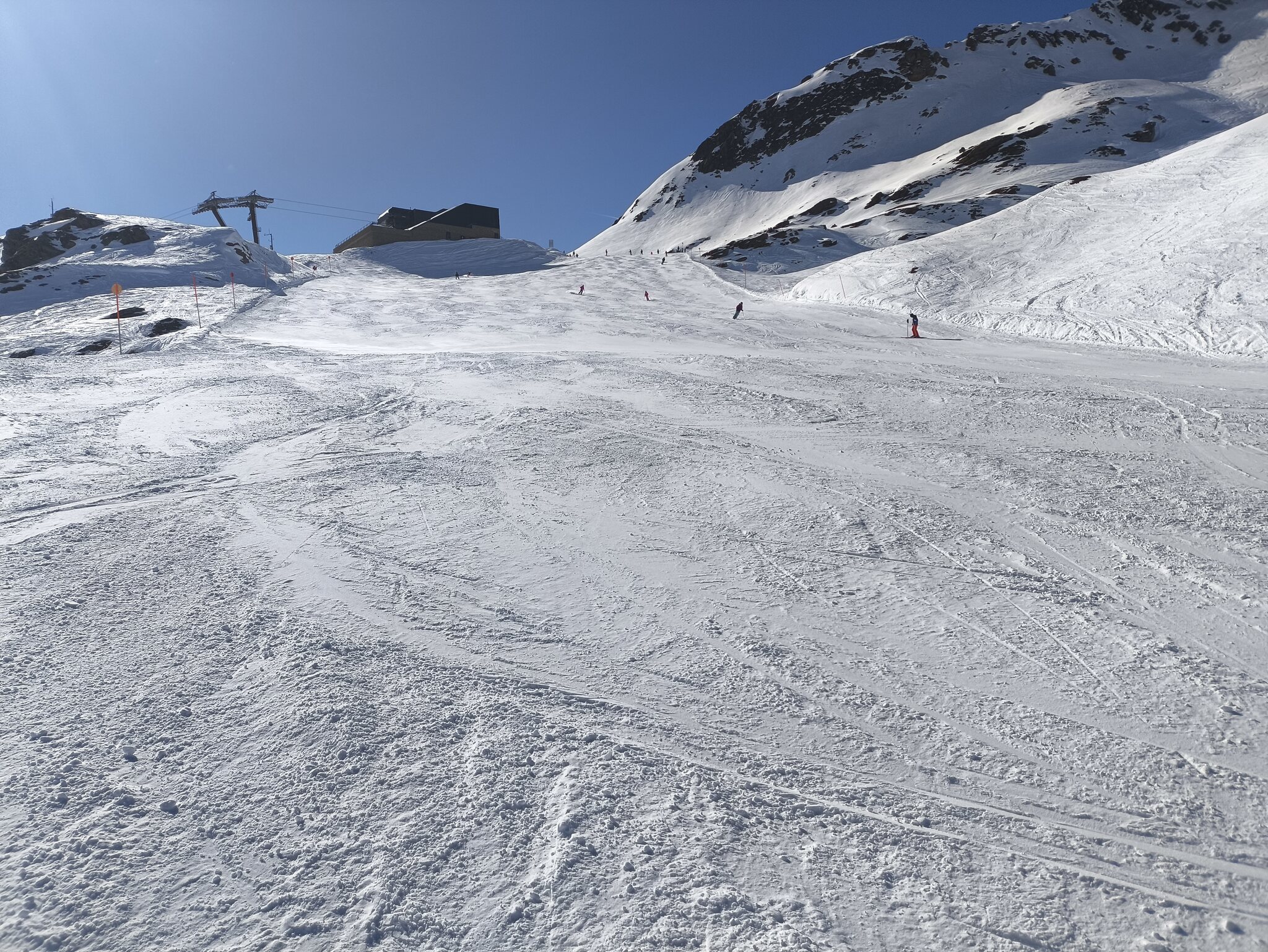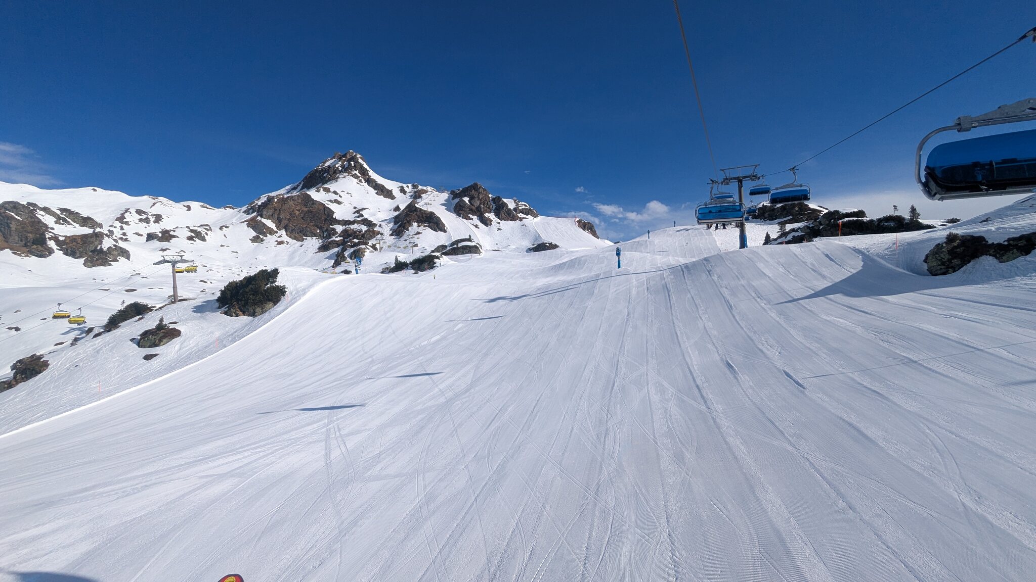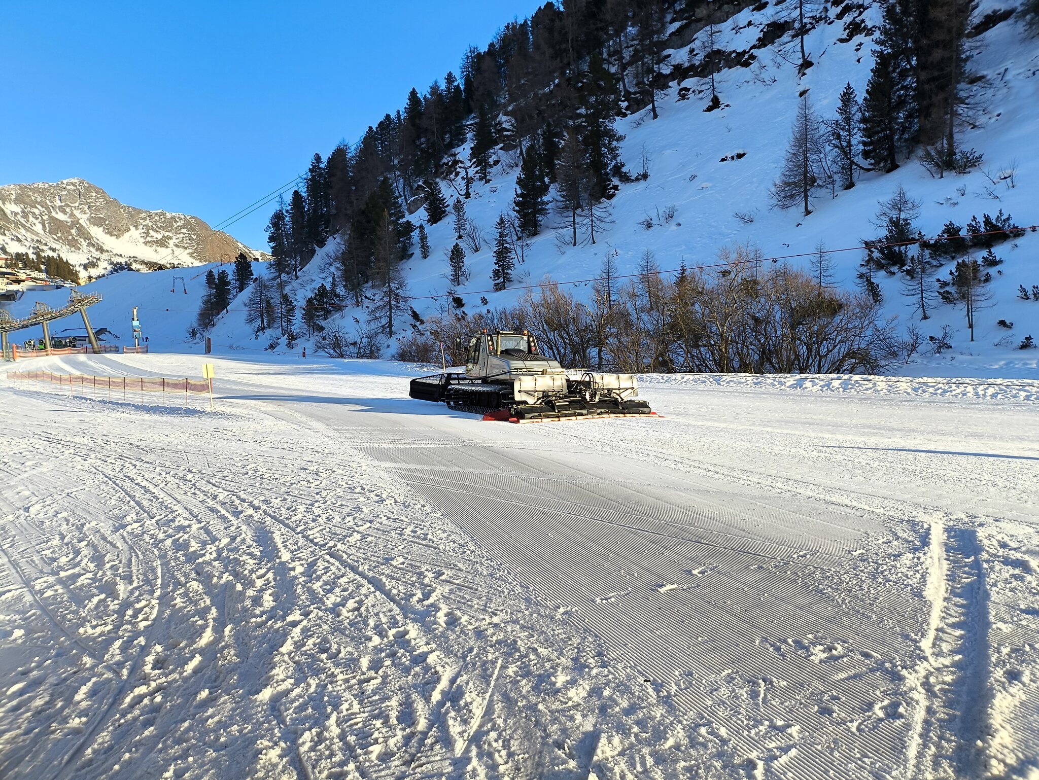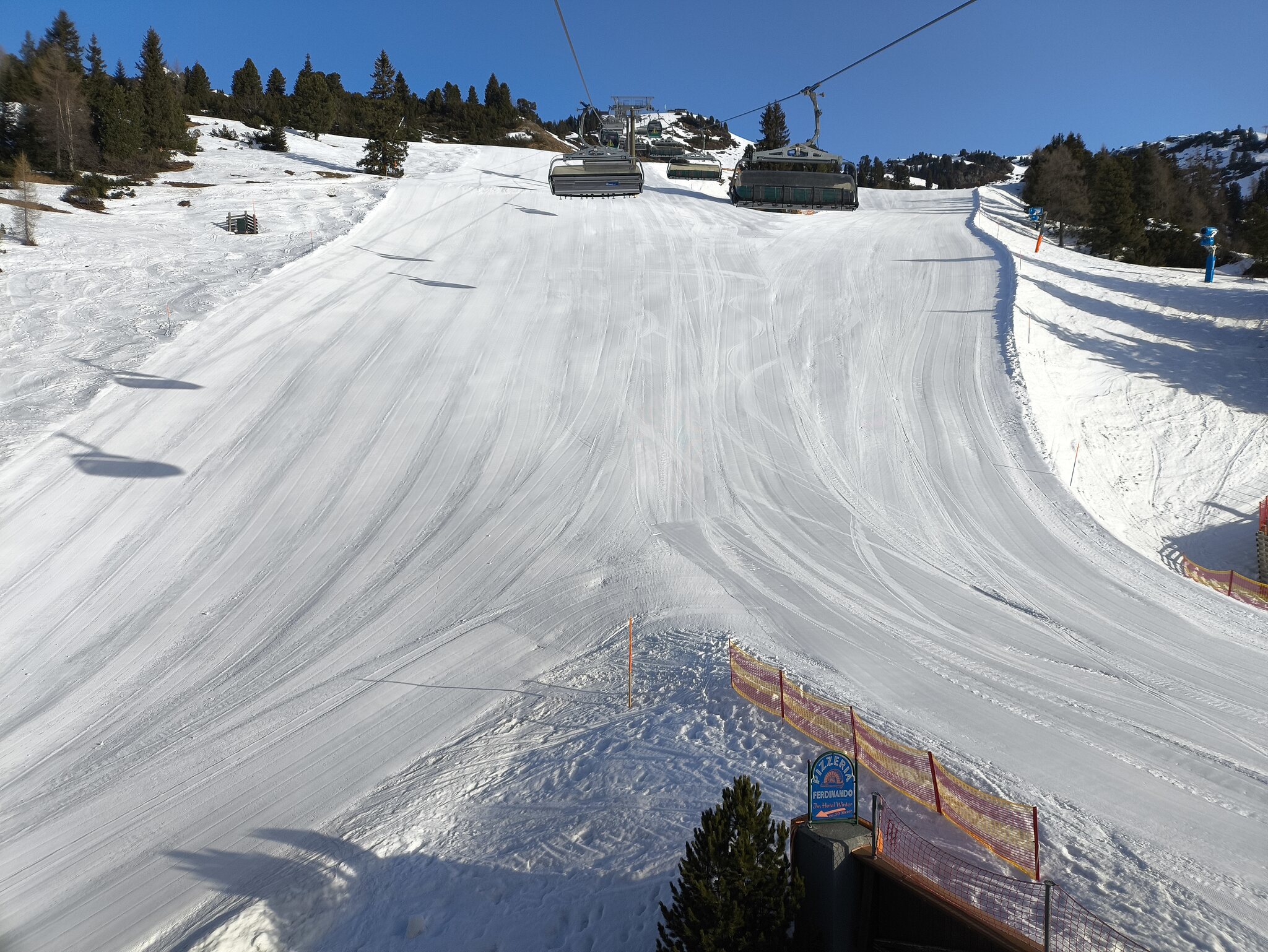 Was weitere mögliche Öffnungen zum kommenden WE angeht, will ich nicht zu viel spekulieren, dazu kenne ich das Skigebiet zu wenig. Auf vielen der noch geschlossenen Pisten waren grosse, tlw. unverteilte und tlw. bereits angeschobene Beschneiungshaufen zu sehen. Ich nehme an, dass es ein beachtliches Angebot sein wird
