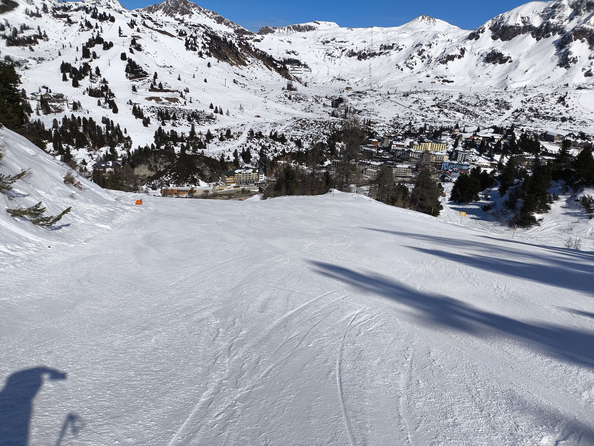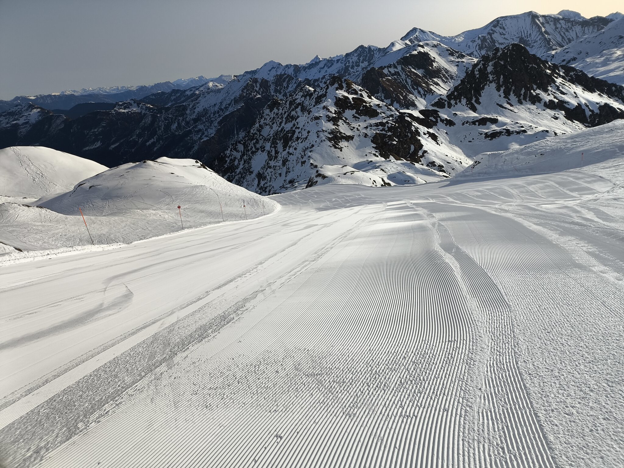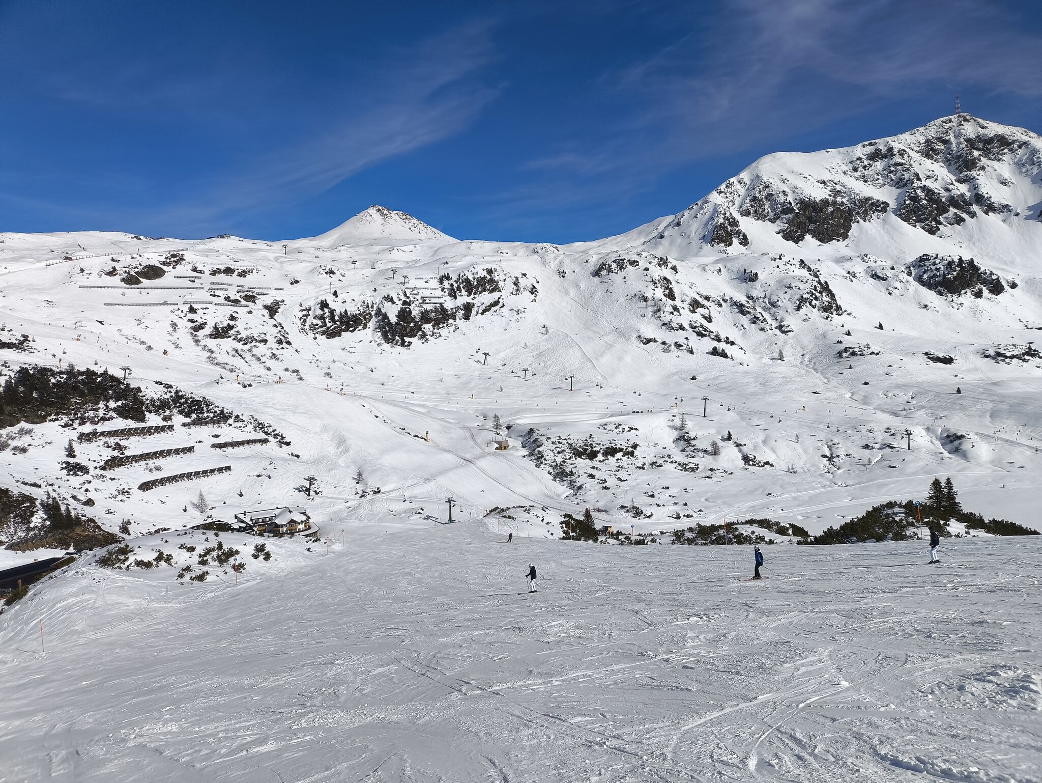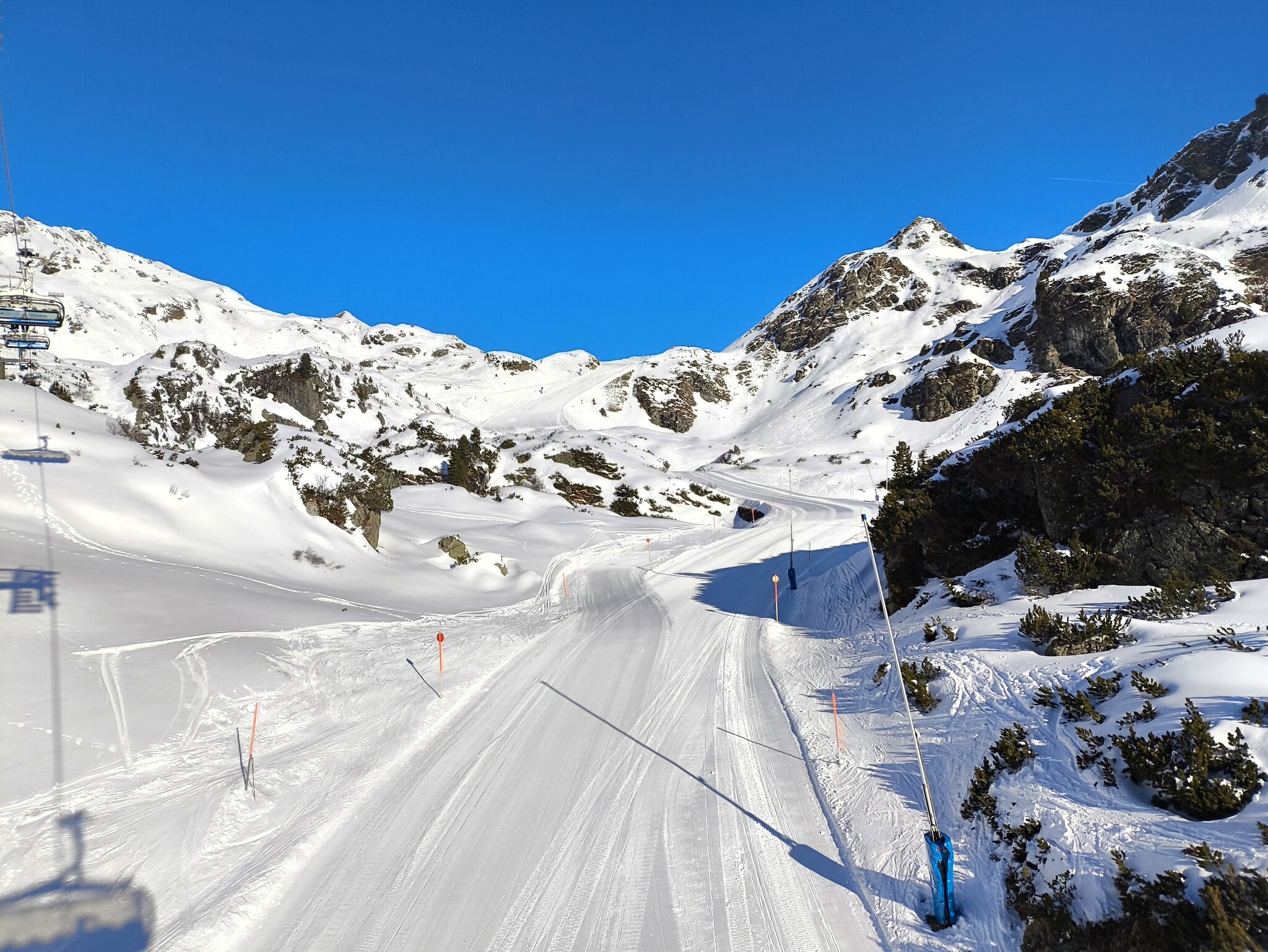 Was weitere mögliche Öffnungen zum kommenden WE angeht, will ich nicht zu viel spekulieren, dazu kenne ich das Skigebiet zu wenig. Auf vielen der noch geschlossenen Pisten waren grosse, tlw. unverteilte und tlw. bereits angeschobene Beschneiungshaufen zu sehen. Ich nehme an, dass es ein beachtliches Angebot sein wird