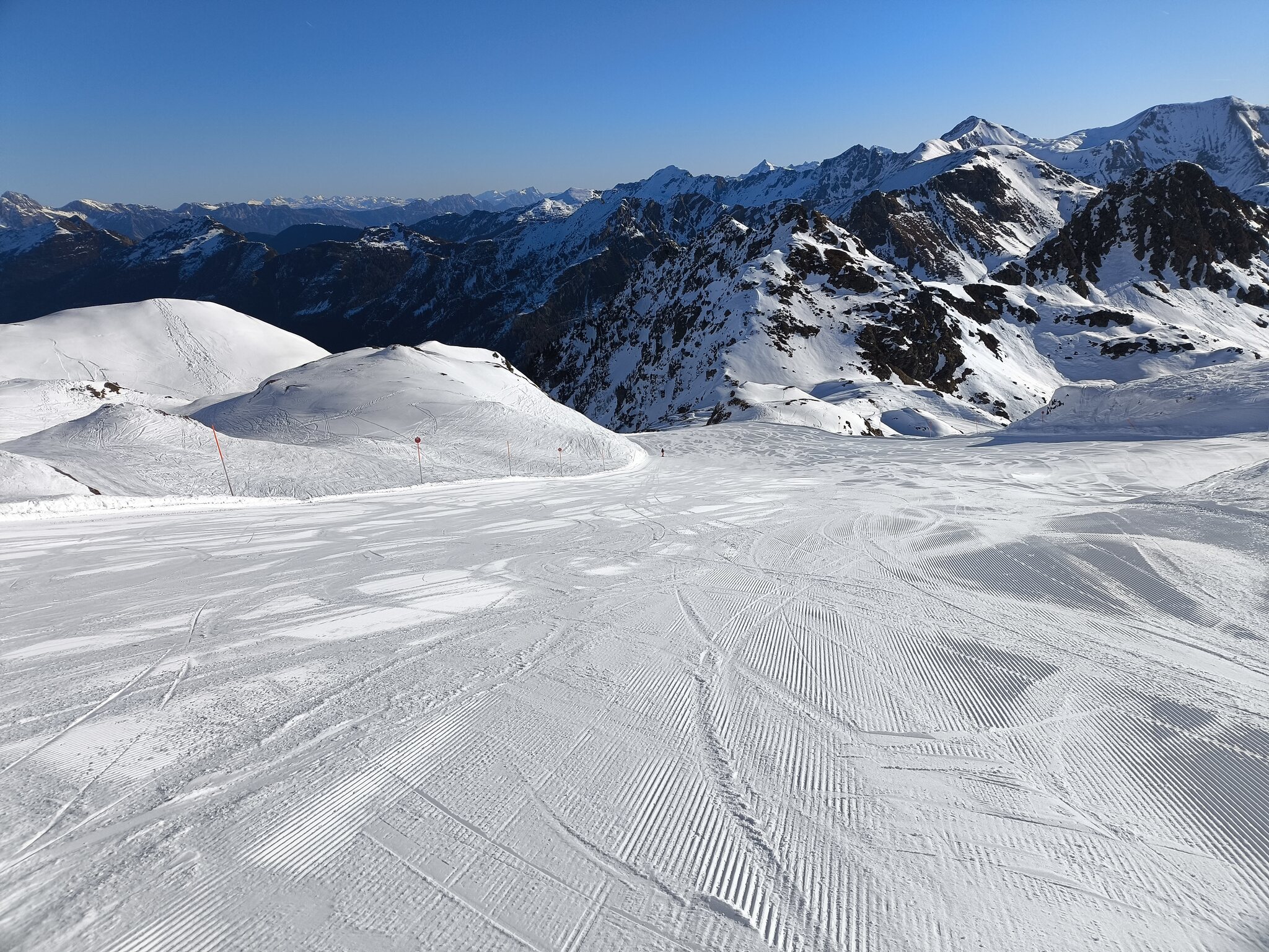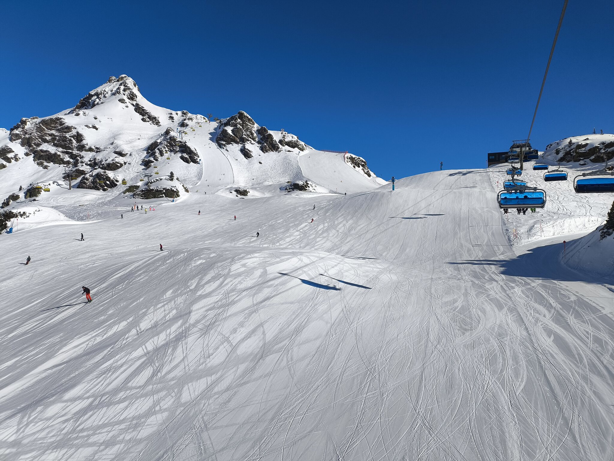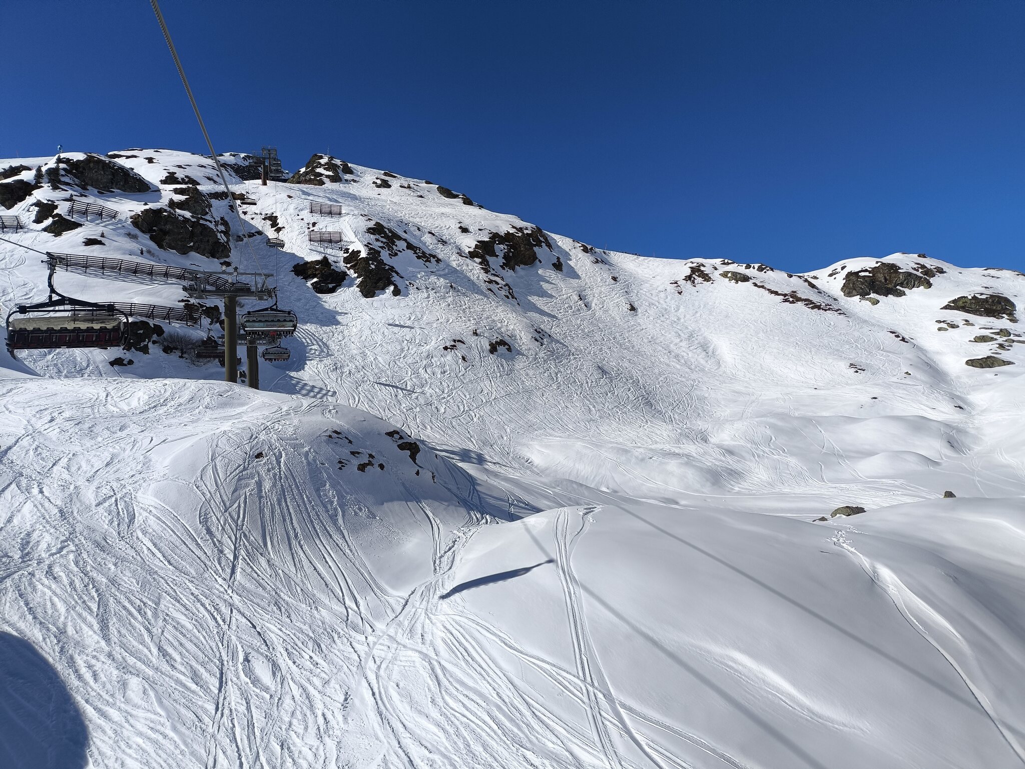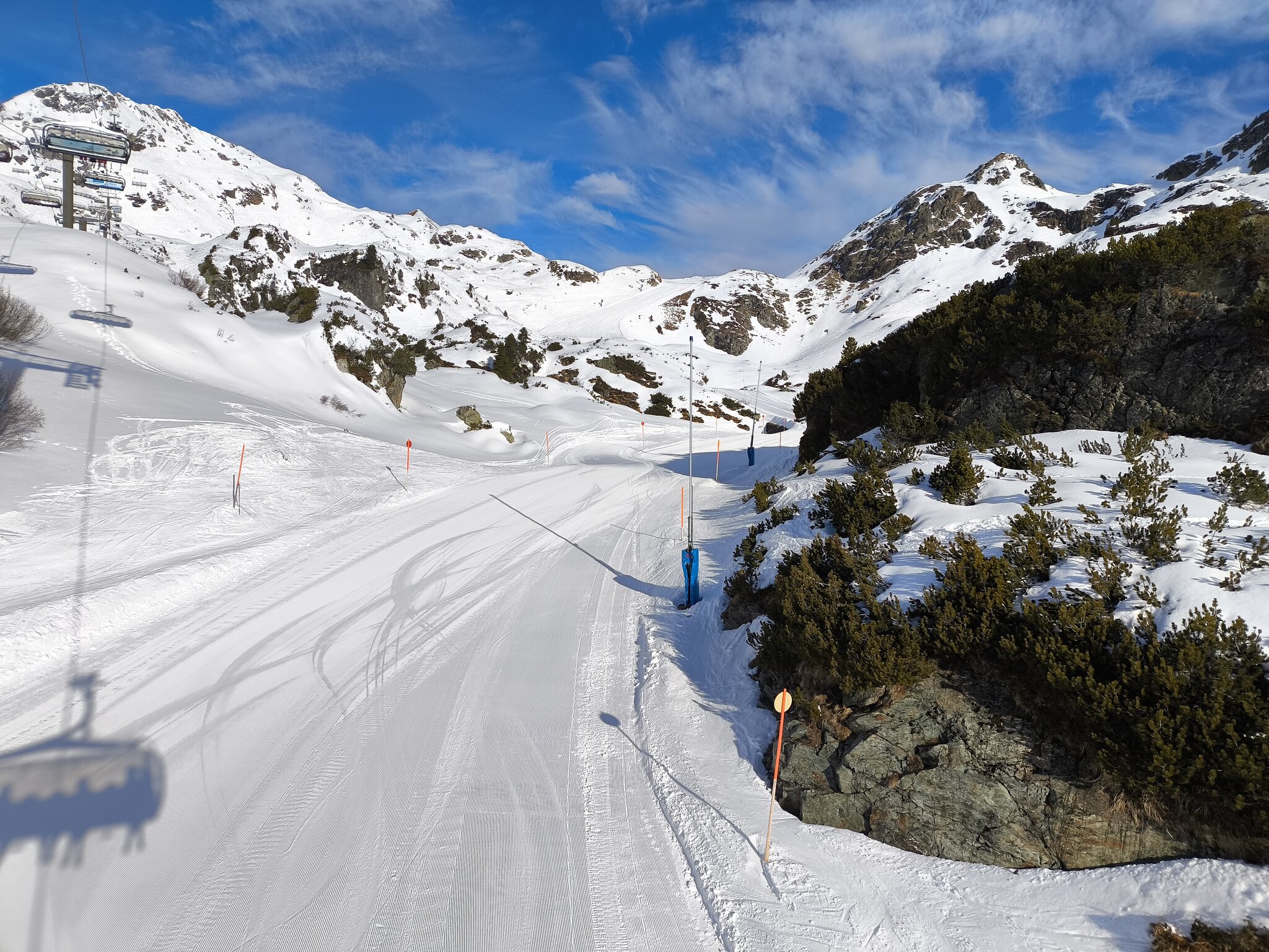 Was weitere mögliche Öffnungen zum kommenden WE angeht, will ich nicht zu viel spekulieren, dazu kenne ich das Skigebiet zu wenig. Auf vielen der noch geschlossenen Pisten waren grosse, tlw. unverteilte und tlw. bereits angeschobene Beschneiungshaufen zu sehen. Ich nehme an, dass es ein beachtliches Angebot sein wird