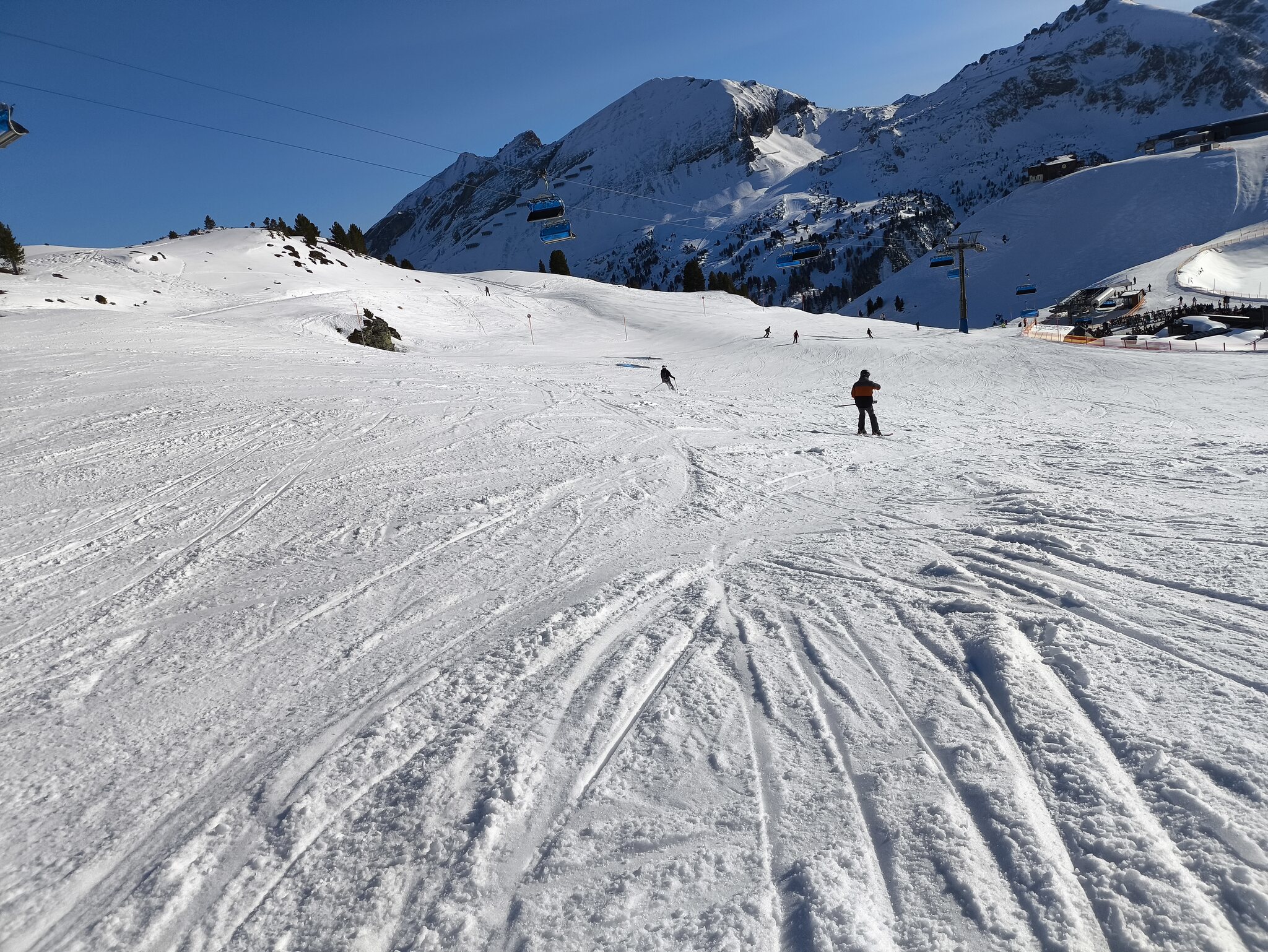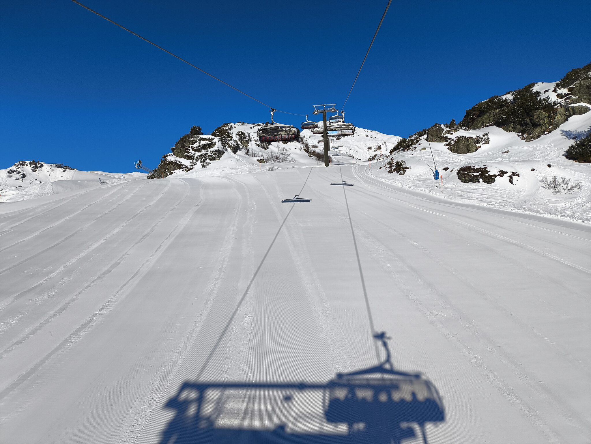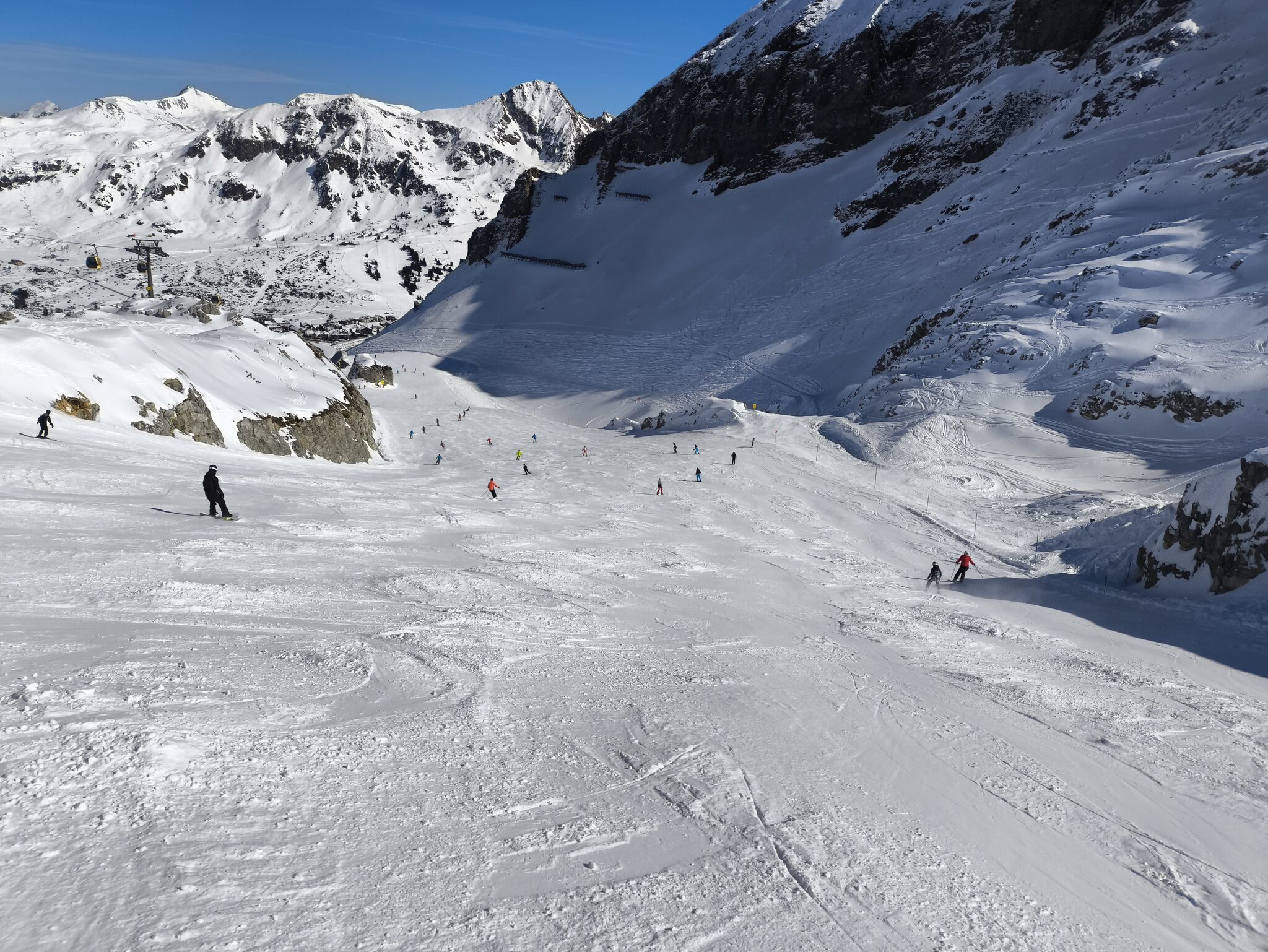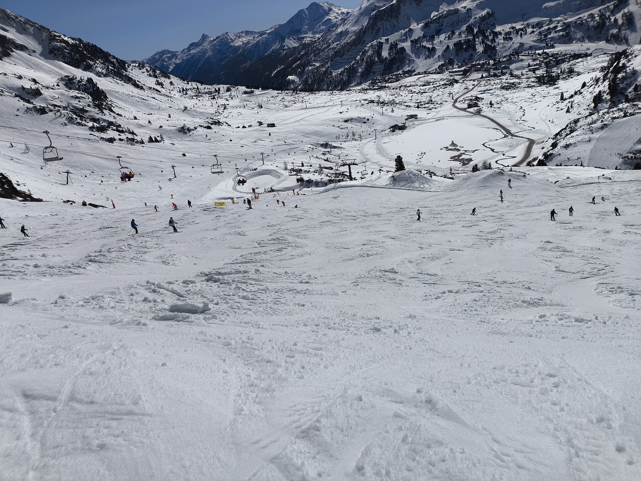 Was weitere mögliche Öffnungen zum kommenden WE angeht, will ich nicht zu viel spekulieren, dazu kenne ich das Skigebiet zu wenig. Auf vielen der noch geschlossenen Pisten waren grosse, tlw. unverteilte und tlw. bereits angeschobene Beschneiungshaufen zu sehen. Ich nehme an, dass es ein beachtliches Angebot sein wird