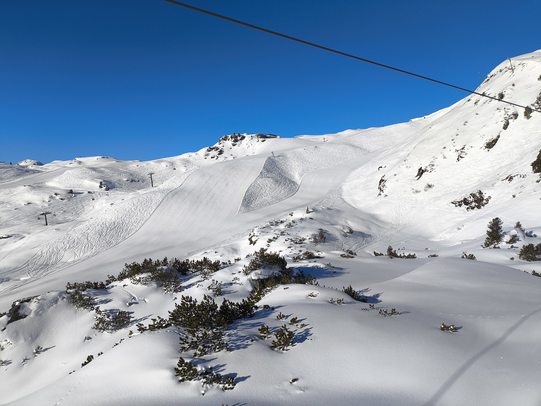 Ganz ohne Anstehen hingegen an der Panoramabahn, auch hier war eine Piste offen: