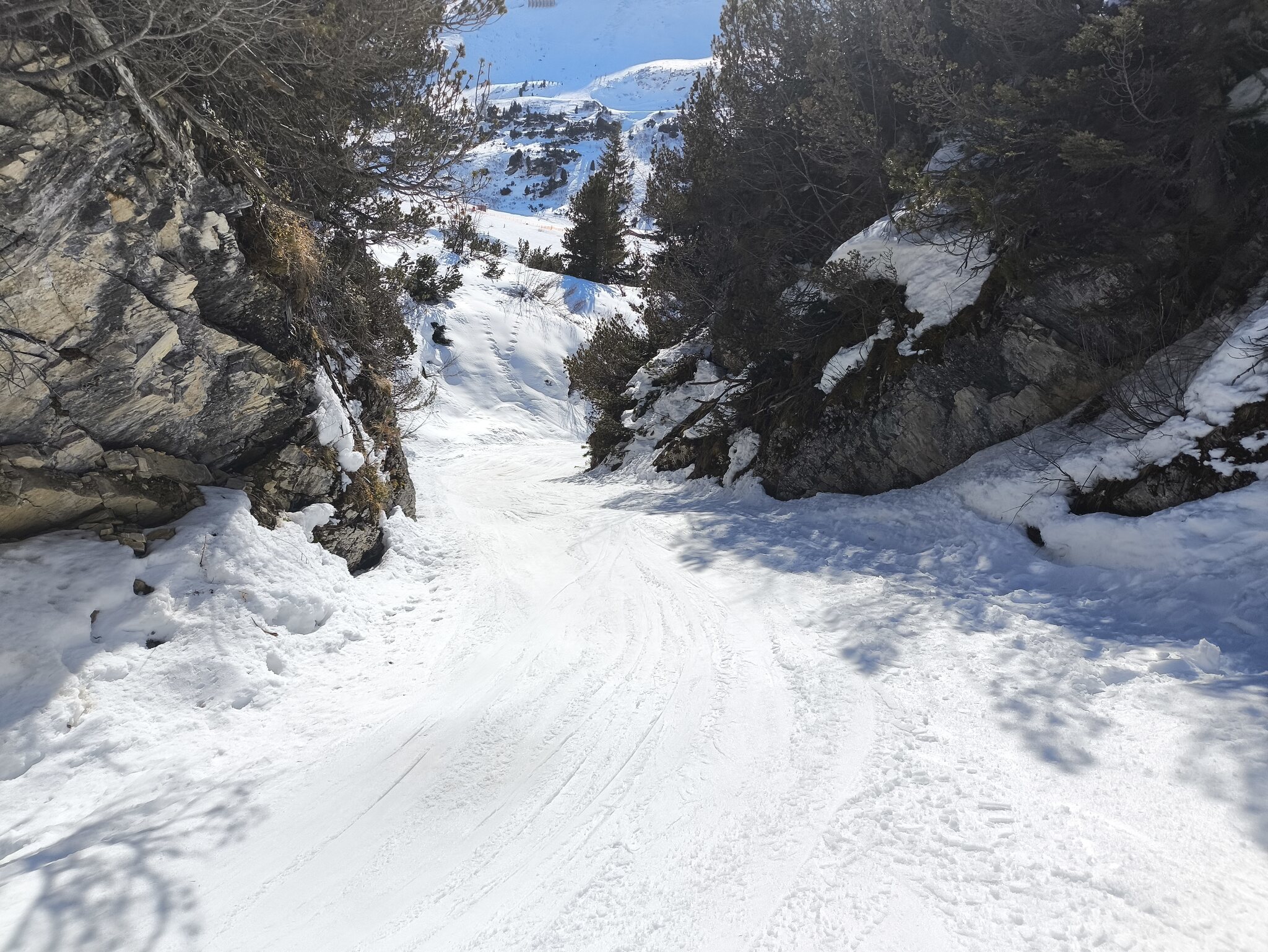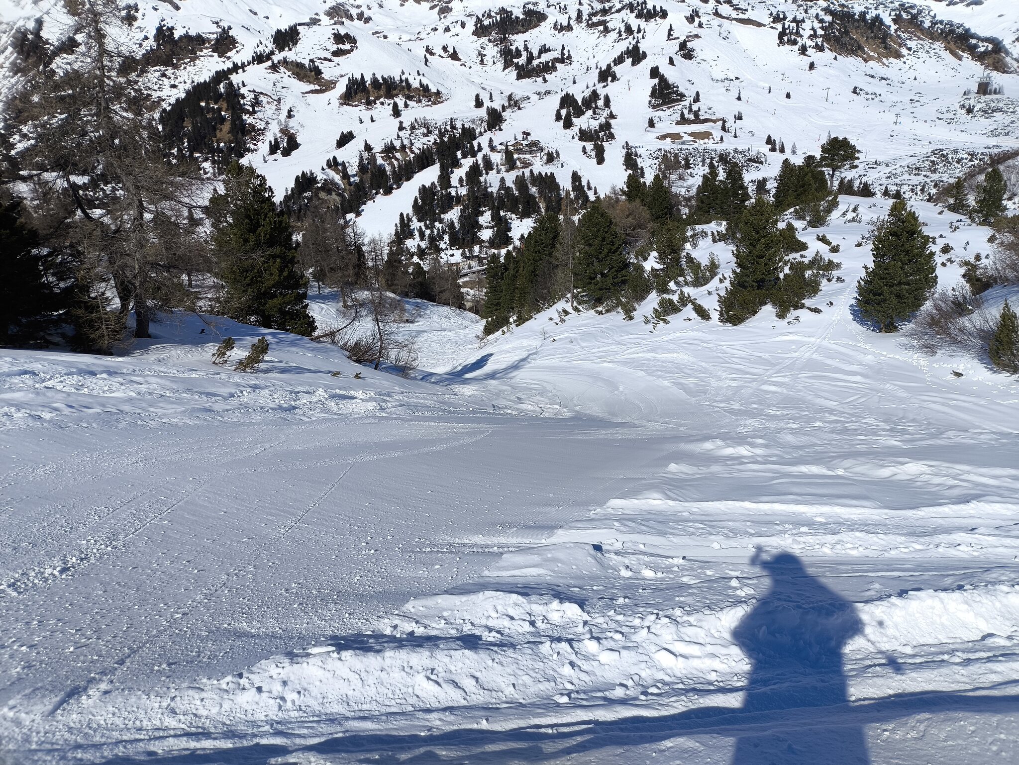 Die schwarze 10b war zwar offiziell geschlossen und ungewalzt, aber als Buckelpiste gut fahrbar (und fleissig befahren) ohne jeden Feindkontakt, die scheint schon fertig beschneit zu sein und wurde vor dem letzten Neuschnee offensichtlich auch schon einmal gewalzt: