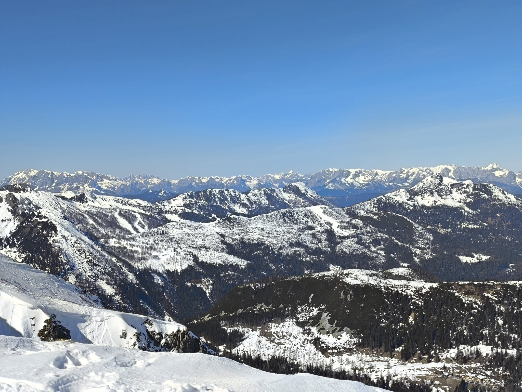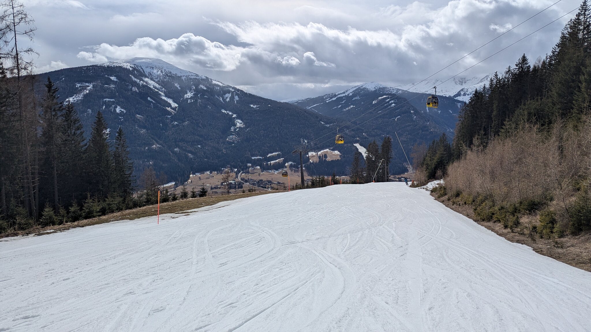 Die Pisten waren zu Mittag natürlich nicht mehr 'frisch', also heute keine Rillenbilder. Generell aber Hut ab, ich habe auf den 3 offenen Pisten keinen Stein gesehen, es war nicht knollig und alles in voller Breite. 5a zur Kringsalm (Wetterdetail: in Richtung Dachstein war das Wetter wesentlich schlechter, und es handelt sich dabei nicht etwa um eine Momentaufnahme, es blieb den ganzen Nachmittag ähnlich):