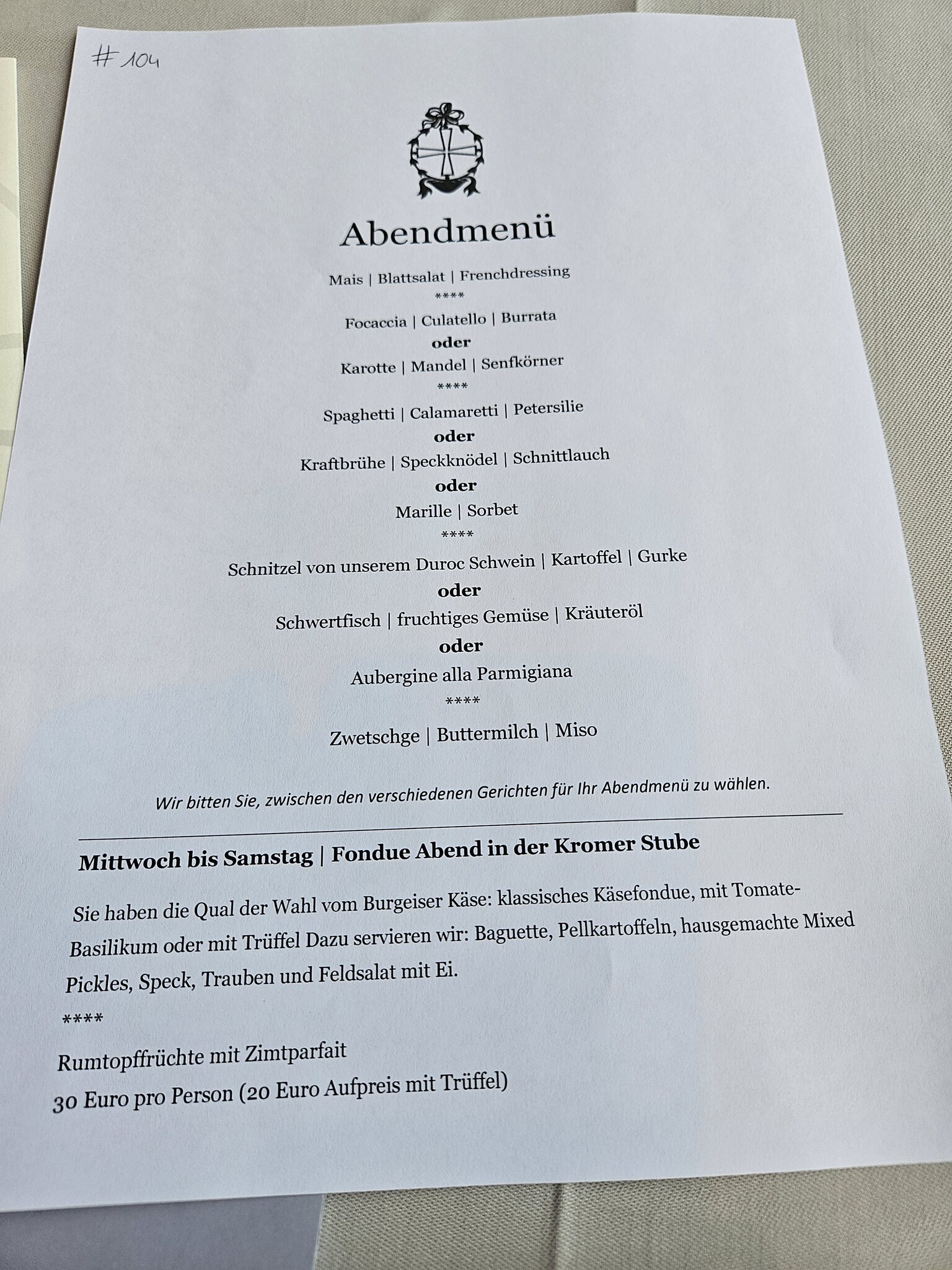Das Abendmenu findet ihr hier: