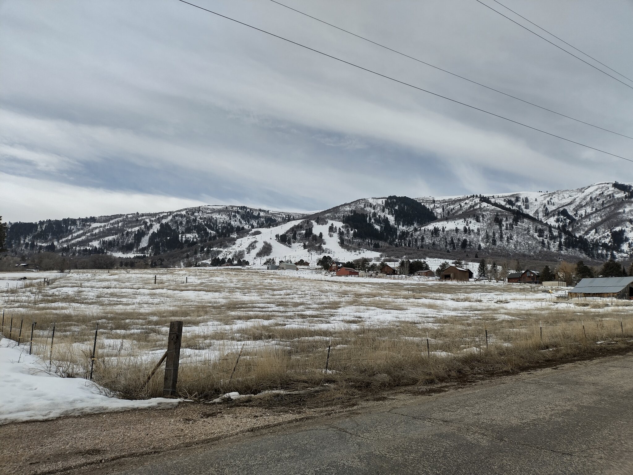 Blick auf das Skigebiet, im Vordergrund die Szenerie im Odgen Valley die mehr an das klassische Rurale Amerika erinnert als an fancy Skiresorts: