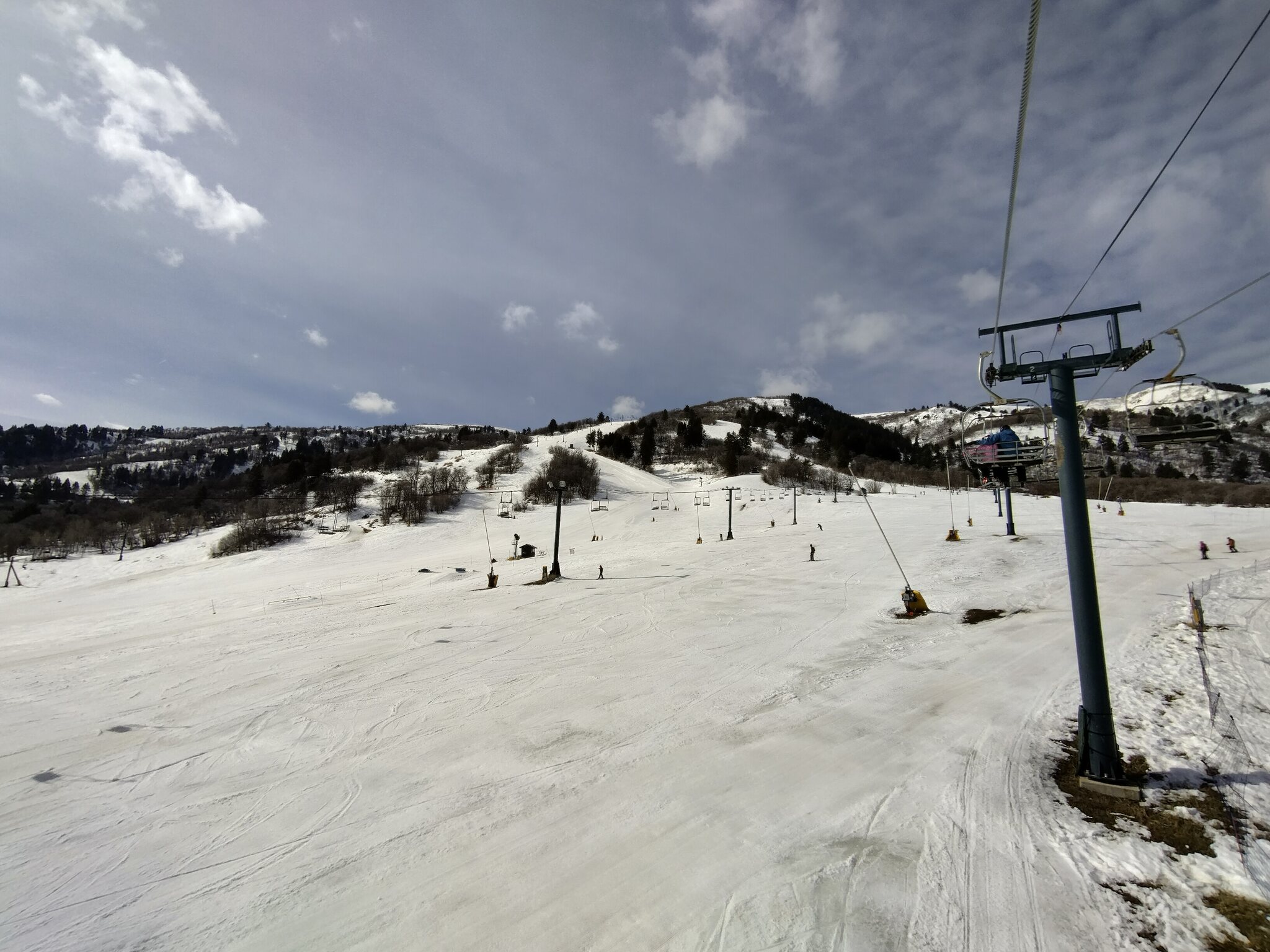 Viel Schnee hat es nicht, wir liegen deutlich niedriger als die anderen Skigebiete in der Gegend: