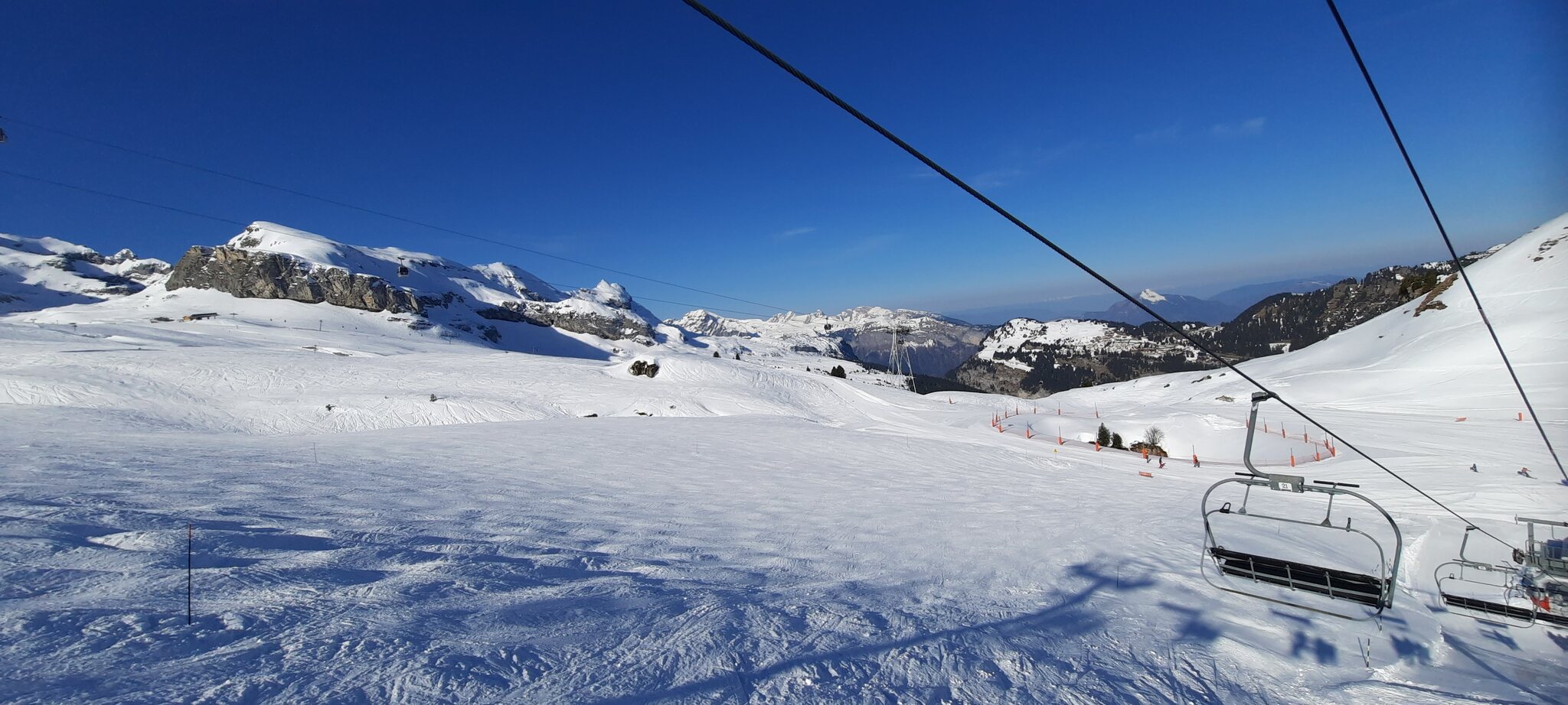 Bis zu diesem Zeitpunkt sind die großen Massen noch nicht in Flaine angekommen, und die Pisten sind vergleichsweise leer. Von dort kann man dann Richtung Les Carroz oder Samoëns fahren – genau zu dem Zeitpunkt, wenn die meisten von dort aus nach Flaine unterwegs sind.